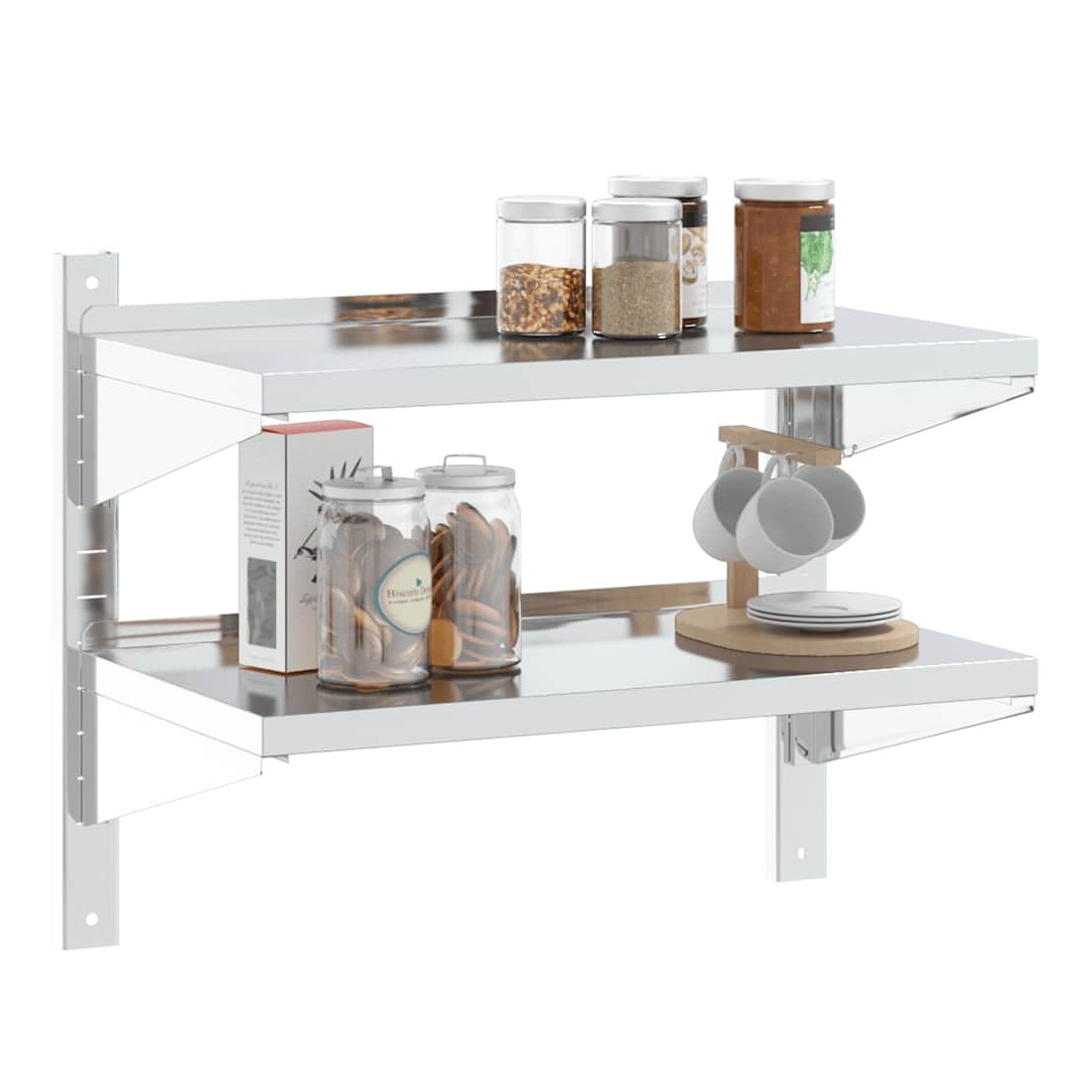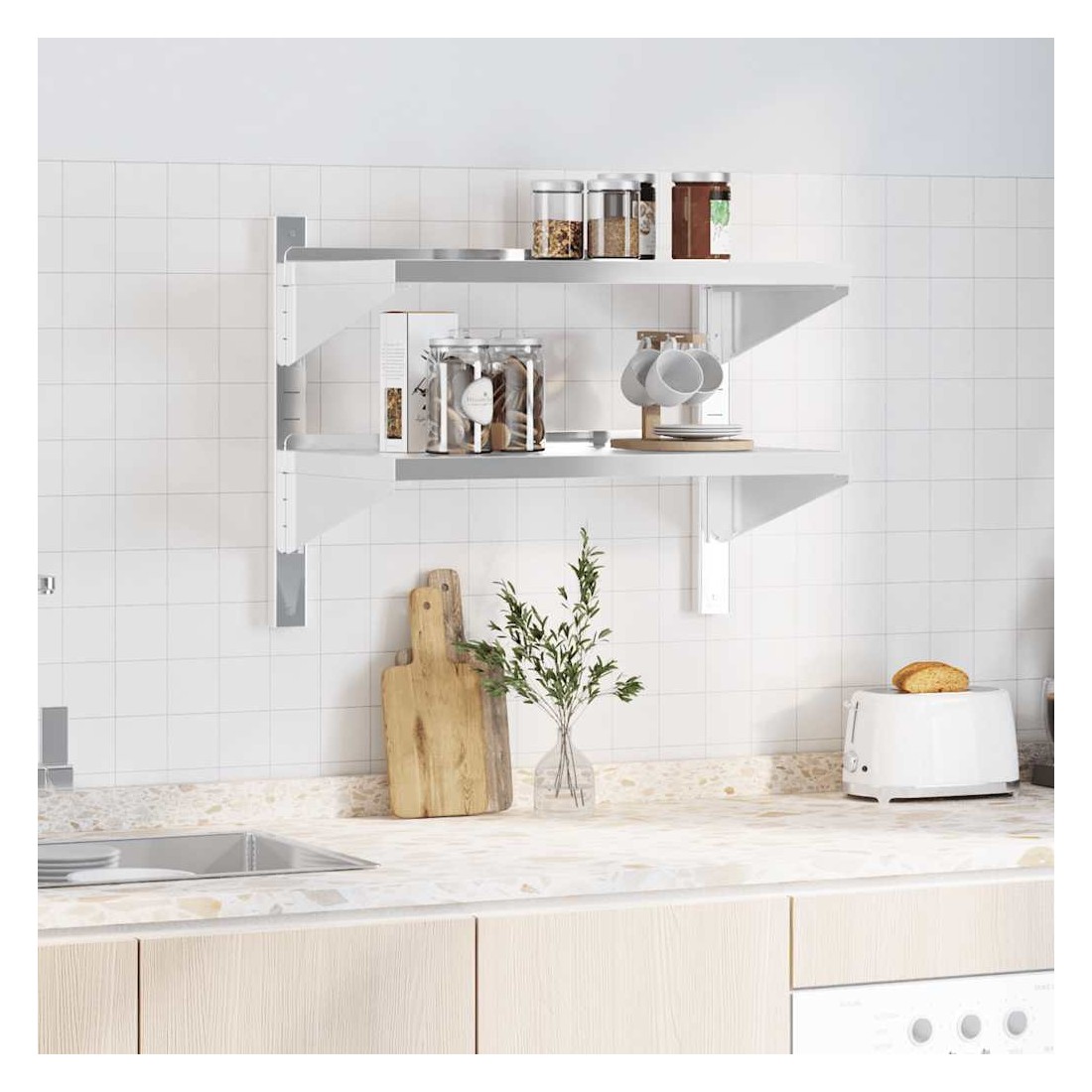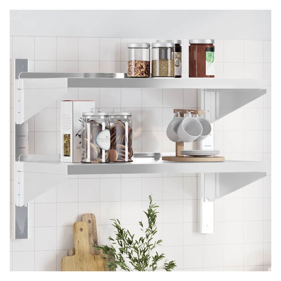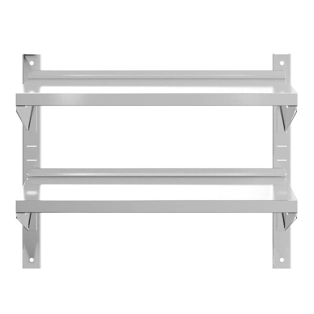 Dotée d'un design pratique, l'étagère murale à 2 niveaux est destinée à être le point central de votre salon, de votre chambre à coucher, etc. Robuste et durable : l'étagère murale flottante est fabriquée en acier inoxydable, ce qui la rend durable, résistante à la corrosion et durable.Gain de place : cette étagère murale peut être fixée au mur pour ajouter de l'espace de rangement supplémentaire. De cette façon, vous pouvez maximiser votre espace au sol et garder la zone propre.Bords relevés : les objets de décoration délicats sont conservés en sécurité grâce à la planche supérieure aux bords relevés.Facile à installer : le support mural est facile à installer avec les accessoires de montage inclus.Étagère murale multifonctionnelle : l'étagère murale est conçue pour décorer et ranger des objets dans des lieux divers tels que la cuisine commerciale, la cuisine familiale, le garage, la buanderie, les locaux de service, les locaux techniques, les laboratoires, etc.
