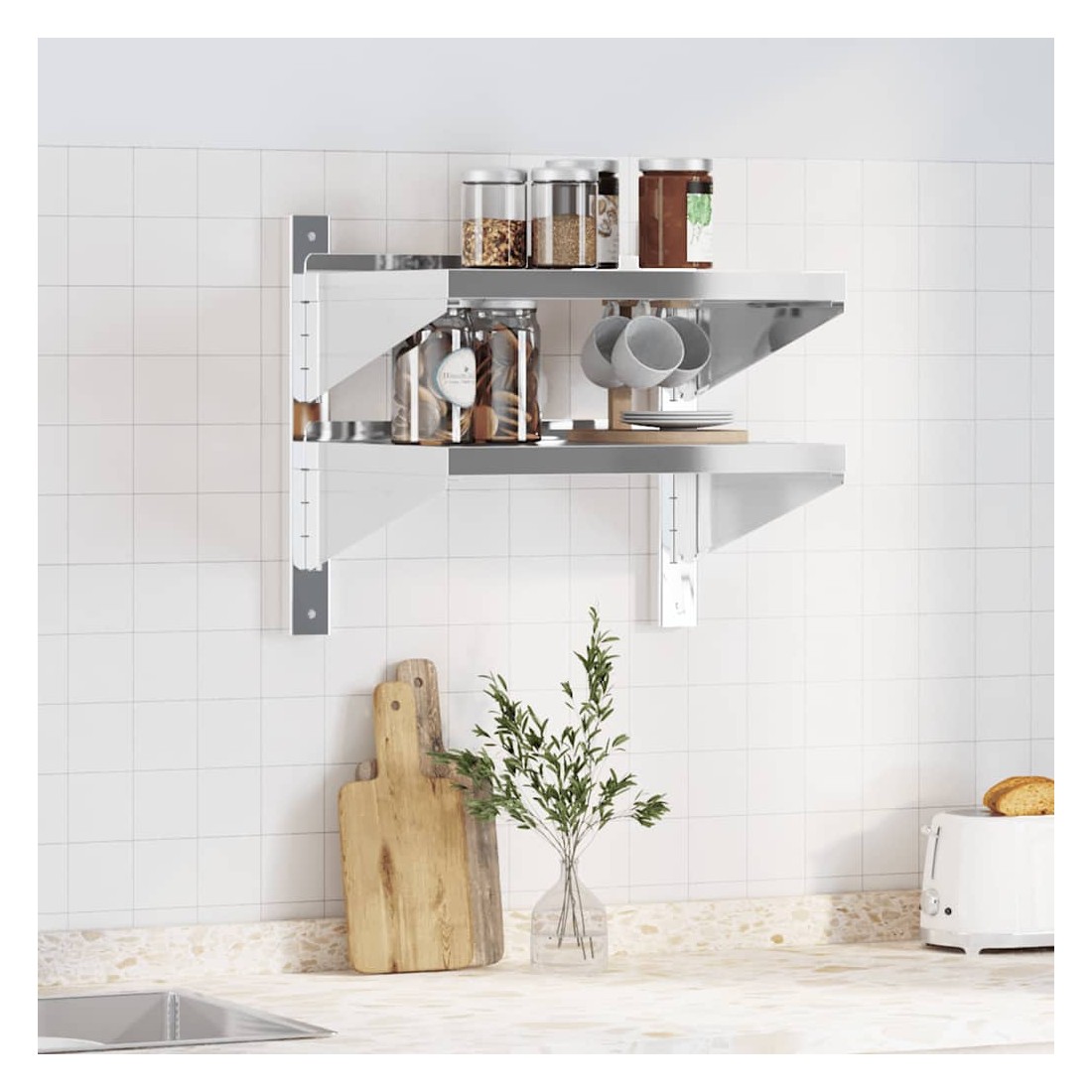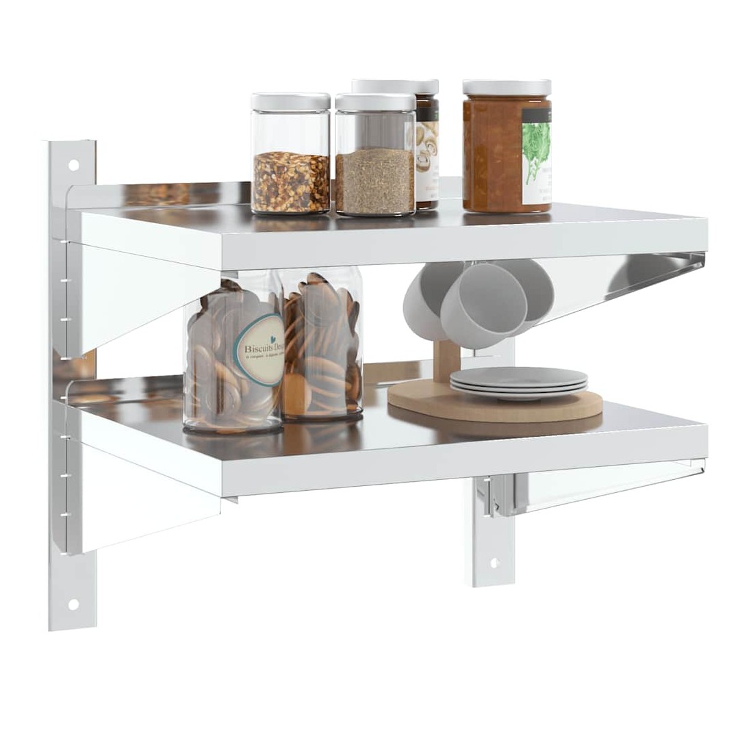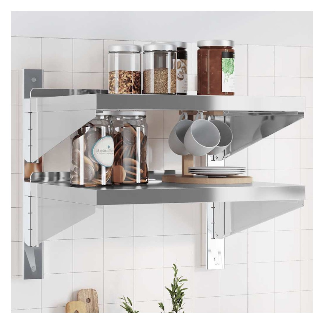 Dotée d'un design pratique, l'étagère murale à 2 niveaux est destinée à être le point central de votre salon, de votre chambre à coucher, etc. Robuste et durable : l'étagère murale flottante est fabriquée en acier inoxydable, ce qui la rend durable, résistante à la corrosion et durable.Gain de place : cette étagère murale peut être fixée au mur pour ajouter de l'espace de rangement supplémentaire. De cette façon, vous pouvez maximiser votre espace au sol et garder la zone propre.Bords relevés : les objets de décoration délicats sont conservés en sécurité grâce à la planche supérieure aux bords relevés.Facile à installer : le support mural est facile à installer avec les accessoires de montage inclus.Étagère murale multifonctionnelle : l'étagère murale est conçue pour décorer et ranger des objets dans des lieux divers tels que la cuisine commerciale, la cuisine familiale, le garage, la buanderie, les locaux de service, les locaux techniques, les laboratoires, etc.