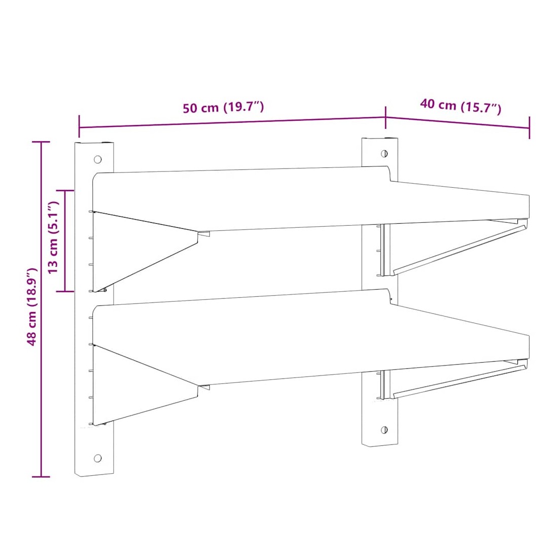 - Dimensions (par étagère) : 50 x 40 cm (L x l)