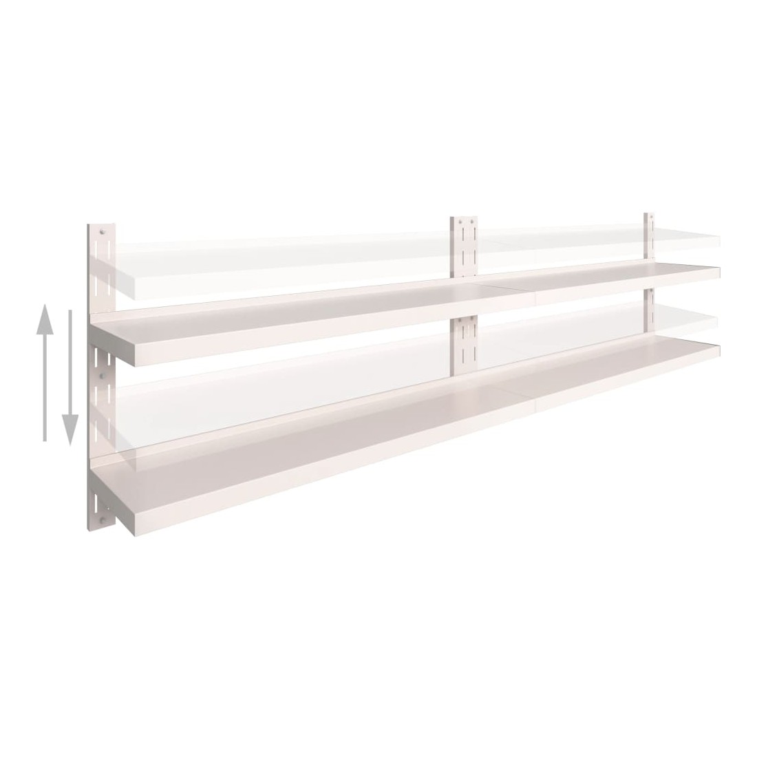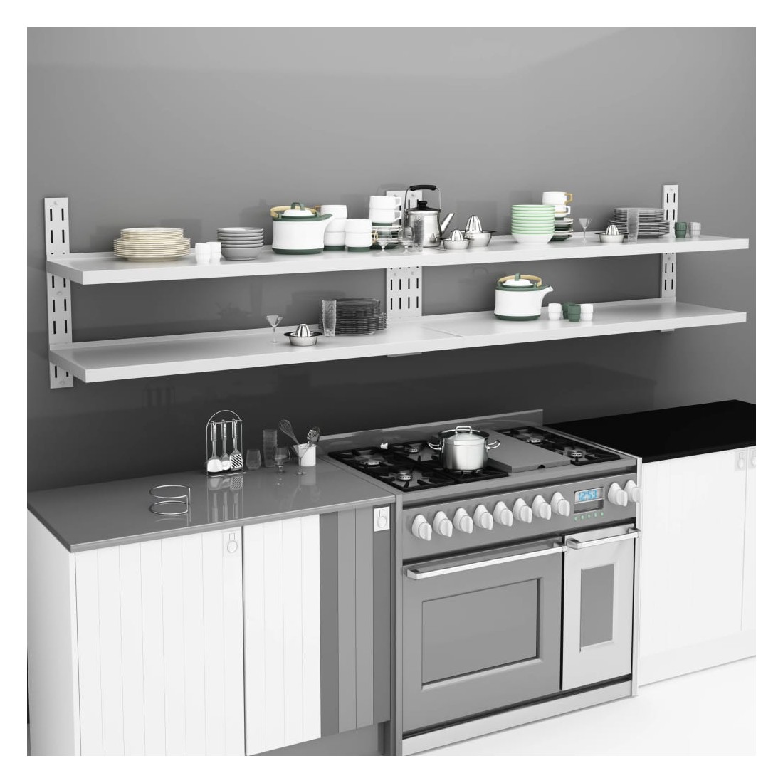 Notre ensemble d'étagères murales à 2 niveaux en acier inoxydable est non seulement élégant mais très fonctionnel, ce qui sera un excellent choix pour ceux qui ont besoin d'espace de stockage supplémentaire dans les cuisines. Il est un endroit parfait pour conserver les assiettes, les plats, ainsi que divers autres ustensiles de cuisine. Fabriquée en acier inoxydable, l'étagère murale de cuisine est extrêmement durable, stable et facile à nettoyer, ce qui la rend parfaite pour les endroits où un niveau d'hygiène élevé est requis. Les étagères présentent une capacité de charge totale de 80 kg. Le matériel de montage est inclus.