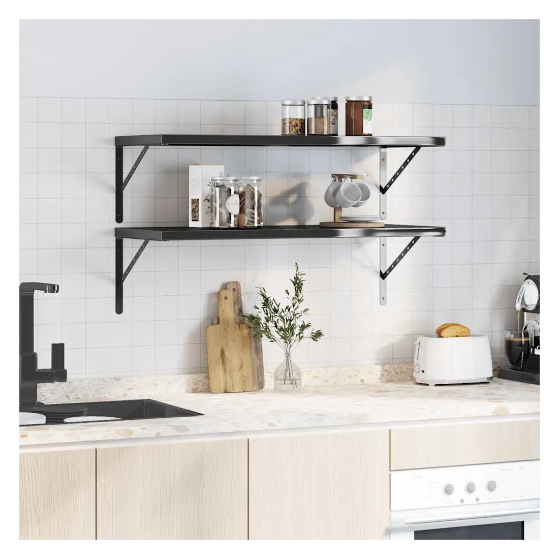 Avec un design pratique, ces étagères murales sont destinées à être le point central de votre salon, chambre à coucher, etc. Robuste et durable : l'étagère murale flottante est fabriquée en acier inoxydable, ce qui la rend durable, résistante à la corrosion et durable.Gain de place : cette étagère murale peut être fixée au mur pour ajouter de l'espace de rangement supplémentaire. De cette façon, vous pouvez maximiser votre espace au sol et garder la zone propre.Facile à installer : le support mural est facile à installer avec les accessoires de montage inclus.Étagère murale multifonctionnelle : l'étagère murale est faite à la fois pour décorer et pour ranger des objets dans votre maison. Vous pouvez l'utiliser pour exposer vos collections, livres, cadres photos, plantes, maquettes ou CD dans différentes pièces telles que le salon, le bureau ou la pièce d'étude.