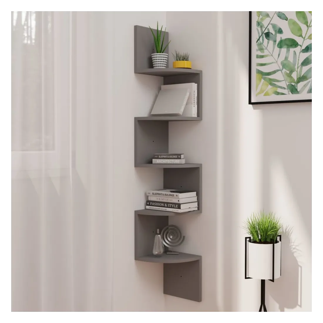 Étagère d'angle murale gris 19x19x123 cm bois d'ingénierie