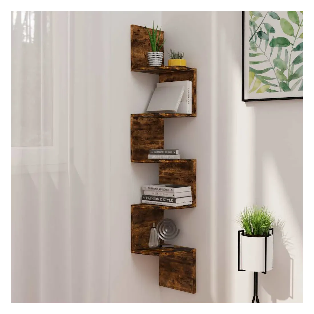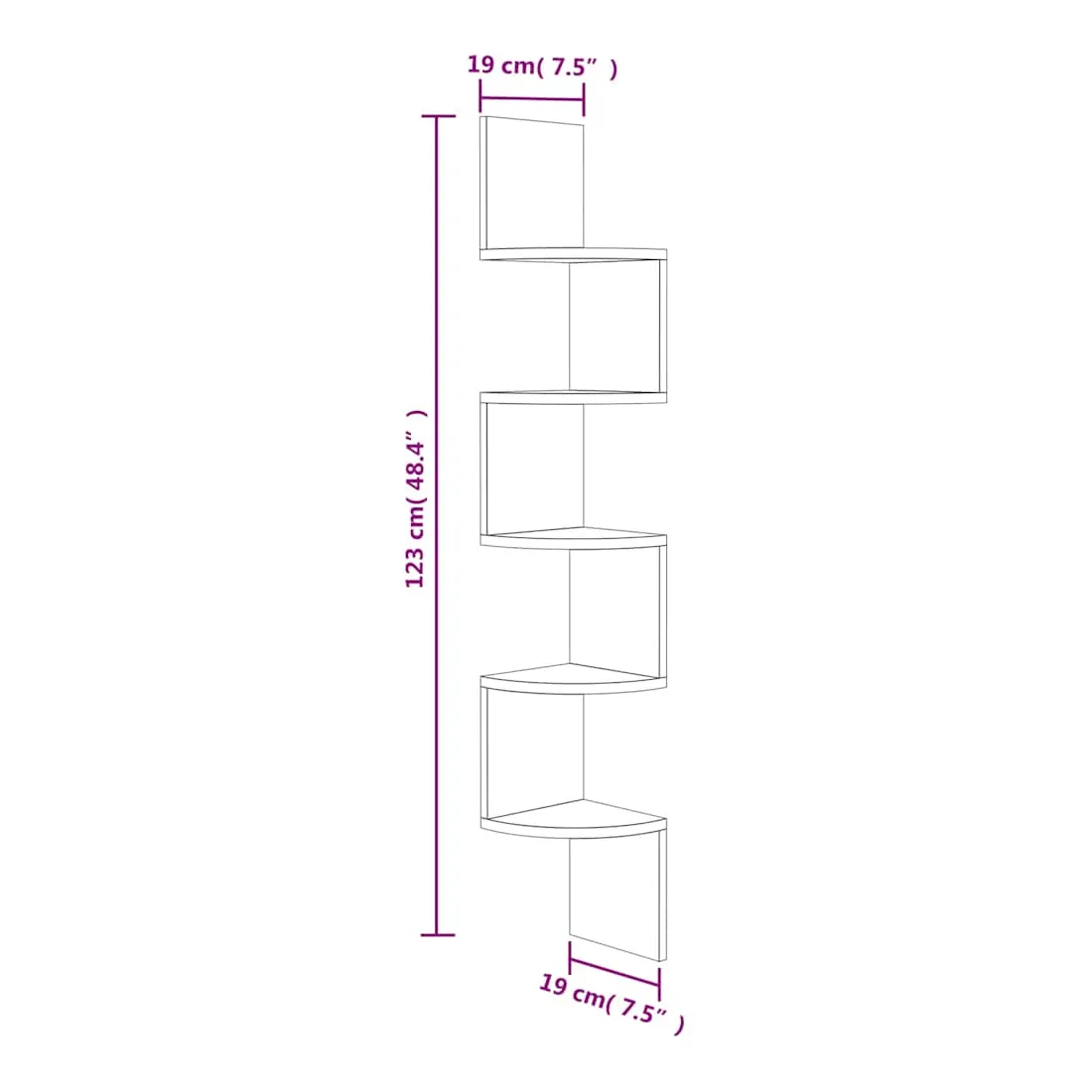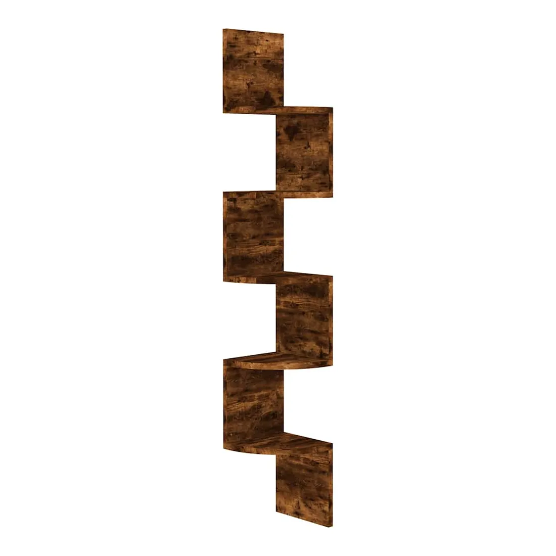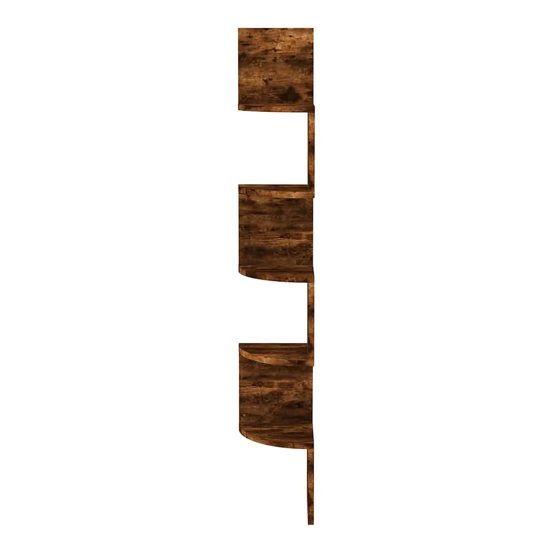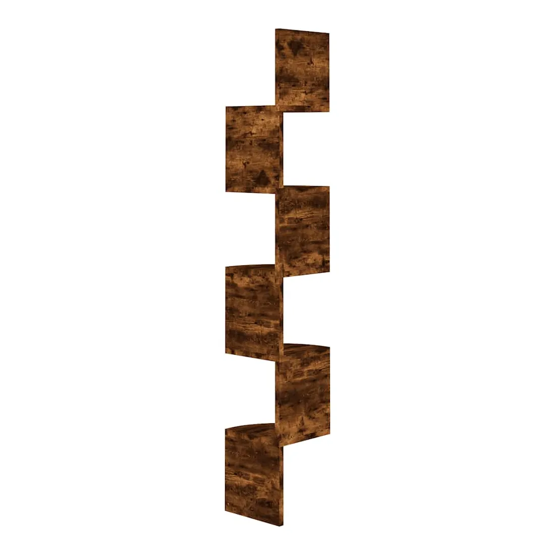 Étagère d'angle murale chêne fumé 19x19x123cm bois d'ingénierie
