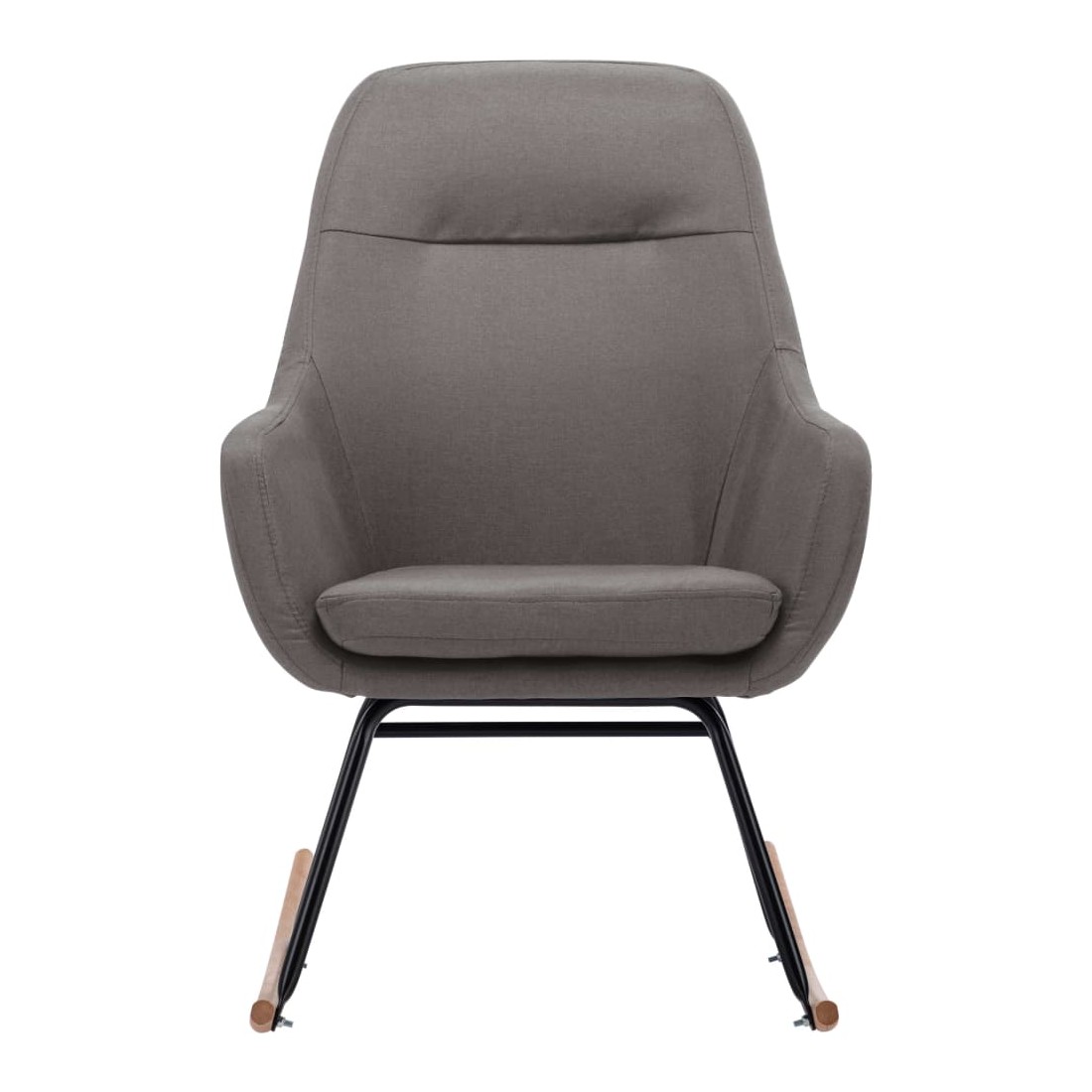 Cette chaise à bascule au design moderne apporte une sensation chaleureuse et un confort à votre espace de vie. La chaise à bascule est recouverte de tissu doux et a un cadre en métal enduit de poudre, ce qui la rend stable et douce pour l'utiliser. Le coussin bien rembourré, amovible et facile à nettoyer, vous apporte un confort d'assise supplémentaire. De plus, les pieds en bois de hêtre offrent également une grande stabilité. Avec la conception de pieds longs, la chaise ne basculera pas facilement. Cette chaise peut être utilisée dans votre salon, jardin, sur la terrasse et toute autre pièce.