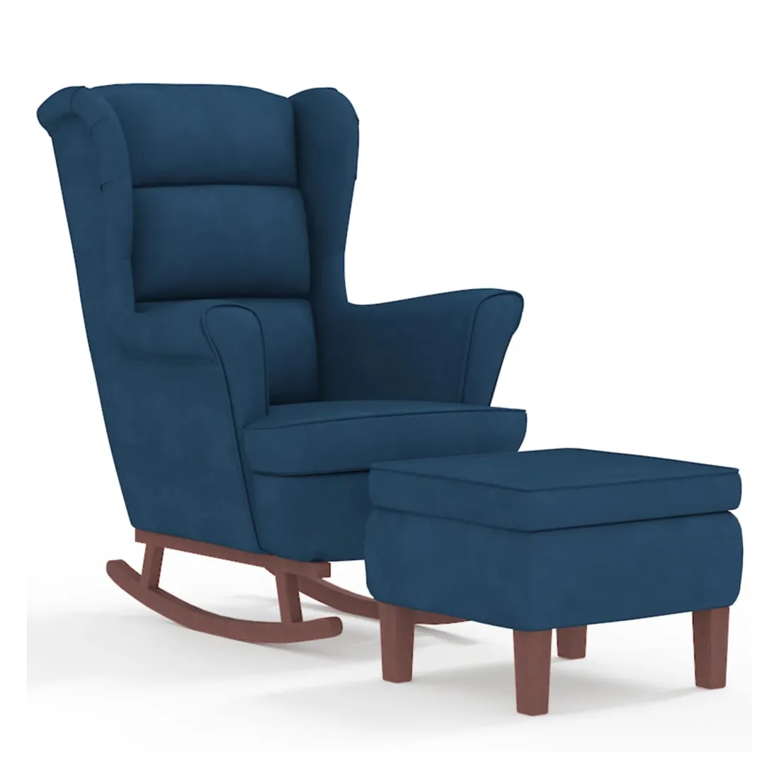 Ce fauteuil à bascule avec tabouret devient le point central de votre salon, ainsi qu'un lieu de prédilection pour lire ou vous détendre. Velours doux : le fauteuil avec repose-pied sont fabriqués en velours, qui est un tissu doux et luxueux, il se reconnaît à sa pile dense de fibres uniformément coupées qui ont une sieste lisse. Le tissu de velours se caractérise par une sensation de douceur distinctive, ce qui le rend agréable au toucher.Pieds à bascule : détendez-vous en vous asseyant confortablement tout en profitant d'un mouvement de bercement doux et apaisant de cette chaise longue.Accoudoirs confortables : les accoudoirs de ce fauteuil de salon permettent à vos bras de se reposer confortablement.Tabouret pratique : ce tabouret ottoman convient pour poser vos pieds à la fin de la journée. Vous pouvez également l'utiliser comme siège supplémentaire dans votre salon ou votre entrée. Remarque :Chaque produit est livré avec un manuel de montage dans la boîte pour un montage facile.