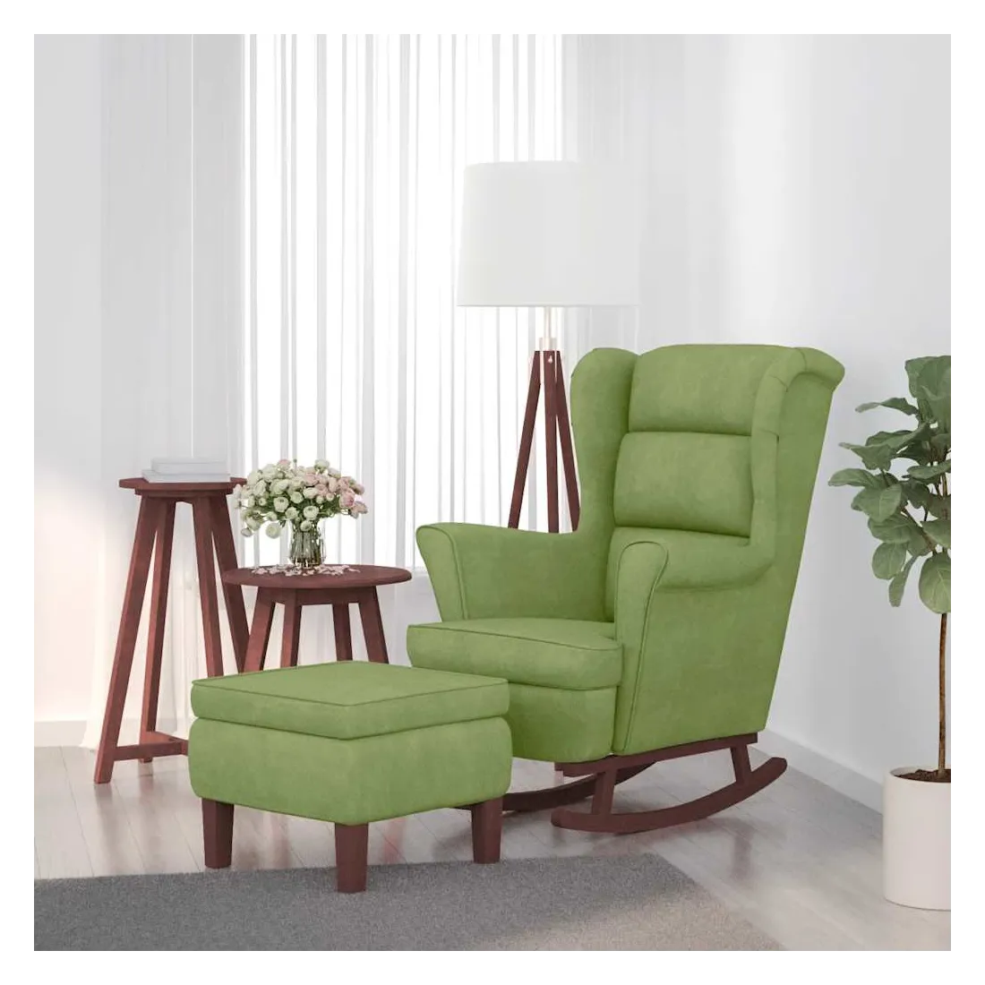 Ce fauteuil à bascule avec tabouret devient le point central de votre salon, ainsi qu'un lieu de prédilection pour lire ou vous détendre. Velours doux : le fauteuil avec repose-pied sont fabriqués en velours, qui est un tissu doux et luxueux, il se reconnaît à sa pile dense de fibres uniformément coupées qui ont une sieste lisse. Le tissu de velours se caractérise par une sensation de douceur distinctive, ce qui le rend agréable au toucher.Pieds à bascule : détendez-vous en vous asseyant confortablement tout en profitant d'un mouvement de bercement doux et apaisant de cette chaise longue.Accoudoirs confortables : les accoudoirs de ce fauteuil de salon permettent à vos bras de se reposer confortablement.Tabouret pratique : ce tabouret ottoman convient pour poser vos pieds à la fin de la journée. Vous pouvez également l'utiliser comme siège supplémentaire dans votre salon ou votre entrée. Remarque :Chaque produit est livré avec un manuel de montage dans la boîte pour un montage facile.