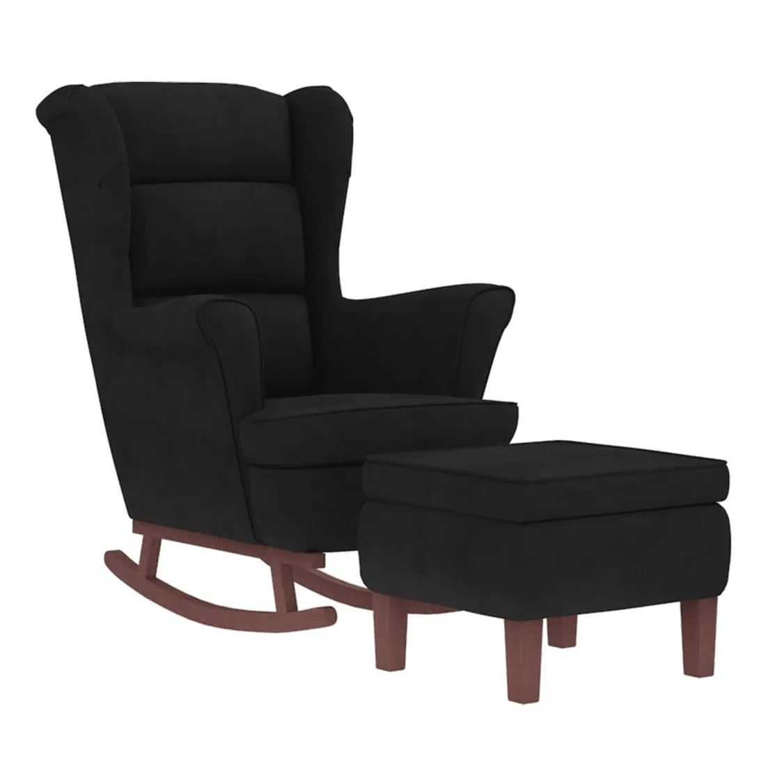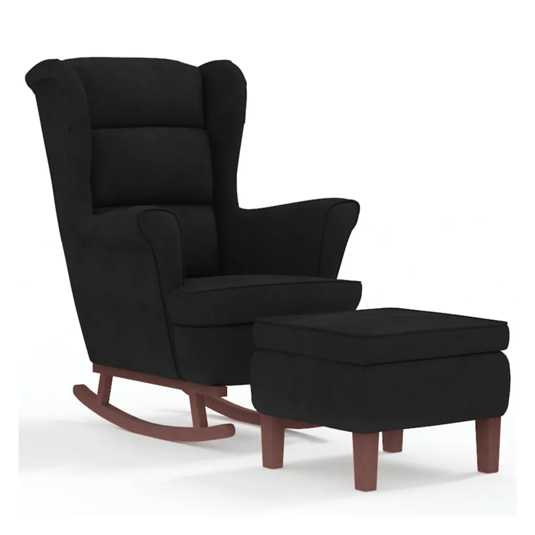 Ce fauteuil à bascule avec tabouret devient le point central de votre salon, ainsi qu'un lieu de prédilection pour lire ou vous détendre. Velours doux : le fauteuil avec repose-pied sont fabriqués en velours, qui est un tissu doux et luxueux, il se reconnaît à sa pile dense de fibres uniformément coupées qui ont une sieste lisse. Le tissu de velours se caractérise par une sensation de douceur distinctive, ce qui le rend agréable au toucher.Pieds à bascule : détendez-vous en vous asseyant confortablement tout en profitant d'un mouvement de bercement doux et apaisant de cette chaise longue.Accoudoirs confortables : les accoudoirs de ce fauteuil de salon permettent à vos bras de se reposer confortablement.Tabouret pratique : ce tabouret ottoman convient pour poser vos pieds à la fin de la journée. Vous pouvez également l'utiliser comme siège supplémentaire dans votre salon ou votre entrée. Remarque :Chaque produit est livré avec un manuel de montage dans la boîte pour un montage facile.