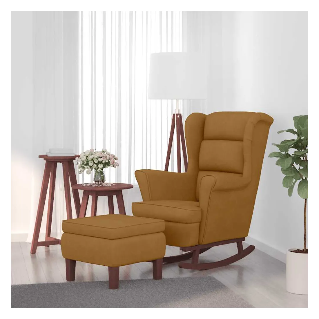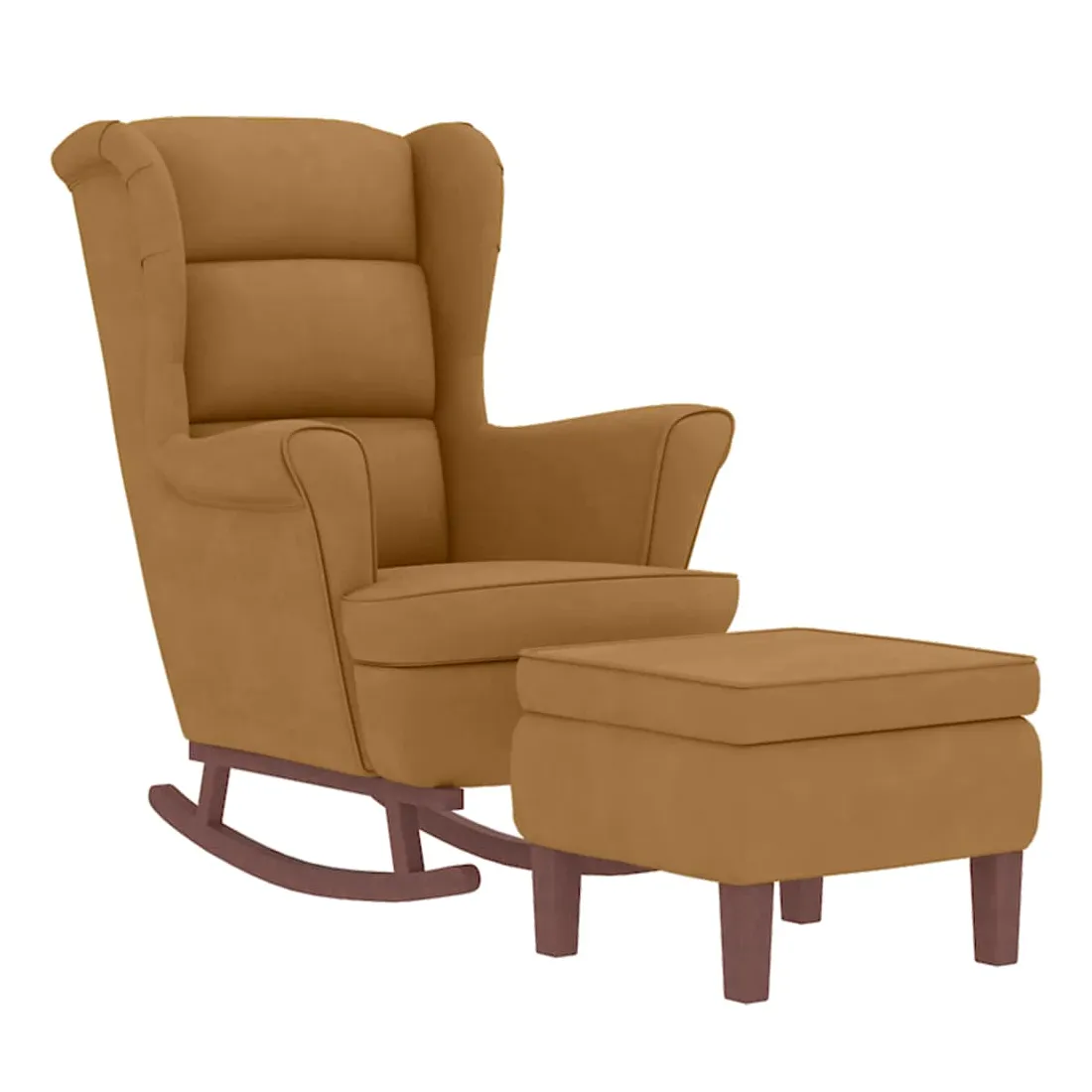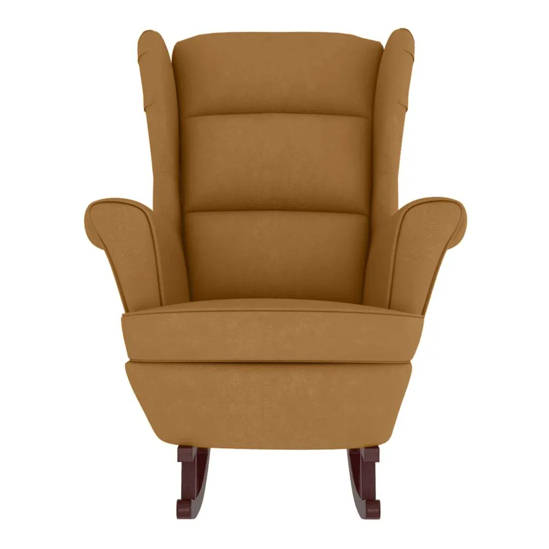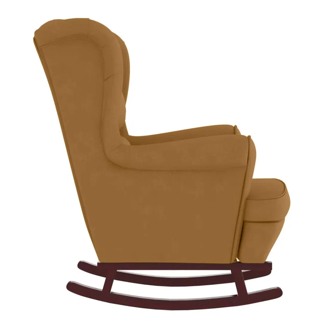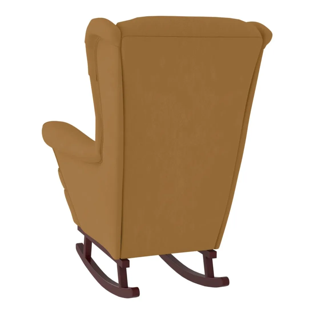 Fauteuil à bascule à oreilles en velours marron bois massif