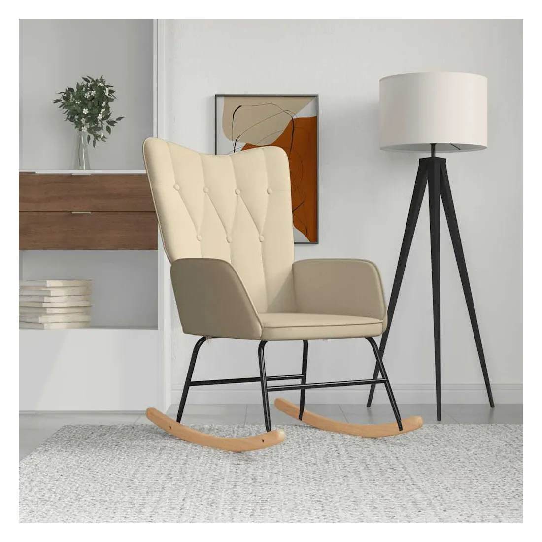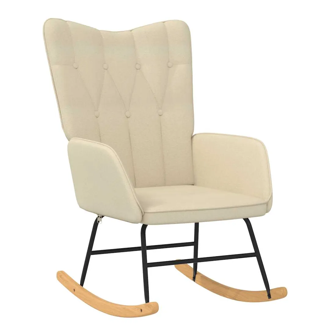Cette chaise à bascule au design chic et élégant apportera une touche de modernité à votre décoration. Dotée de 7 boutons et de lignes, cette chaise de relaxation est esthétique. Grâce à sa mousse rembourrée recouverte d'un tissu doux au toucher, vous pourrez profiter d'un confort optimal pendant votre temps d'assise. Avec la conception de longs rails à bascule, le fauteuil ne basculera pas facilement. De plus, soutenue par un cadre et des pieds en acier, ainsi que par des rails à bascule en bois, la chaise de salon est stable et durable.