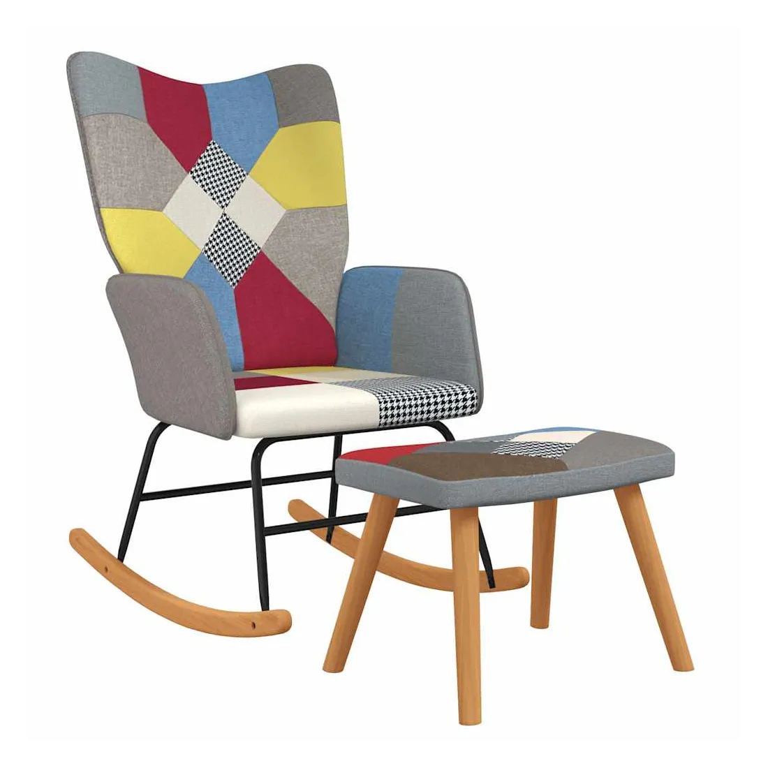 Cette chaise à bascule avec tabouret est un excellent supplément à votre décor existant. Ce fauteuil, au design patchwork aux couleurs vives, est esthétique. Grâce à sa mousse rembourrée recouverte d'un tissu doux au toucher, vous pourrez profiter d'un confort optimal pendant votre temps d'assise. Avec la conception de longs rails à bascule, la chaise de relaxation ne basculera pas facilement. Soutenue par un cadre et des pieds en acier, ainsi que par des rails à bascule en bois, la chaise de salon avec tabouret est stable et durable.