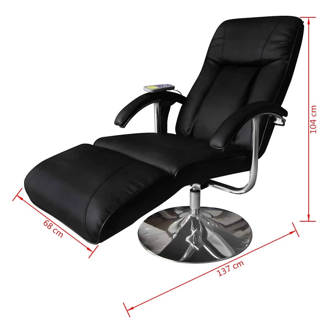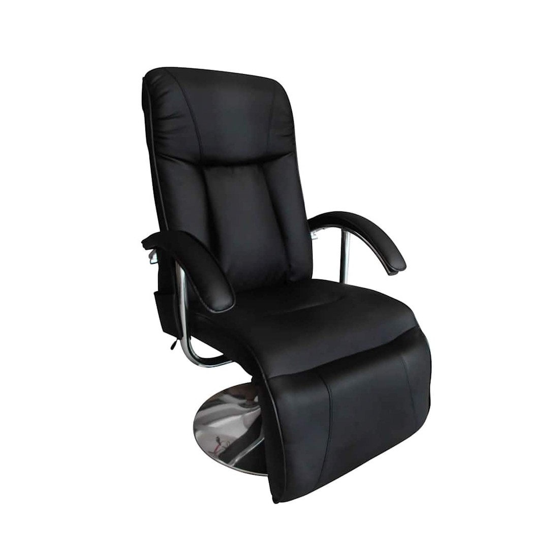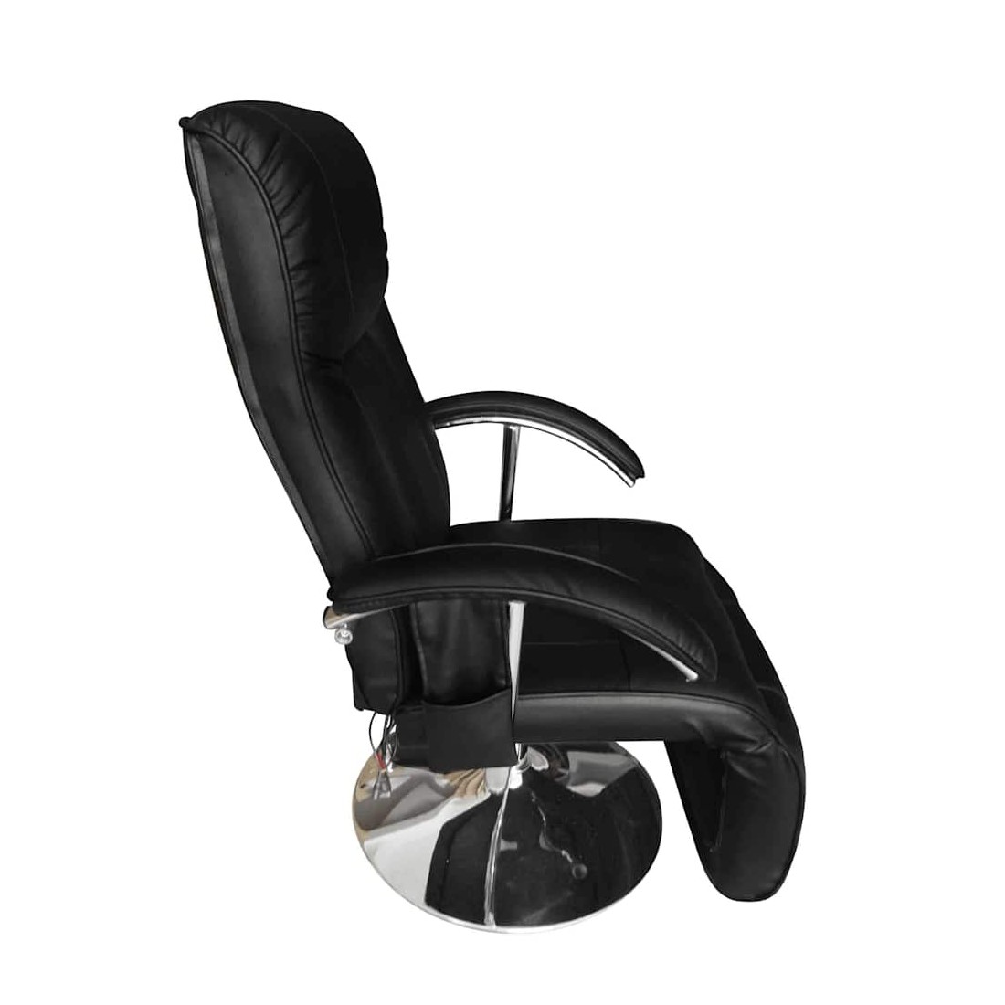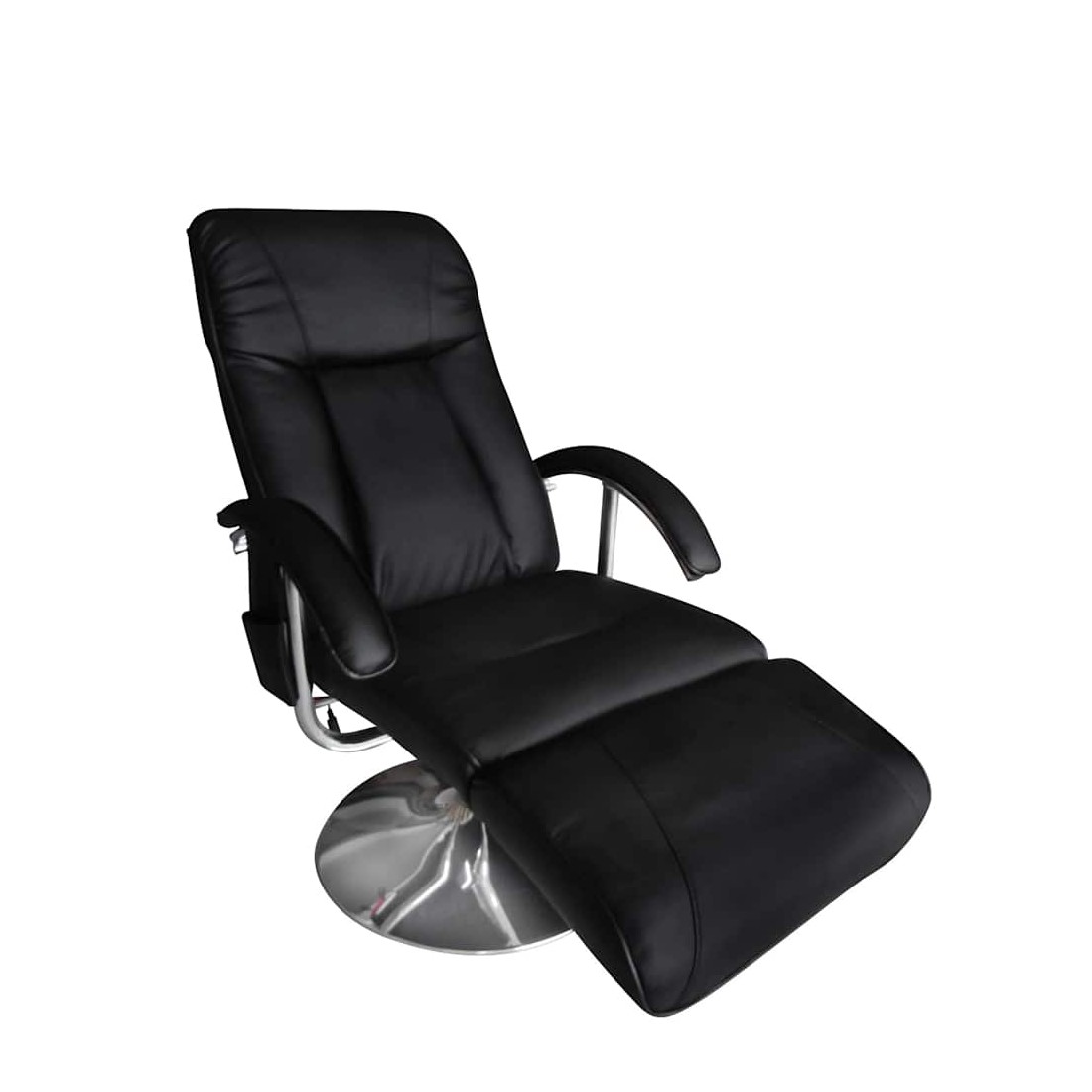 Un bon massage peut revitaliser tout votre corps - sentez-vous détendu et rafraîchi en quelques minutes avec ce fauteuil de massage !Ce fauteuil de massage de haute qualité est conçu de façon ergonomique pour vous donner une détente complète après une journée bien remplie. Le siège entier est rembourré pour offrir un confort optimal.Le fauteuil comporte 10 nœuds de massage conçus pour apaiser votre tête, cou, dos, muscles de mollet, etc. La durée du massage est ajustable à votre besoin personnel. Son traitement thermique aide à soulager la tension autour de votre région lombaire.Le fauteuil est rembourré avec du faux cuir noir, facile à nettoyer. Son dossier et son repose-pied sont également réglables de manière synchrone.Télécommande incluse Remarque : ce produit est doté d'un connecteur USB, mais la source d'alimentation certifiée de USB 5V n'est pas incluse.