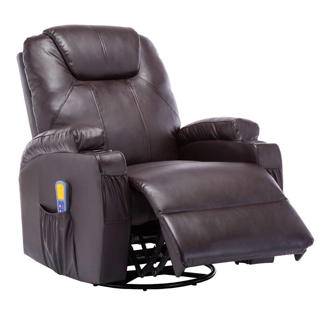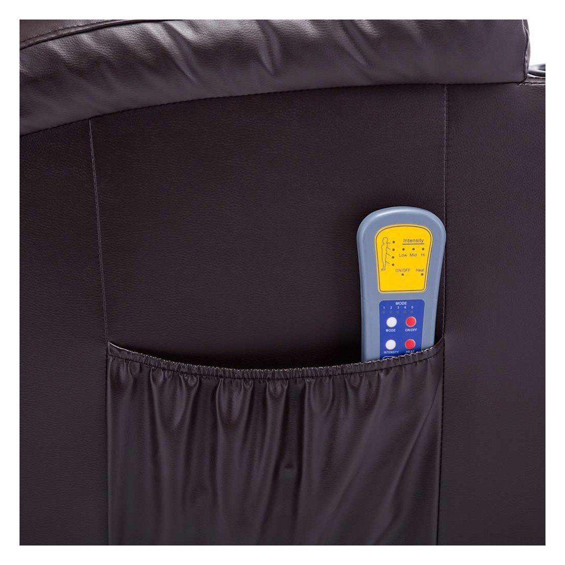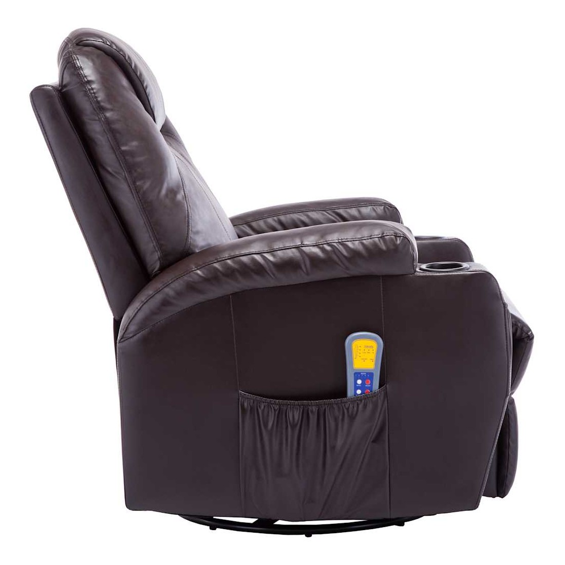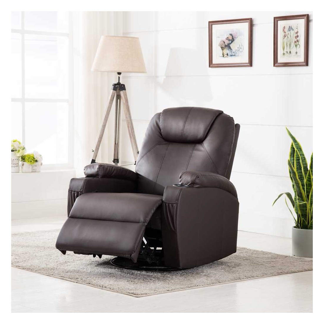 Notre fauteuil électrique à bascule de massage de haute qualité sera un choix parfait pour vous permettre de vous détendre complètement après une journée bien remplie. Tapissé en similicuir premium avec le siège et le dossier bien rembourrés, ce fauteuil pivotant et inclinable est conçu pour vous offrir le confort ultime. Le fauteuil dispose de son système pivotant qui peut fournir une vue à 360 ° de la pièce. Le fauteuil pivotant de massage dispose de 8 nœuds de massage pour apaiser tout votre corps. Le dossier et le repose-pied peuvent être ajustés selon différents angles en fonction de vos besoins. La télécommande incluse peut être rangée dans la poche latérale du fauteuil de massage. Le fauteuil électrique de massage est facile à assembler. Remarque : ce produit est doté d'un connecteur USB, mais la source d'alimentation certifiée de USB 5V n'est pas incluse.