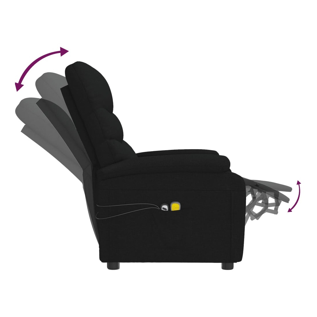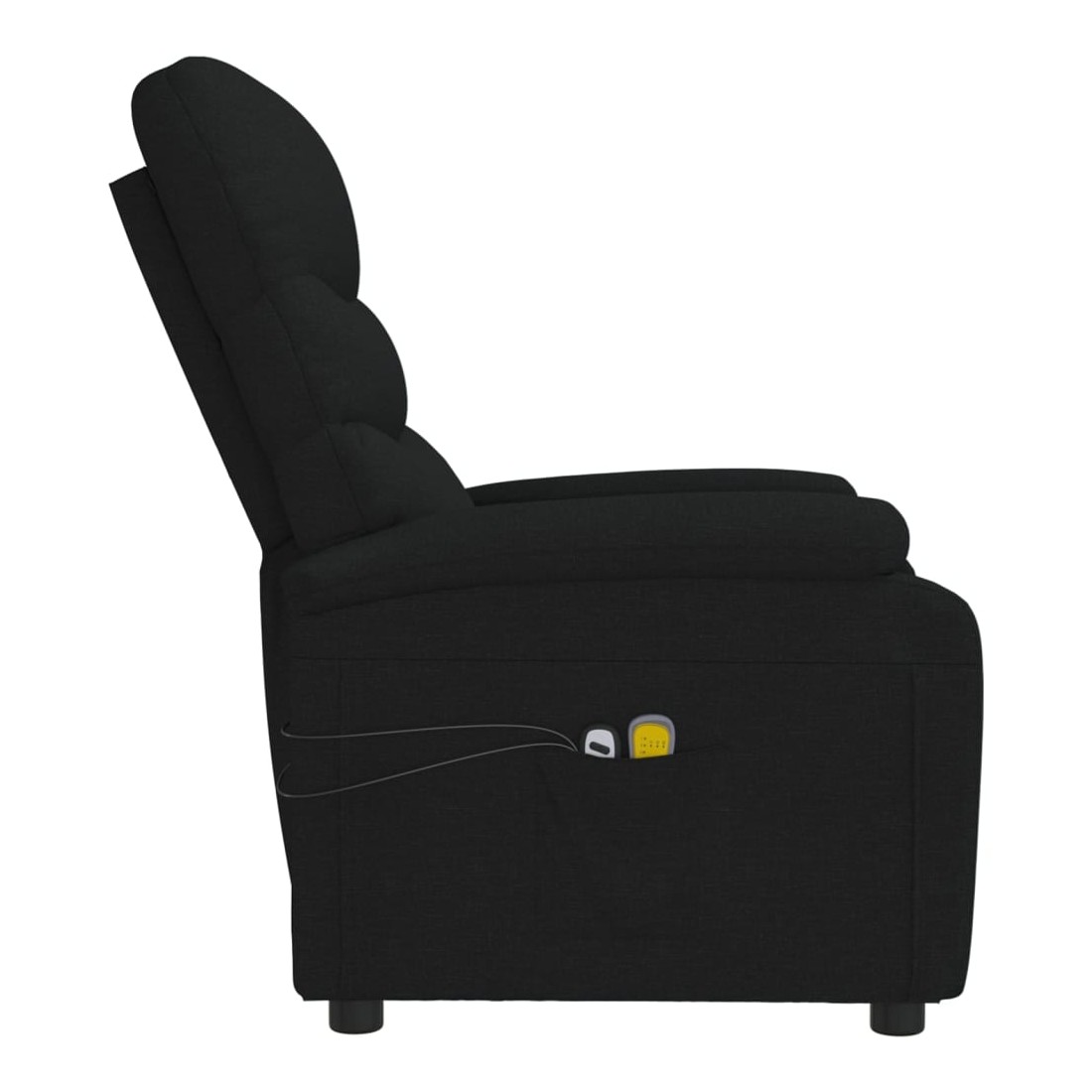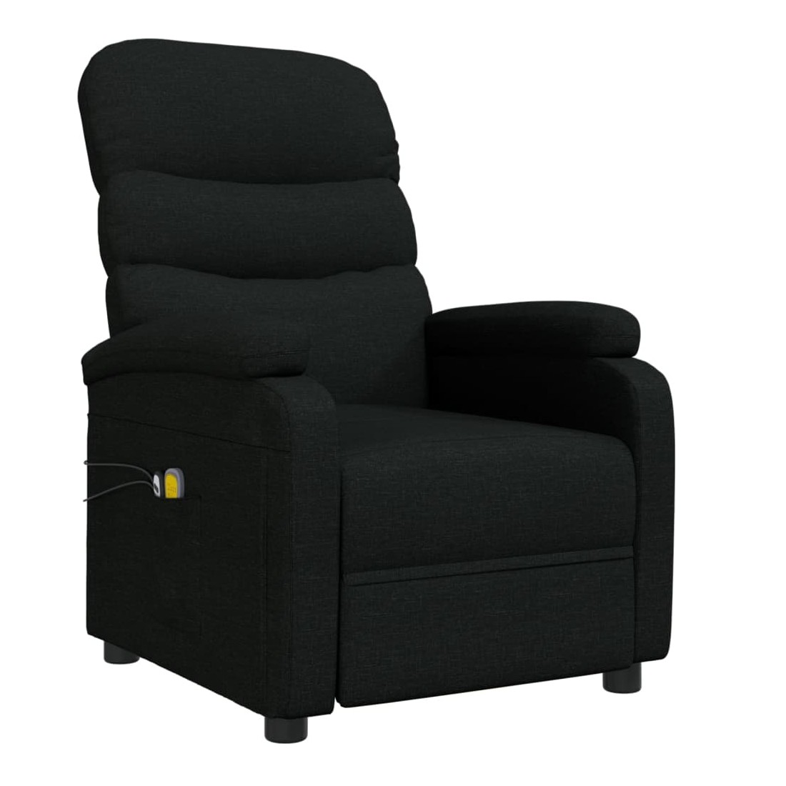 Asseyez-vous et détendez-vous dans ce fauteuil de massage électrique très confortable ! Fonction d'inclinaison électrique : le fauteuil inclinable est équipé d'un moteur électrique pour la fonction d'inclinaison. Il offre 3 positions d'inclinaison et vous pouvez facilement régler le dossier et le repose-pied à l'aide de la commande manuelle à 2 boutons incluse, en fonction de votre confort.Fonction de vibration : les 6 points de massage vous permettent de faire l'expérience d'un massage mieux ciblé. De plus, la télécommande incluse vous permet de choisir différents programmes de massage. La fonction de massage est alimentée par le connecteur USB, mais la source d'alimentation USB 5V certifiée n'est pas incluse.Expérience d'assise confortable : le siège, le dossier et les larges accoudoirs rembourrés épais recouverts de tissu procurent une sensation confortable et chaleureuse, vous permettant de vous sentir enveloppé lorsque vous êtes assis. Le tissu présente un aspect simple et épuré, et est respirant et durable.Cadre solide et stable : le cadre en bois et en métal offre une structure solide et une grande stabilité. Ce fauteuil inclinable est confortable et durable.