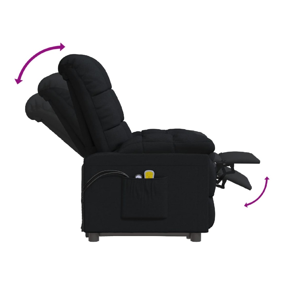 Asseyez-vous et détendez-vous dans ce fauteuil de massage électrique très confortable ! Fonction d'inclinaison électrique : le fauteuil inclinable est équipé d'un moteur électrique pour la fonction d'inclinaison. Il offre 3 positions d'inclinaison et vous pouvez facilement régler le dossier et le repose-pied à l'aide de la commande manuelle à 2 boutons incluse, en fonction de votre confort. Fonction de vibration : les 6 points de massage vous permettent de faire l'expérience d'un massage mieux ciblé. De plus, la télécommande incluse vous permet de choisir différents programmes de massage. La fonction de massage est alimentée par le connecteur USB, mais la source d'alimentation USB 5V certifiée n'est pas incluse. Expérience d'assise confortable : le siège, le dossier et les larges accou