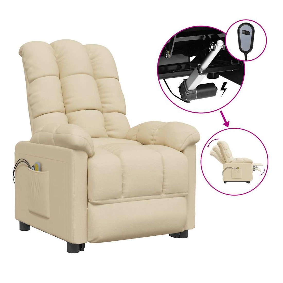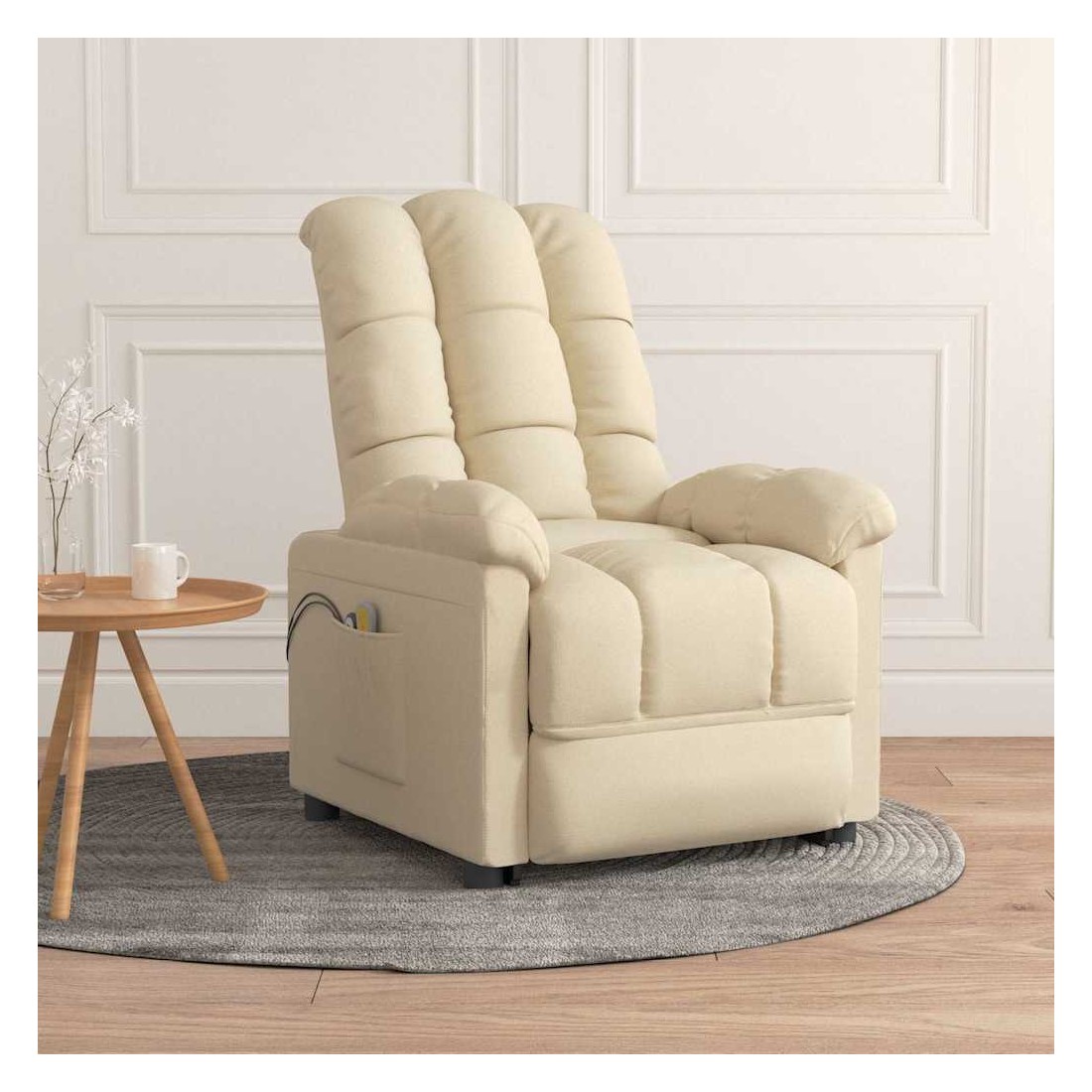 Asseyez-vous et détendez-vous dans ce fauteuil de massage électrique très confortable ! Fonction d'inclinaison électrique : le fauteuil inclinable est équipé d'un moteur électrique pour la fonction d'inclinaison. Il offre 3 positions d'inclinaison et vous pouvez facilement régler le dossier et le repose-pied à l'aide de la commande manuelle à 2 boutons incluse, en fonction de votre confort.Fonction de vibration : les 6 points de massage vous permettent de faire l'expérience d'un massage mieux ciblé. De plus, la télécommande incluse vous permet de choisir différents programmes de massage. La fonction de massage est alimentée par le connecteur USB, mais la source d'alimentation USB 5V certifiée n'est pas incluse.Expérience d'assise confortable : le siège, le dossier et les larges accoudoirs rembourrés épais recouverts de tissu procurent une sensation confortable et chaleureuse, vous permettant de vous sentir enveloppé lorsque vous êtes assis. Le tissu présente un aspect simple et épuré, et est respirant et durable.Cadre solide et stable : le cadre en bois et en métal offre une structure solide et une grande stabilité. Ce fauteuil inclinable est confortable et durable.