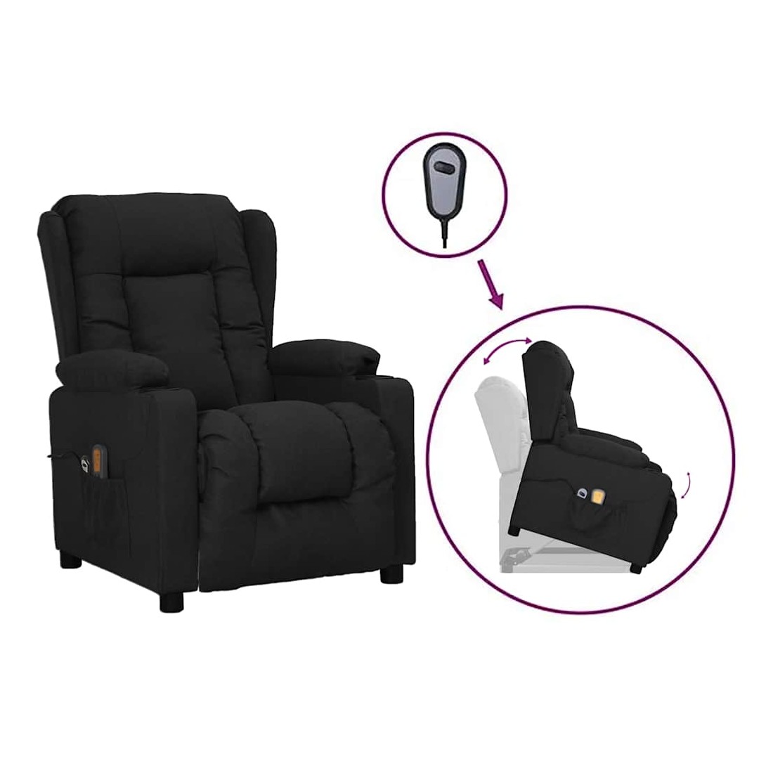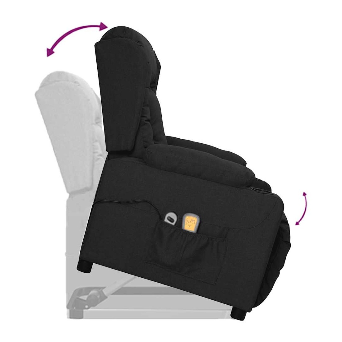 Asseyez-vous et détendez-vous dans ce fauteuil de massage très confortable ! Fonction d'inclinaison manuelle : le fauteuil inclinable est spécialement conçu avec 3 positions d'inclinaison afin que vous puissiez régler manuellement le dossier et le repose-pieds selon votre confort.Fonction de levage électrique : ce fauteuil inclinable pour personnes âgées est équipé d'un moteur électrique pour la fonction de levage. Grâce à la fonction qui pousse toute la chaise vers le haut, vous pouvez facilement vous tenir debout sans stresser votre dos et vos genoux grâce à la commande manuelle à 2 boutons.Fonction de vibration : les 6 points de massage proposés te permettent de bénéficier d'un massage mieux ciblé. De plus, la commande manuelle incluse te permet de choisir différents programmes de massage. La fonction de massage est alimentée par le connecteur USB, mais la source d'alimentation USB 5 V certifiée n'est pas incluse.Expérience d'assise confortable : le siège, le dossier et les larges accoudoirs rembourrés épais recouverts de tissu procurent une sensation confortable et chaleureuse, vous permettant de vous sentir enveloppé lorsque vous êtes assis. Le tissu présente un aspect simple et épuré, et est respirant et durable.Cadre solide et stable : le cadre en bois et en métal offre une structure solide et une grande stabilité. Ce fauteuil inclinable est confortable et durable.