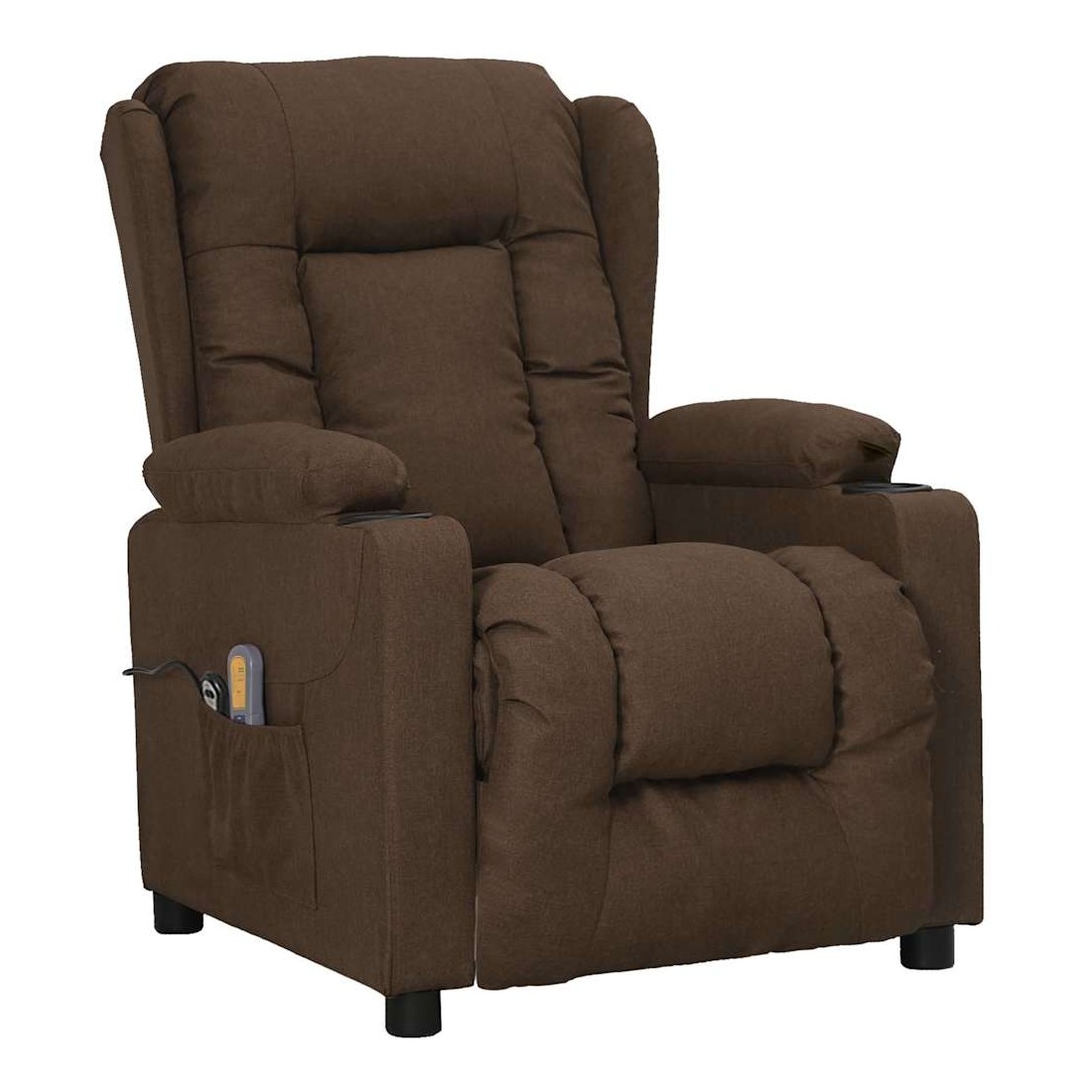 Asseyez-vous et détendez-vous dans ce fauteuil de massage très confortable ! Fonction d'inclinaison manuelle : le fauteuil inclinable est spécialement conçu avec 3 positions d'inclinaison afin que vous puissiez régler manuellement le dossier et le repose-pieds selon votre confort.Fonction de levage électrique : ce fauteuil inclinable pour personnes âgées est équipé d'un moteur électrique pour la fonction de levage. Grâce à la fonction qui pousse toute la chaise vers le haut, vous pouvez facilement vous tenir debout sans stresser votre dos et vos genoux grâce à la commande manuelle à 2 boutons.Fonction de vibration : les 6 points de massage proposés te permettent de bénéficier d'un massage mieux ciblé. De plus, la commande manuelle incluse te permet de choisir différents programmes de massage. La fonction de massage est alimentée par le connecteur USB, mais la source d'alimentation USB 5 V certifiée n'est pas incluse.Expérience d'assise confortable : le siège, le dossier et les larges accoudoirs rembourrés épais recouverts de tissu procurent une sensation confortable et chaleureuse, vous permettant de vous sentir enveloppé lorsque vous êtes assis. Le tissu présente un aspect simple et épuré, et est respirant et durable.Cadre solide et stable : le cadre en bois et en métal offre une structure solide et une grande stabilité. Ce fauteuil inclinable est confortable et durable.