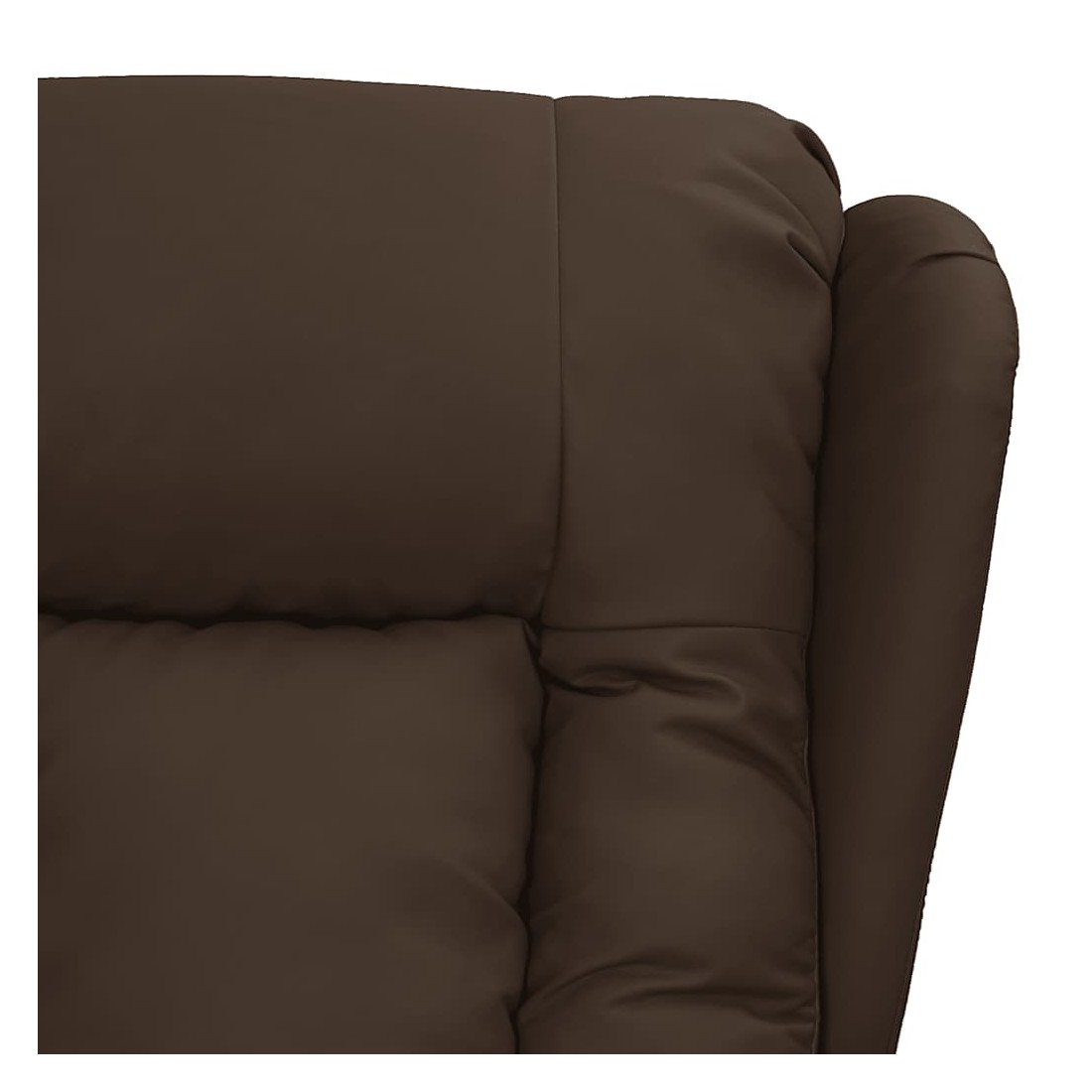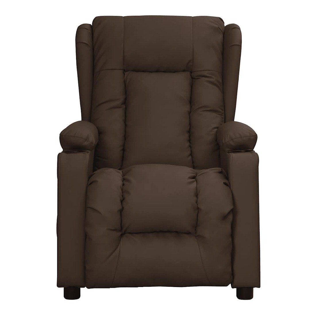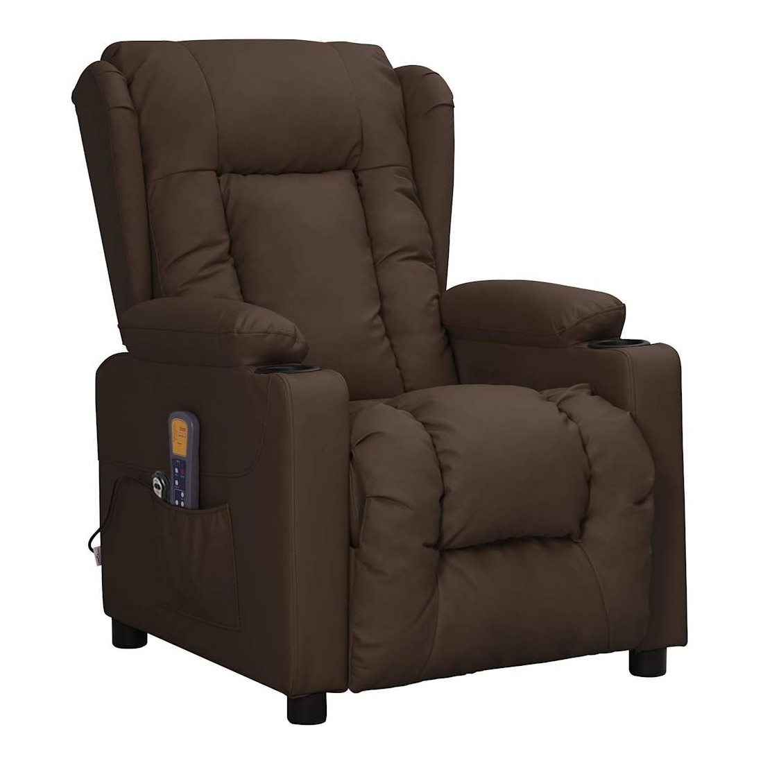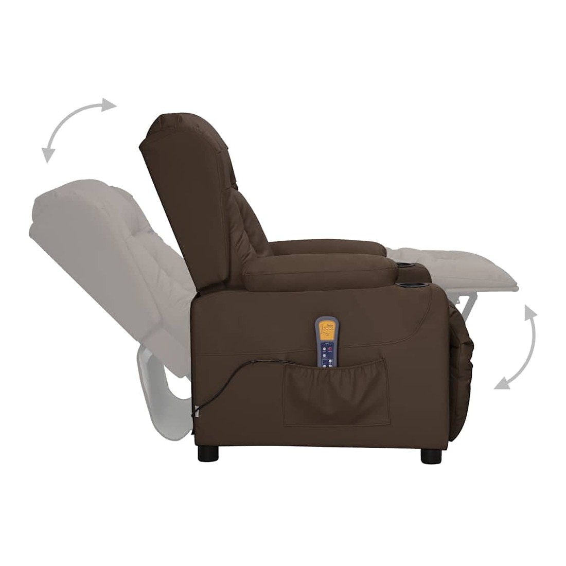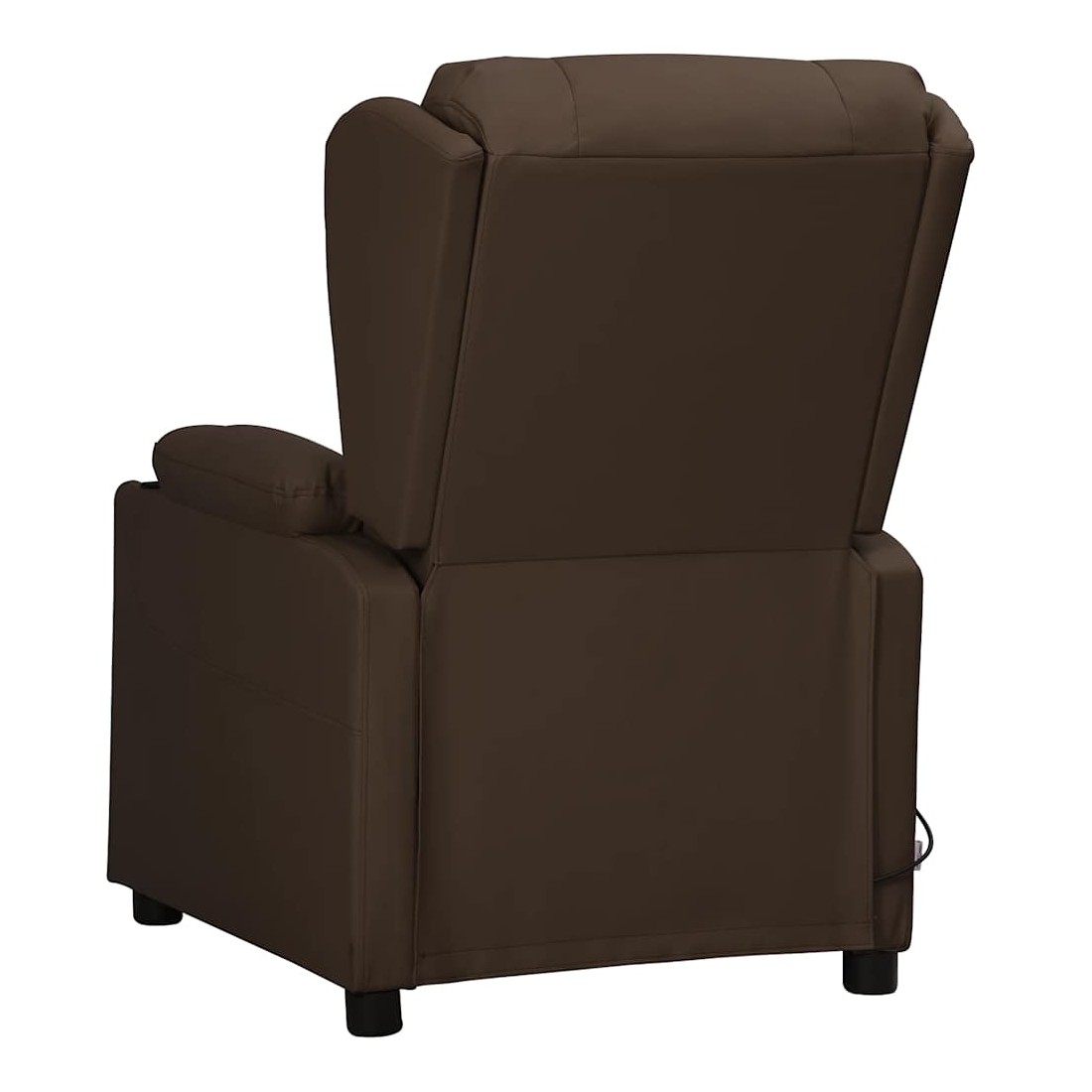 Asseyez-vous et détendez-vous dans ce fauteuil de massage très confortable ! Fonction d'inclinaison manuelle : le fauteuil inclinable est spécialement conçu avec 3 positions d'inclinaison afin que vous puissiez régler manuellement le dossier et le repose-pieds selon votre confort.Fonction de levage électrique : ce fauteuil inclinable pour personnes âgées est équipé d'un moteur électrique pour la fonction de levage. Grâce à la fonction qui pousse toute la chaise vers le haut, vous pouvez facilement vous tenir debout sans stresser votre dos et vos genoux grâce à la commande manuelle à 2 boutons.Fonction de vibration : les 6 points de massage proposés te permettent de bénéficier d'un massage mieux ciblé. De plus, la commande manuelle incluse te permet de choisir différents programmes de massage. La fonction de massage est alimentée par le connecteur USB, mais la source d'alimentation USB 5 V certifiée n'est pas incluse.Expérience de siège confortable : le siège, le dossier et les larges accoudoirs rembourrés épais recouverts de similicuir procurent une sensation confortable et chaleureuse, vous faisant vous sentir enlacé lorsque vous êtes assis. Le simili cuir est un matériau très résistant. Il est résistant aux taches, ce qui le rend facile à nettoyer avec un chiffon humide. La surface lisse donne également un aspect luxueux et la beauté du cuir véritable.Cadre solide et stable : le cadre en bois et en métal offre une structure solide et une grande stabilité. Ce fauteuil inclinable est confortable et durable.