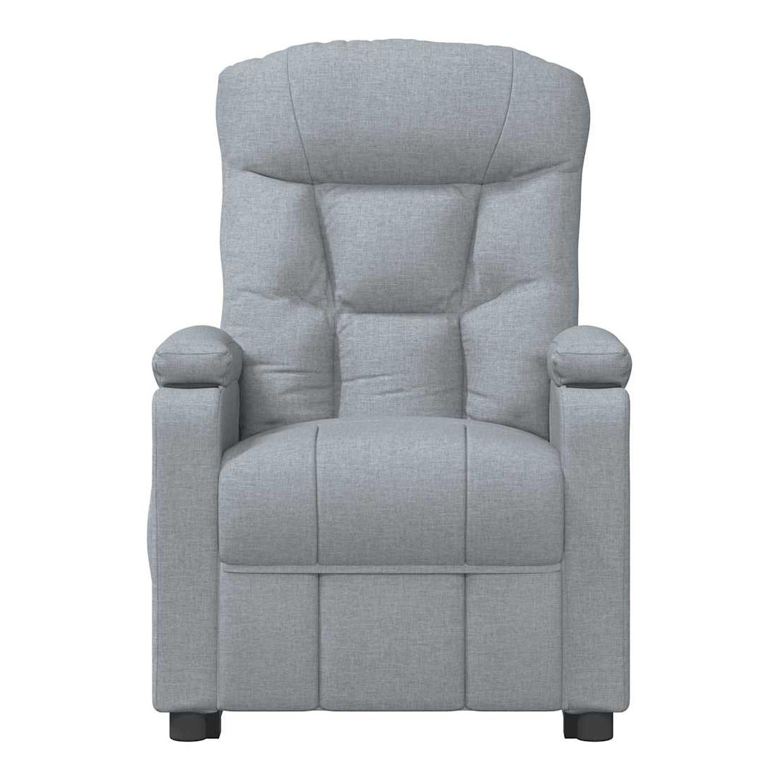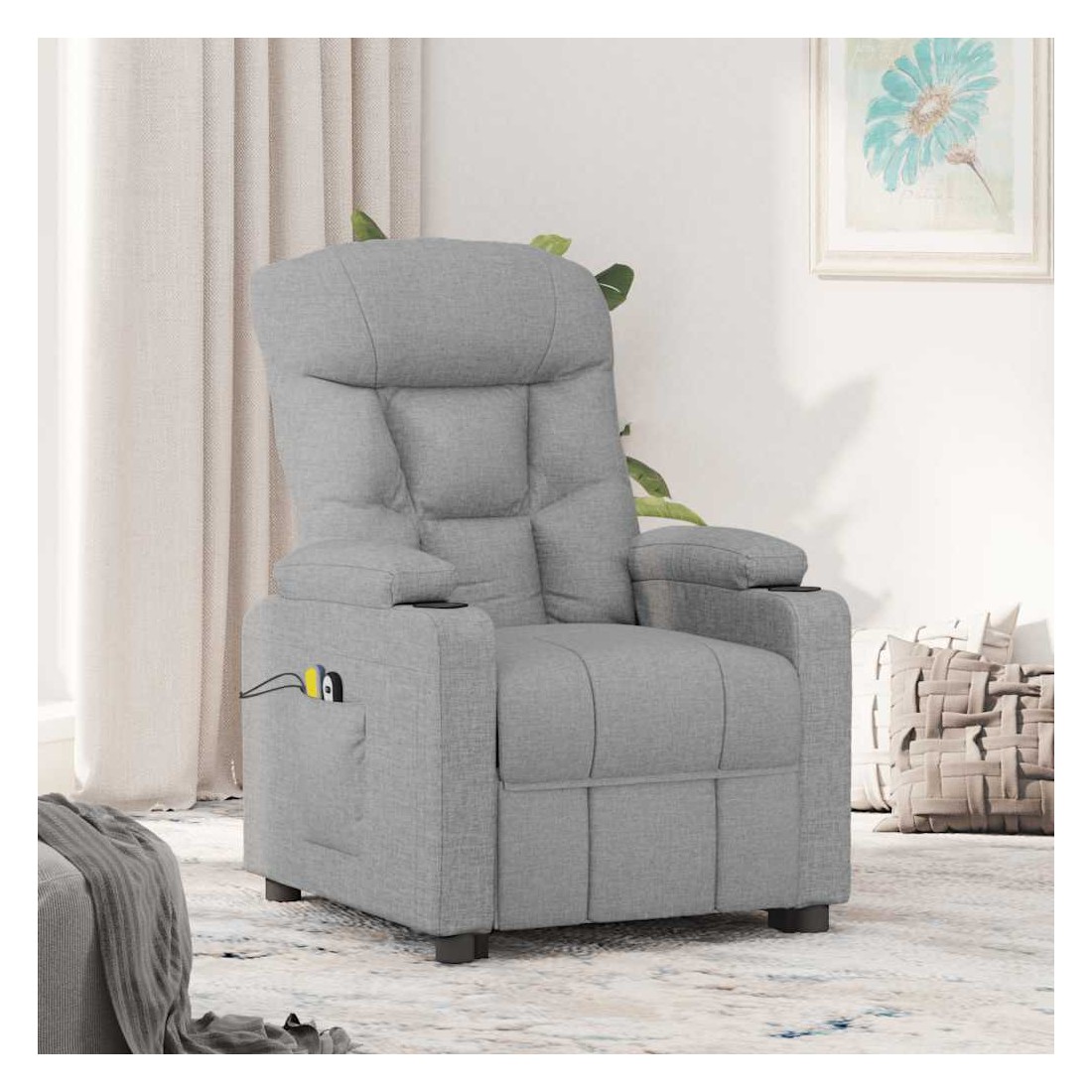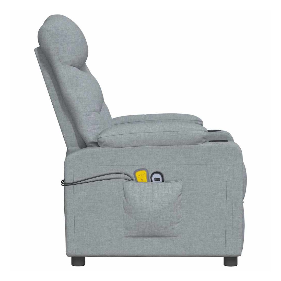 Asseyez-vous et détendez-vous dans ce fauteuil de massage très confortable ! Fonction d'inclinaison manuelle : le fauteuil inclinable est spécialement conçu avec 3 positions d'inclinaison afin que vous puissiez régler manuellement le dossier et le repose-pieds selon votre confort.Fonction de levage électrique : ce fauteuil inclinable pour personnes âgées est équipé d'un moteur électrique pour la fonction de levage. Grâce à la fonction qui pousse toute la chaise vers le haut, vous pouvez facilement vous tenir debout sans stresser votre dos et vos genoux grâce à la commande manuelle à 2 boutons.Fonction de vibration : les 6 points de massage vous permettent de faire l'expérience d'un massage mieux ciblé. De plus, la télécommande incluse vous permet de choisir différents programmes de massage. La fonction de massage est alimentée par le connecteur USB, mais la source d'alimentation USB 5V certifiée n'est pas incluse.Expérience d'assise confortable : le siège, le dossier et les larges accoudoirs rembourrés épais recouverts de tissu procurent une sensation confortable et chaleureuse, vous permettant de vous sentir enveloppé lorsque vous êtes assis. Le tissu présente un aspect simple et épuré, et est respirant et durable.Cadre solide et stable : le cadre en bois et en métal offre une structure solide et une grande stabilité. Ce fauteuil inclinable est confortable et durable.