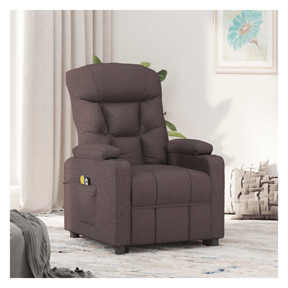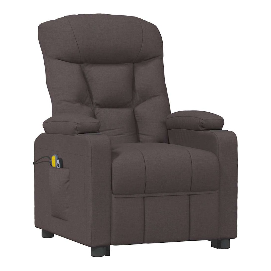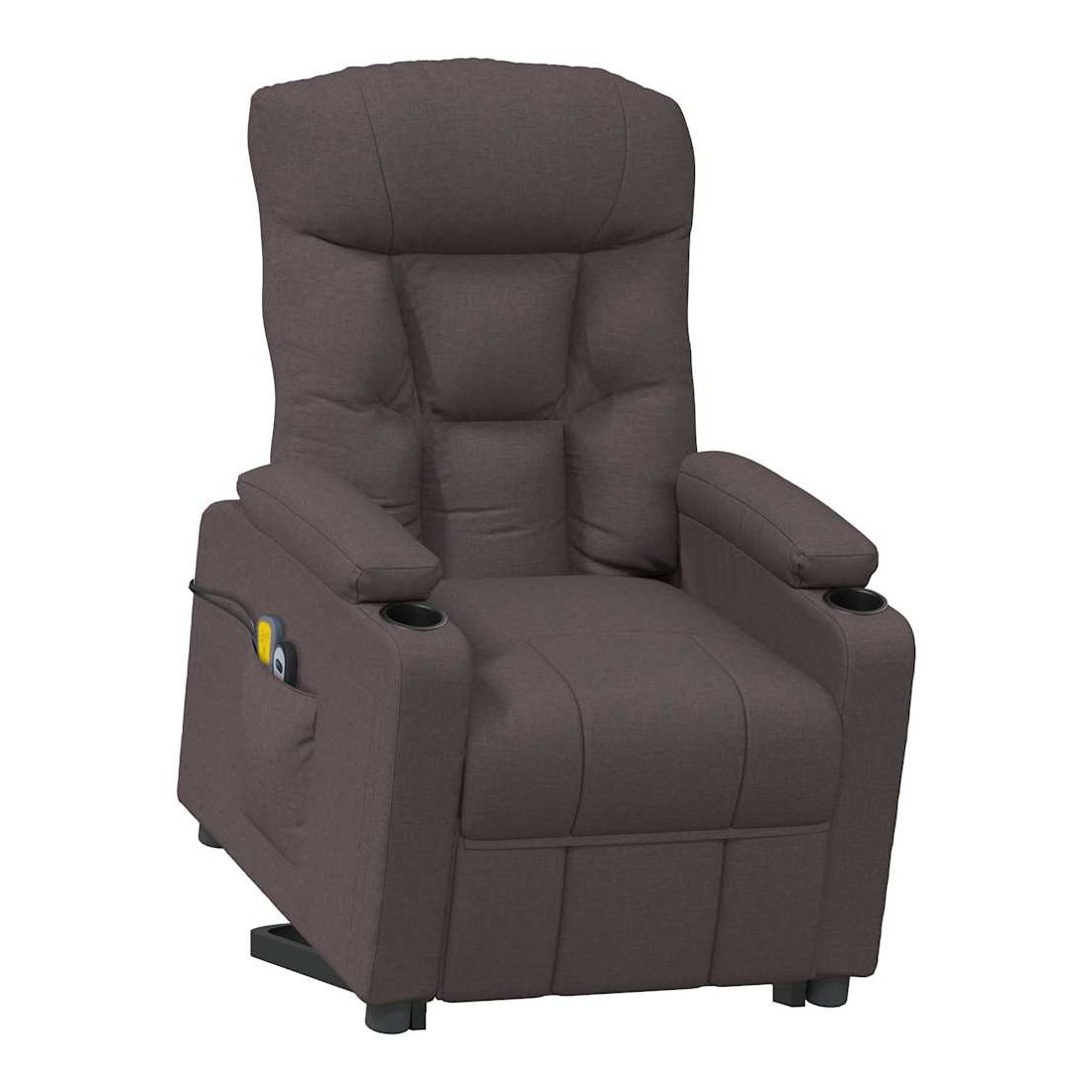 Asseyez-vous et détendez-vous dans ce fauteuil de massage très confortable ! Fonction d'inclinaison manuelle : le fauteuil inclinable est spécialement conçu avec 3 positions d'inclinaison afin que vous puissiez régler manuellement le dossier et le repose-pieds selon votre confort.Fonction de levage électrique : ce fauteuil inclinable pour personnes âgées est équipé d'un moteur électrique pour la fonction de levage. Grâce à la fonction qui pousse toute la chaise vers le haut, vous pouvez facilement vous tenir debout sans stresser votre dos et vos genoux grâce à la commande manuelle à 2 boutons.Fonction de vibration : les 6 points de massage vous permettent de faire l'expérience d'un massage mieux ciblé. De plus, la télécommande incluse vous permet de choisir différents programmes de massage. La fonction de massage est alimentée par le connecteur USB, mais la source d'alimentation USB 5V certifiée n'est pas incluse.Expérience d'assise confortable : le siège, le dossier et les larges accoudoirs rembourrés épais recouverts de tissu procurent une sensation confortable et chaleureuse, vous permettant de vous sentir enveloppé lorsque vous êtes assis. Le tissu présente un aspect simple et épuré, et est respirant et durable.Cadre solide et stable : le cadre en bois et en métal offre une structure solide et une grande stabilité. Ce fauteuil inclinable est confortable et durable.