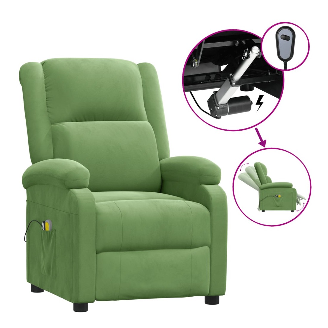 Fauteuil électrique de massage Vert clair velours