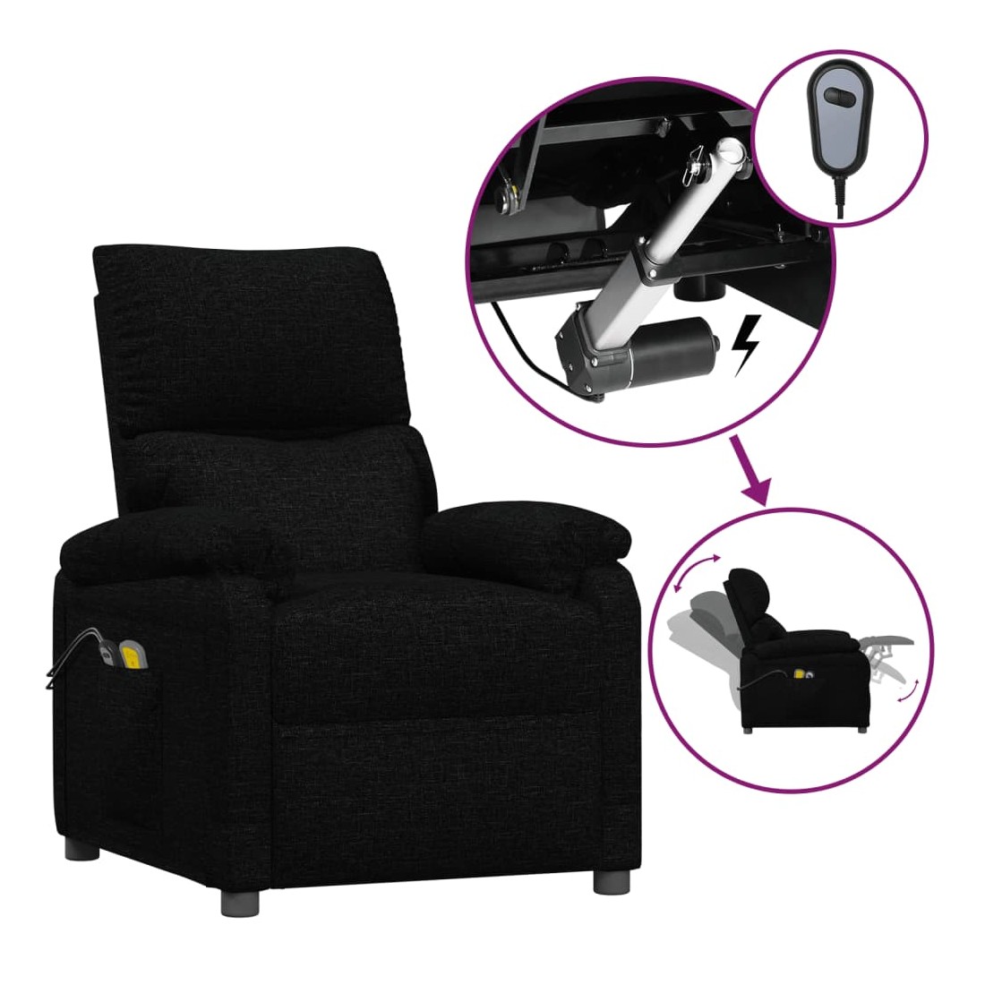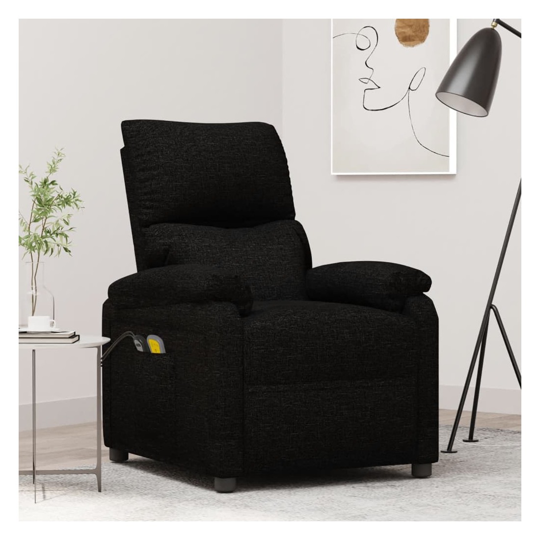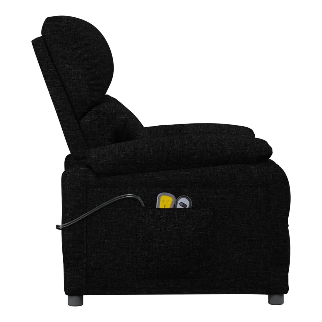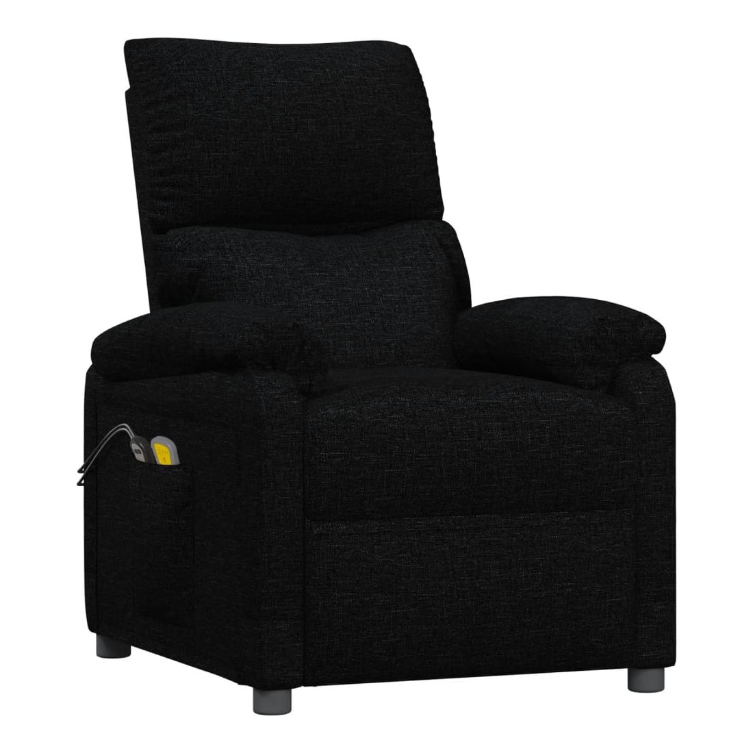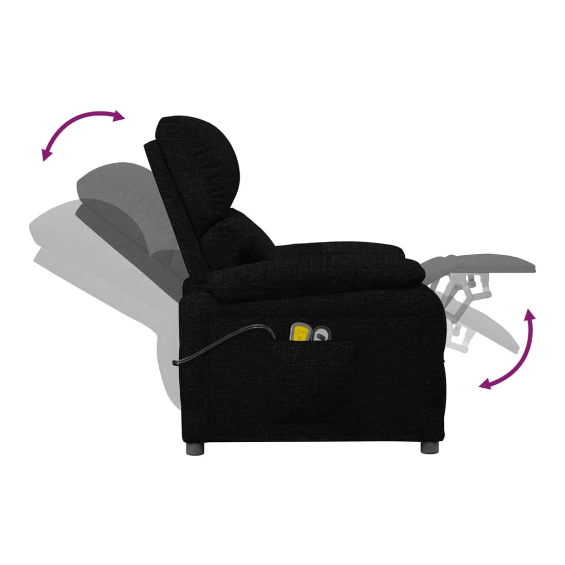 Asseyez-vous et détendez-vous dans ce fauteuil de massage électrique très confortable ! Fonction d'inclinaison électrique : le fauteuil inclinable est équipé d'un moteur électrique pour la fonction d'inclinaison. Il offre 3 positions d'inclinaison et vous pouvez facilement régler le dossier et le repose-pied à l'aide de la commande manuelle à 2 boutons incluse, en fonction de votre confort.Fonction de vibration : les 6 points de massage vous permettent de faire l'expérience d'un massage mieux ciblé. De plus, la télécommande incluse vous permet de choisir différents programmes de massage. La fonction de massage est alimentée par le connecteur USB, mais la source d'alimentation USB 5V certifiée n'est pas incluse.Expérience d'assise confortable : le siège, le dossier et les larges accoudoirs rembourrés épais recouverts de tissu procurent une sensation confortable et chaleureuse, vous permettant de vous sentir enveloppé lorsque vous êtes assis. Le tissu présente un aspect simple et épuré, et est respirant et durable.Cadre solide et stable : le cadre en bois et en métal offre une structure solide et une grande stabilité. Ce fauteuil inclinable est confortable et durable.