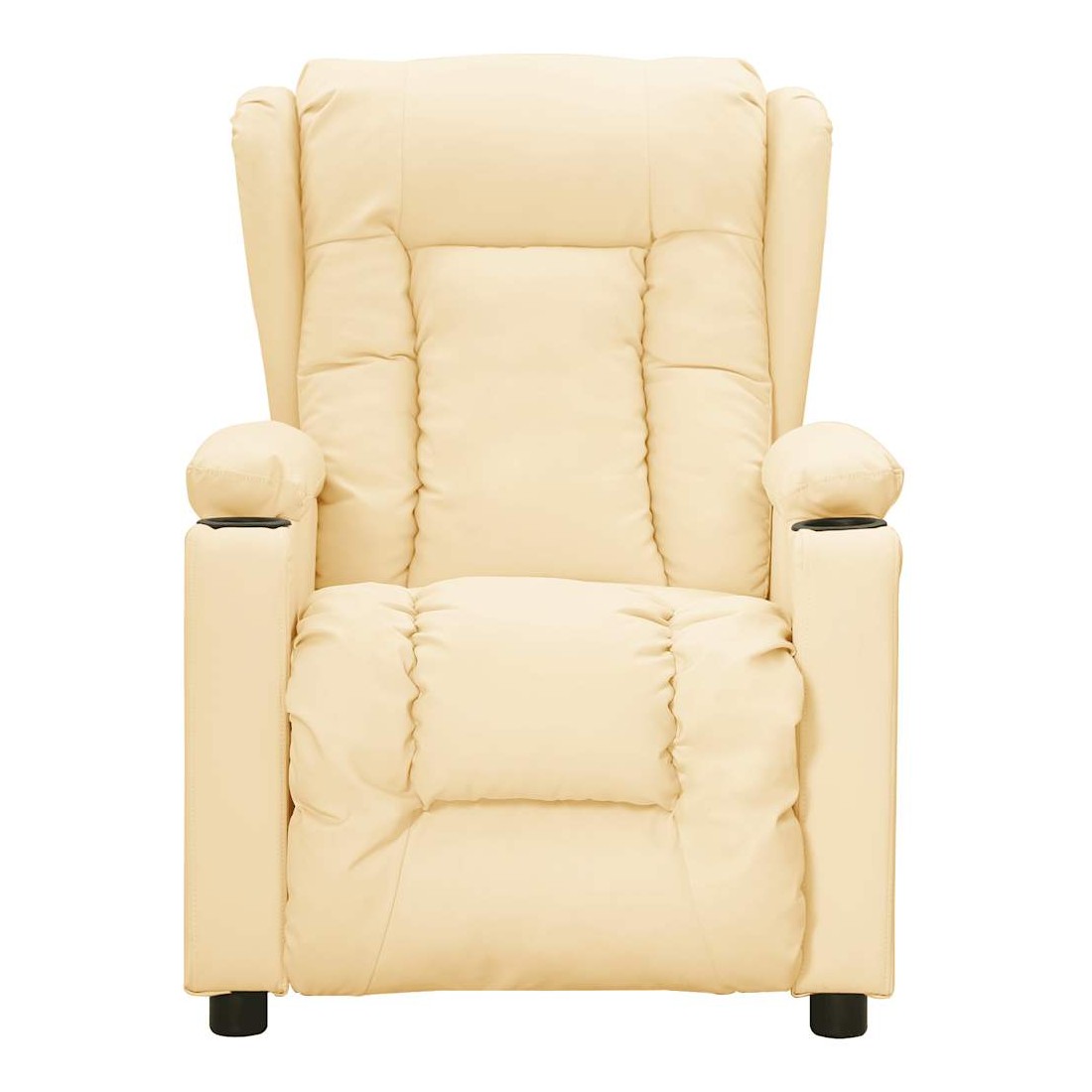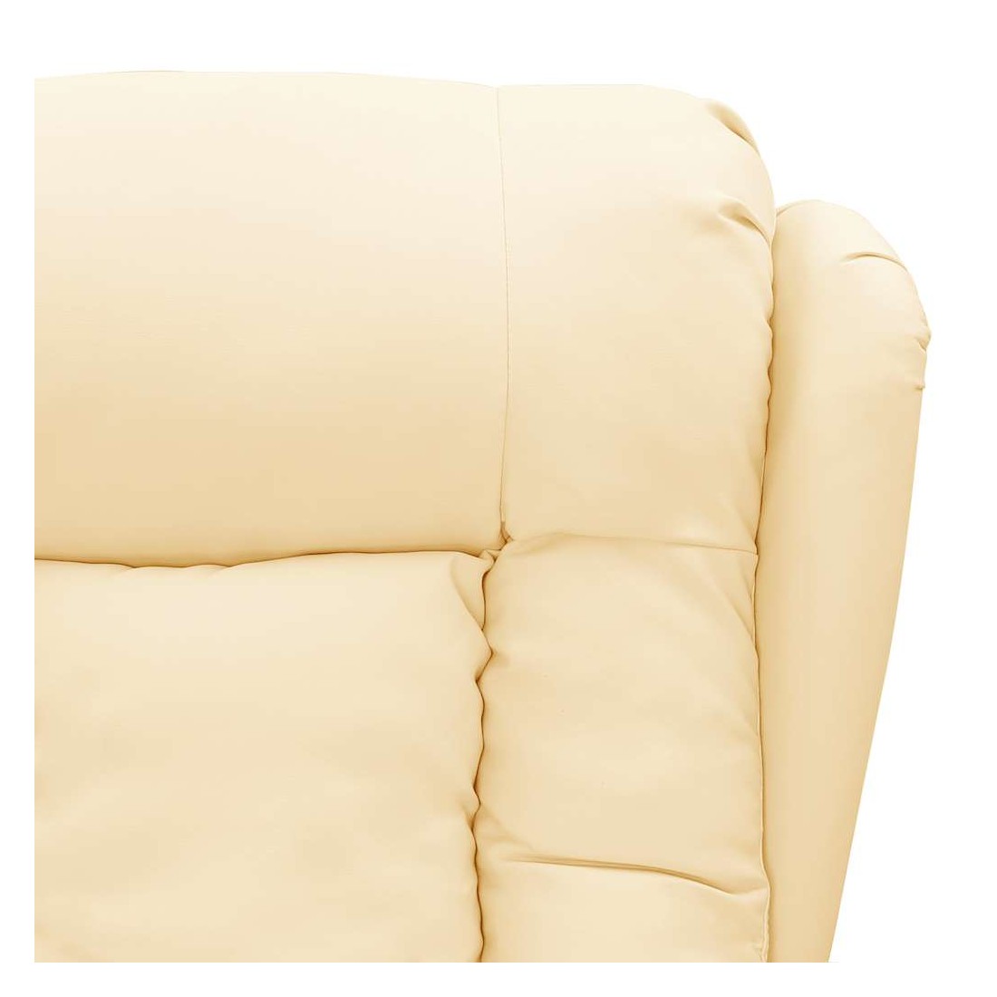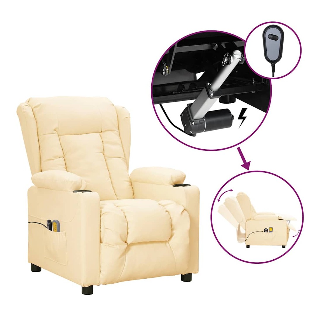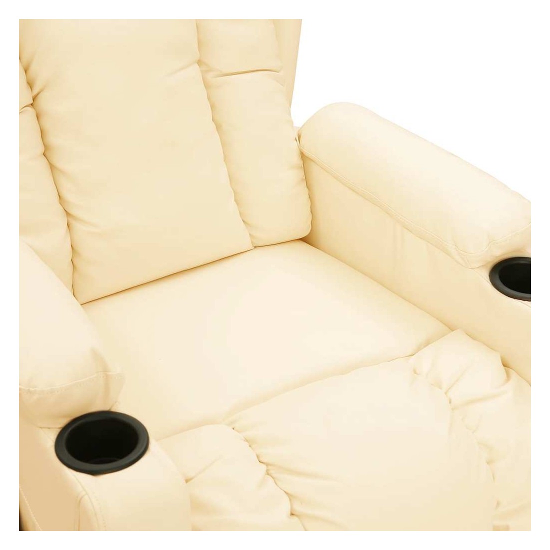 Asseyez-vous et détendez-vous dans ce fauteuil de massage électrique très confortable ! Fonction d'inclinaison électrique : le fauteuil inclinable est équipé d'un moteur électrique pour la fonction d'inclinaison. Il offre 3 positions d'inclinaison et vous pouvez facilement régler le dossier et le repose-pied à l'aide de la commande manuelle à 2 boutons incluse, en fonction de votre confort.Fonction de vibration : les 6 points de massage proposés te permettent de bénéficier d'un massage mieux ciblé. De plus, la commande manuelle incluse te permet de choisir différents programmes de massage. La fonction de massage est alimentée par le connecteur USB, mais la source d'alimentation USB 5 V certifiée n'est pas incluse.Expérience de siège confortable : le siège, le dossier et les larges accoudoirs rembourrés épais recouverts de similicuir procurent une sensation confortable et chaleureuse, vous faisant vous sentir enlacé lorsque vous êtes assis. Le simili cuir est un matériau très résistant. Il est résistant aux taches, ce qui le rend facile à nettoyer avec un chiffon humide. La surface lisse donne également un aspect luxueux et la beauté du cuir véritable.Cadre solide et stable : le cadre en bois et en métal offre une structure solide et une grande stabilité. Ce fauteuil inclinable est confortable et durable.