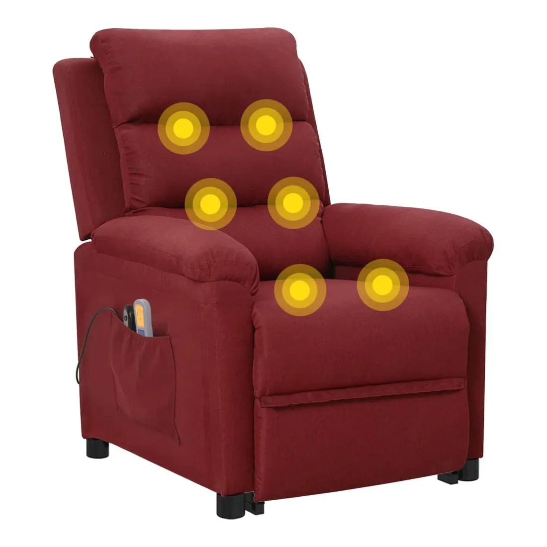 Asseyez-vous et détendez-vous dans ce fauteuil de massage très confortable ! Fonction d'inclinaison manuelle : le fauteuil inclinable est spécialement conçu avec 3 positions d'inclinaison afin que vous puissiez régler manuellement le dossier et le repose-pieds selon votre confort.Fonction de levage électrique : ce fauteuil inclinable pour personnes âgées est équipé d'un moteur électrique pour la fonction de levage. Grâce à la fonction qui pousse toute la chaise vers le haut, vous pouvez facilement vous tenir debout sans stresser votre dos et vos genoux grâce à la commande manuelle à 2 boutons.Fonction de vibration : les 6 points de massage vous permettent de faire l'expérience d'un massage mieux ciblé. De plus, la télécommande incluse vous permet de choisir différents programmes de massage. La fonction de massage est alimentée par le connecteur USB, mais la source d'alimentation USB 5V certifiée n'est pas incluse.Expérience d'assise confortable : le siège, le dossier et les larges accoudoirs rembourrés épais recouverts de tissu procurent une sensation confortable et chaleureuse, vous permettant de vous sentir enveloppé lorsque vous êtes assis. Le tissu présente un aspect simple et épuré, et est respirant et durable.Cadre solide et stable : le cadre en bois et en métal offre une structure solide et une grande stabilité. Ce fauteuil inclinable est confortable et durable.