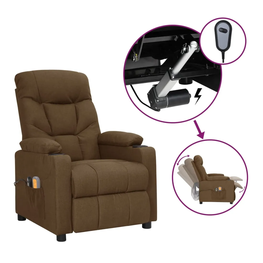 Fauteuil électrique de massage Marron Tissu