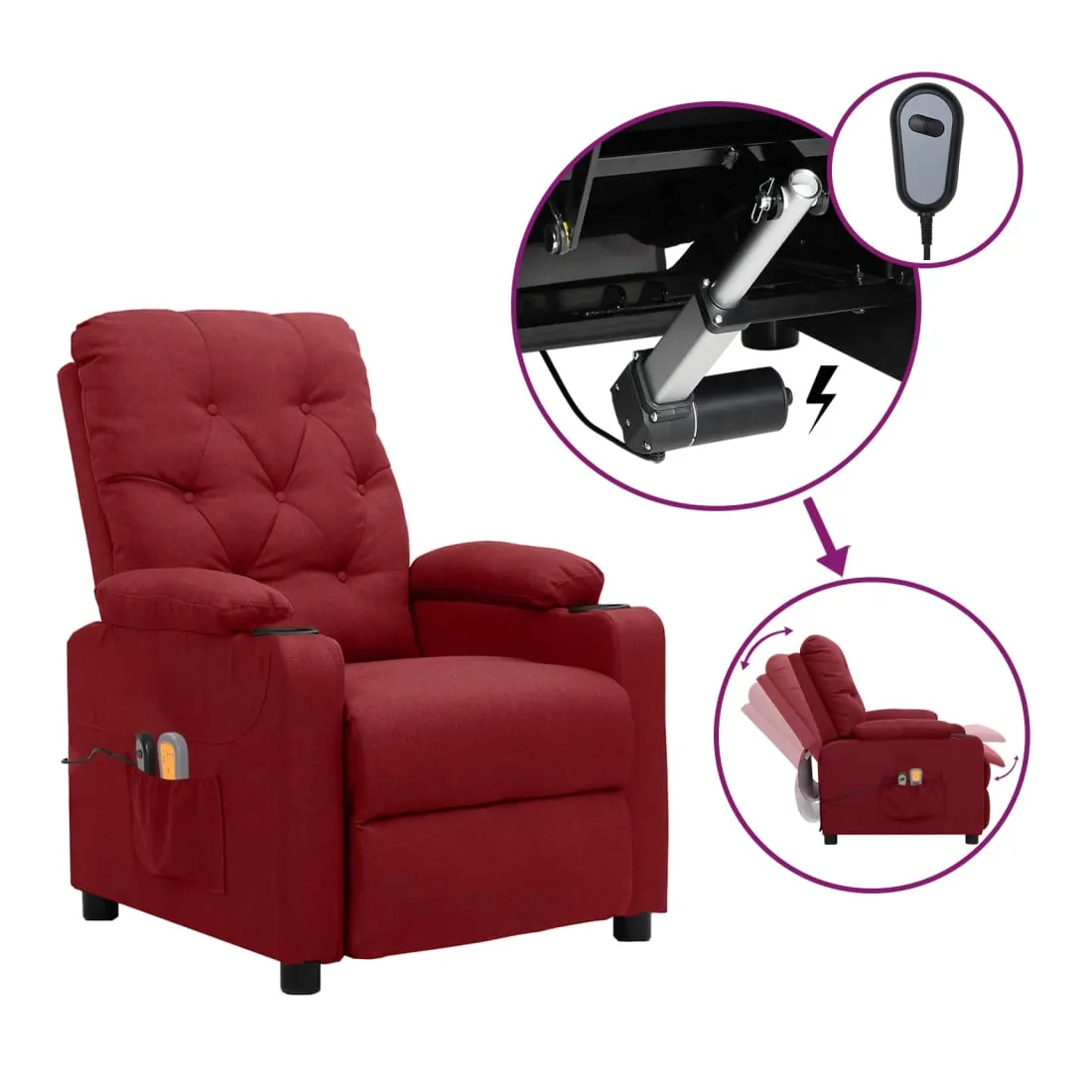Asseyez-vous et détendez-vous dans ce fauteuil de massage électrique très confortable ! Fonction d'inclinaison électrique : le fauteuil inclinable est équipé d'un moteur électrique pour la fonction d'inclinaison. Il offre 3 positions d'inclinaison et vous pouvez facilement régler le dossier et le repose-pied à l'aide de la commande manuelle à 2 boutons incluse, en fonction de votre confort.Fonction de vibration : les 6 points de massage vous permettent de faire l'expérience d'un massage mieux ciblé. De plus, la télécommande incluse vous permet de choisir différents programmes de massage. La fonction de massage est alimentée par le connecteur USB, mais la source d'alimentation USB 5V certifiée n'est pas incluse.Expérience d'assise confortable : le siège, le dossier et les larges accoudoirs rembourrés épais recouverts de tissu procurent une sensation confortable et chaleureuse, vous permettant de vous sentir enveloppé lorsque vous êtes assis. Le tissu présente un aspect simple et épuré, et est respirant et durable.Cadre solide et stable : le cadre en bois et en métal offre une structure solide et une grande stabilité. Ce fauteuil inclinable est confortable et durable.