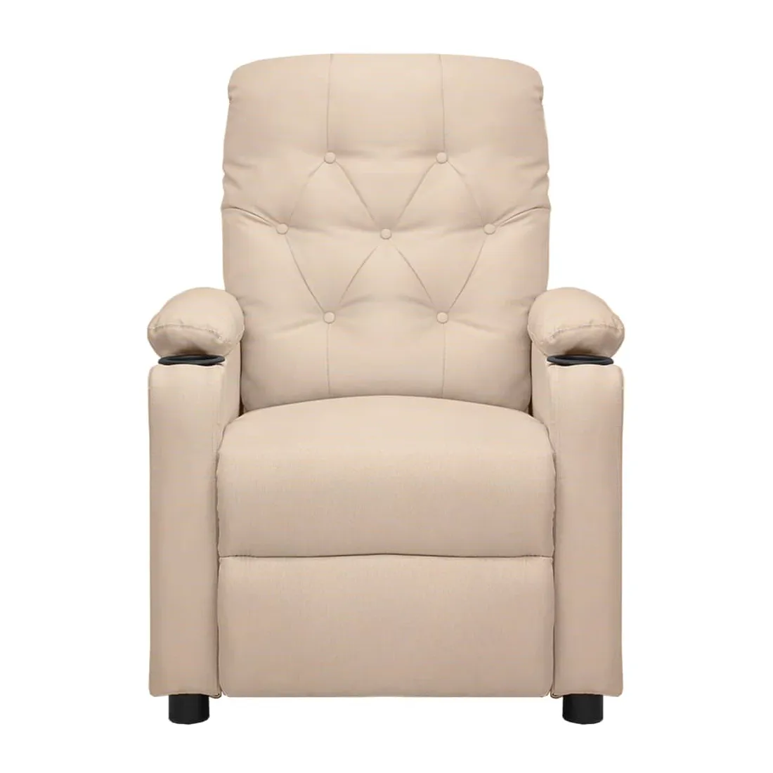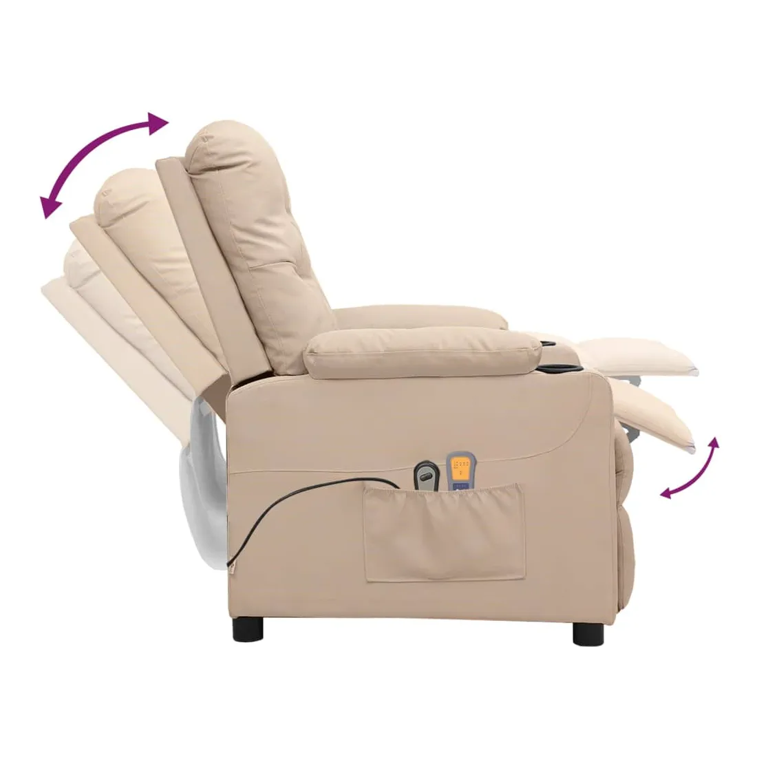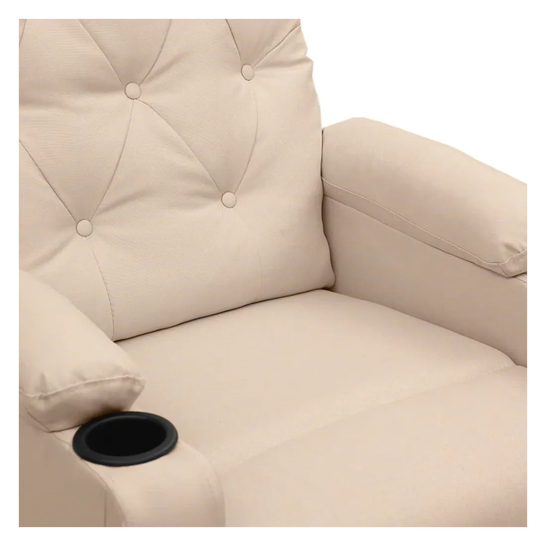 Asseyez-vous et détendez-vous dans ce fauteuil de massage électrique très confortable ! Fonction d'inclinaison électrique : le fauteuil inclinable est équipé d'un moteur électrique pour la fonction d'inclinaison. Il offre 3 positions d'inclinaison et vous pouvez facilement régler le dossier et le repose-pied à l'aide de la commande manuelle à 2 boutons incluse, en fonction de votre confort.Fonction de vibration : les 6 points de massage vous permettent de faire l'expérience d'un massage mieux ciblé. De plus, la télécommande incluse vous permet de choisir différents programmes de massage. La fonction de massage est alimentée par le connecteur USB, mais la source d'alimentation USB 5V certifiée n'est pas incluse.Expérience d'assise confortable : le siège, le dossier et les larges accoudoirs rembourrés épais recouverts de tissu procurent une sensation confortable et chaleureuse, vous permettant de vous sentir enveloppé lorsque vous êtes assis. Le tissu présente un aspect simple et épuré, et est respirant et durable.Cadre solide et stable : le cadre en bois et en métal offre une structure solide et une grande stabilité. Ce fauteuil inclinable est confortable et durable.