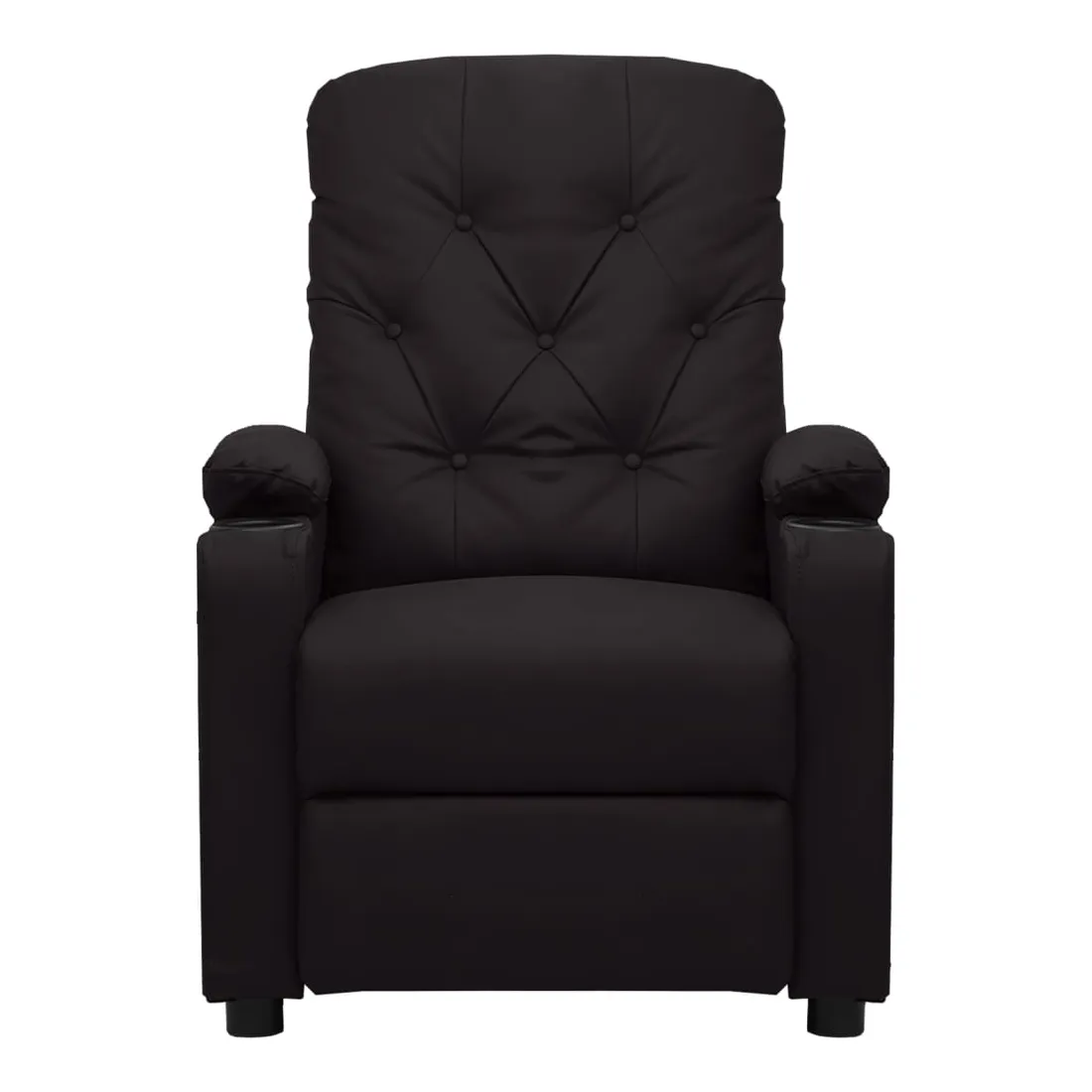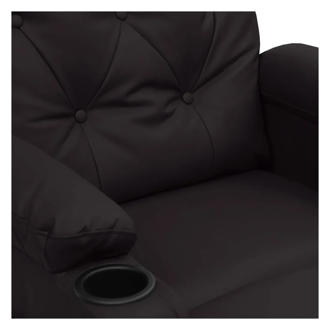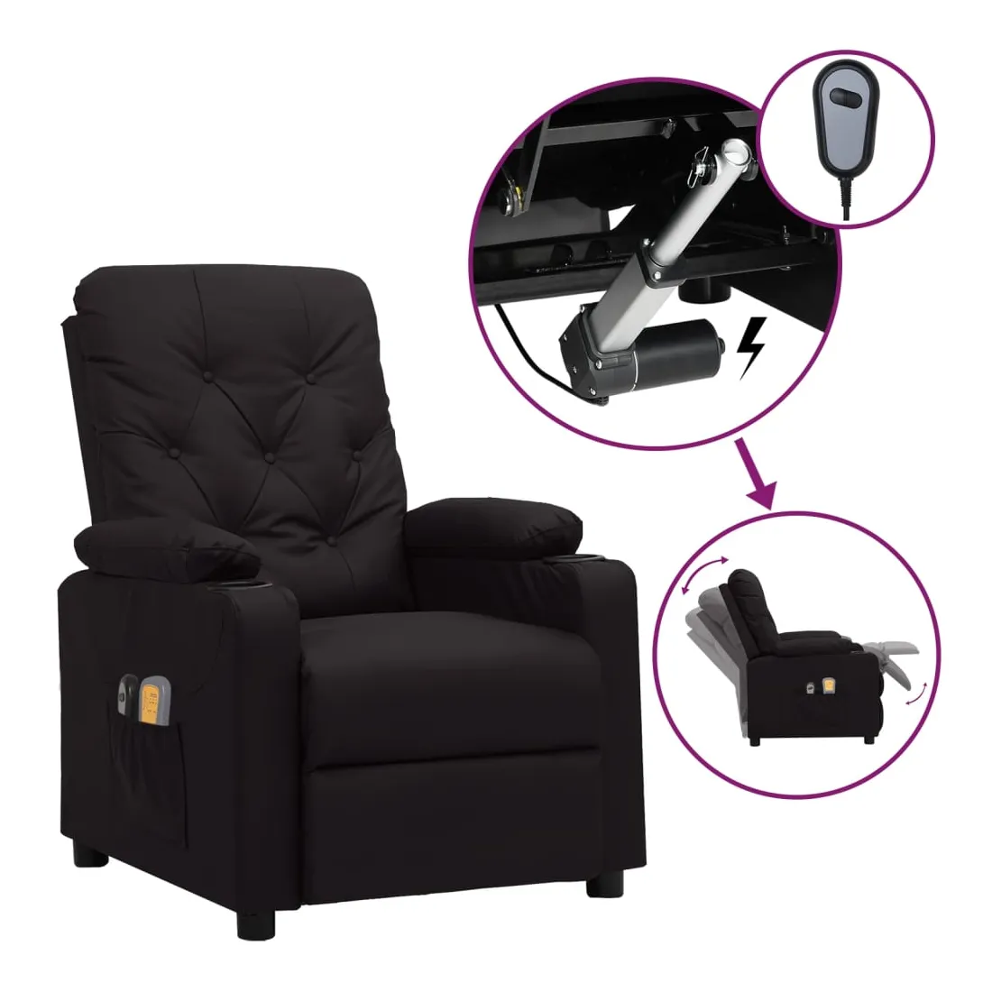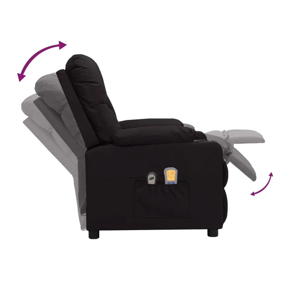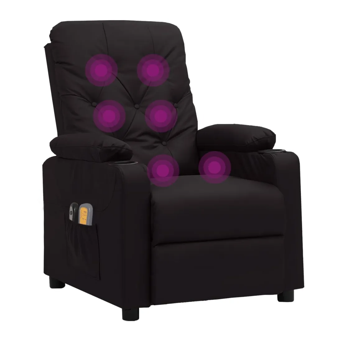 Asseyez-vous et détendez-vous dans ce fauteuil de massage électrique très confortable ! Fonction d'inclinaison électrique : le fauteuil inclinable est équipé d'un moteur électrique pour la fonction d'inclinaison. Il offre 3 positions d'inclinaison et vous pouvez facilement régler le dossier et le repose-pied à l'aide de la commande manuelle à 2 boutons incluse, en fonction de votre confort.Fonction de vibration : les 6 points de massage vous permettent de faire l'expérience d'un massage mieux ciblé. De plus, la télécommande incluse vous permet de choisir différents programmes de massage. La fonction de massage est alimentée par le connecteur USB, mais la source d'alimentation USB 5V certifiée n'est pas incluse.Expérience de siège confortable : le siège, le dossier et les larges accoudoirs rembourrés épais recouverts de similicuir procurent une sensation confortable et chaleureuse, vous faisant vous sentir enlacé lorsque vous êtes assis. Le simili cuir est un matériau très résistant. Il est résistant aux taches, ce qui le rend facile à nettoyer avec un chiffon humide. La surface lisse donne également un aspect luxueux et la beauté du cuir véritable.Cadre solide et stable : le cadre en bois et en métal offre une structure solide et une grande stabilité. Ce fauteuil inclinable est confortable et durable.