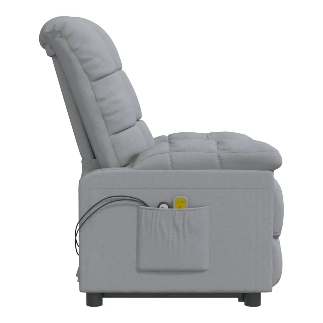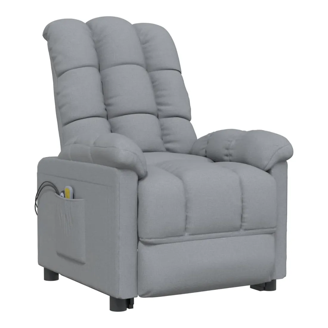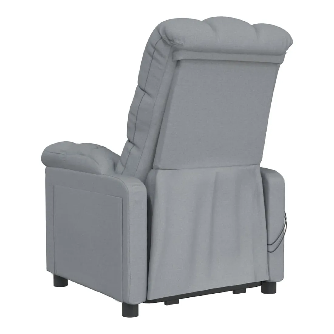 Asseyez-vous et détendez-vous dans ce fauteuil de massage très confortable ! Fonction d'inclinaison manuelle : le fauteuil inclinable est spécialement conçu avec 3 positions d'inclinaison afin que vous puissiez régler manuellement le dossier et le repose-pieds selon votre confort.Fonction de levage électrique : ce fauteuil inclinable pour personnes âgées est équipé d'un moteur électrique pour la fonction de levage. Grâce à la fonction qui pousse toute la chaise vers le haut, vous pouvez facilement vous tenir debout sans stresser votre dos et vos genoux grâce à la commande manuelle à 2 boutons.Fonction de vibration : les 6 points de massage vous permettent de faire l'expérience d'un massage mieux ciblé. De plus, la télécommande incluse vous permet de choisir différents programmes de massage. La fonction de massage est alimentée par le connecteur USB, mais la source d'alimentation USB 5V certifiée n'est pas incluse.Expérience d'assise confortable : le siège, le dossier et les larges accoudoirs rembourrés épais recouverts de tissu procurent une sensation confortable et chaleureuse, vous permettant de vous sentir enveloppé lorsque vous êtes assis. Le tissu présente un aspect simple et épuré, et est respirant et durable.Cadre solide et stable : le cadre en bois et en métal offre une structure solide et une grande stabilité. Ce fauteuil inclinable est confortable et durable.