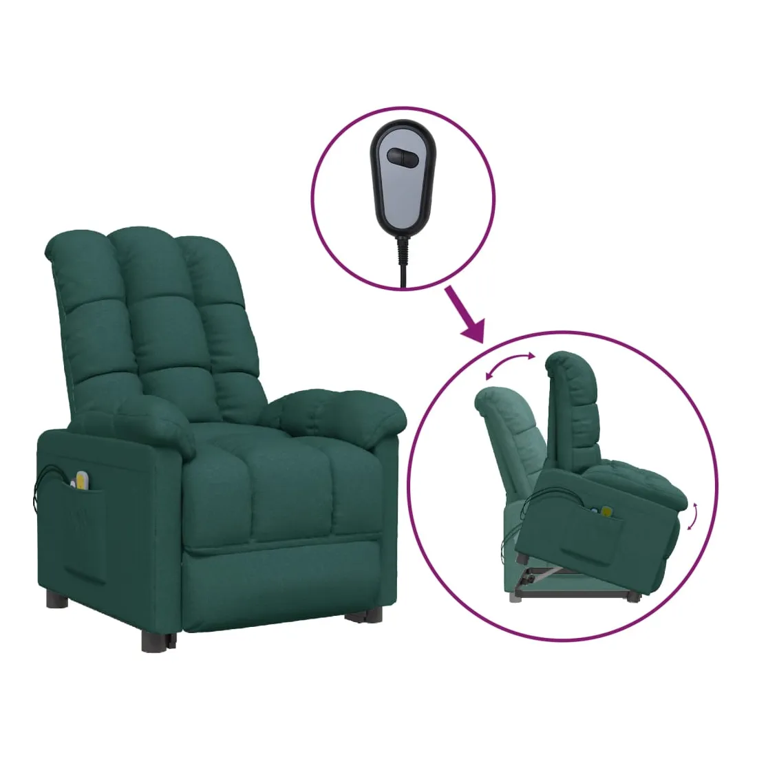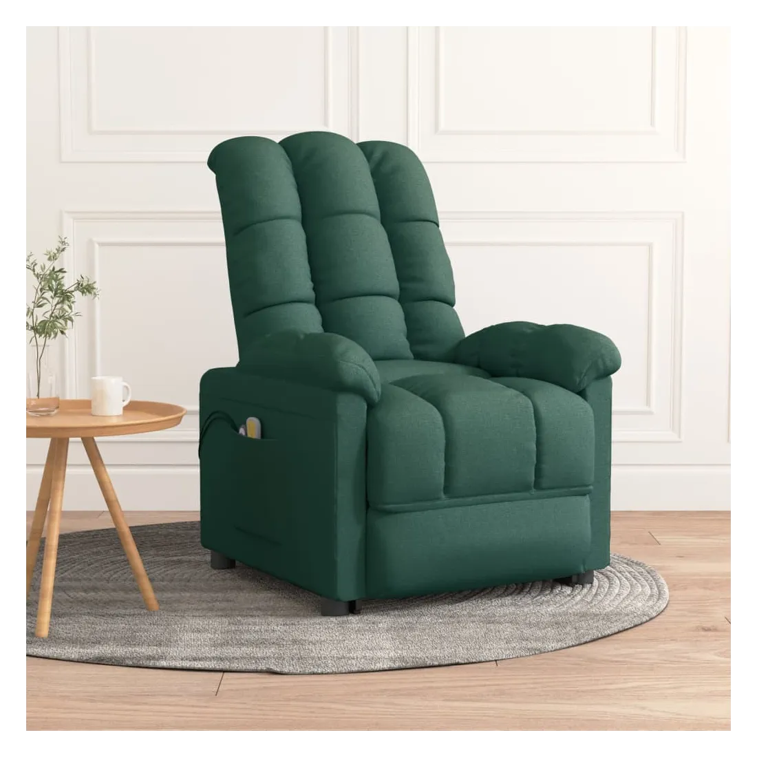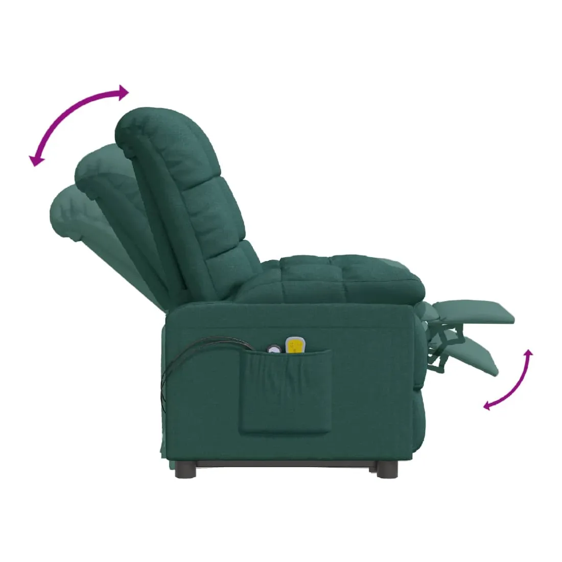 Asseyez-vous et détendez-vous dans ce fauteuil de massage très confortable ! Fonction d'inclinaison manuelle : le fauteuil inclinable est spécialement conçu avec 3 positions d'inclinaison afin que vous puissiez régler manuellement le dossier et le repose-pieds selon votre confort.Fonction de levage électrique : ce fauteuil inclinable pour personnes âgées est équipé d'un moteur électrique pour la fonction de levage. Grâce à la fonction qui pousse toute la chaise vers le haut, vous pouvez facilement vous tenir debout sans stresser votre dos et vos genoux grâce à la commande manuelle à 2 boutons.Fonction de vibration : les 6 points de massage vous permettent de faire l'expérience d'un massage mieux ciblé. De plus, la télécommande incluse vous permet de choisir différents programmes de massage. La fonction de massage est alimentée par le connecteur USB, mais la source d'alimentation USB 5V certifiée n'est pas incluse.Expérience d'assise confortable : le siège, le dossier et les larges accoudoirs rembourrés épais recouverts de tissu procurent une sensation confortable et chaleureuse, vous permettant de vous sentir enveloppé lorsque vous êtes assis. Le tissu présente un aspect simple et épuré, et est respirant et durable.Cadre solide et stable : le cadre en bois et en métal offre une structure solide et une grande stabilité. Ce fauteuil inclinable est confortable et durable.