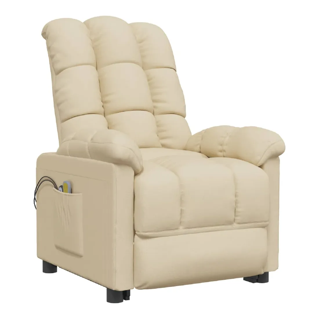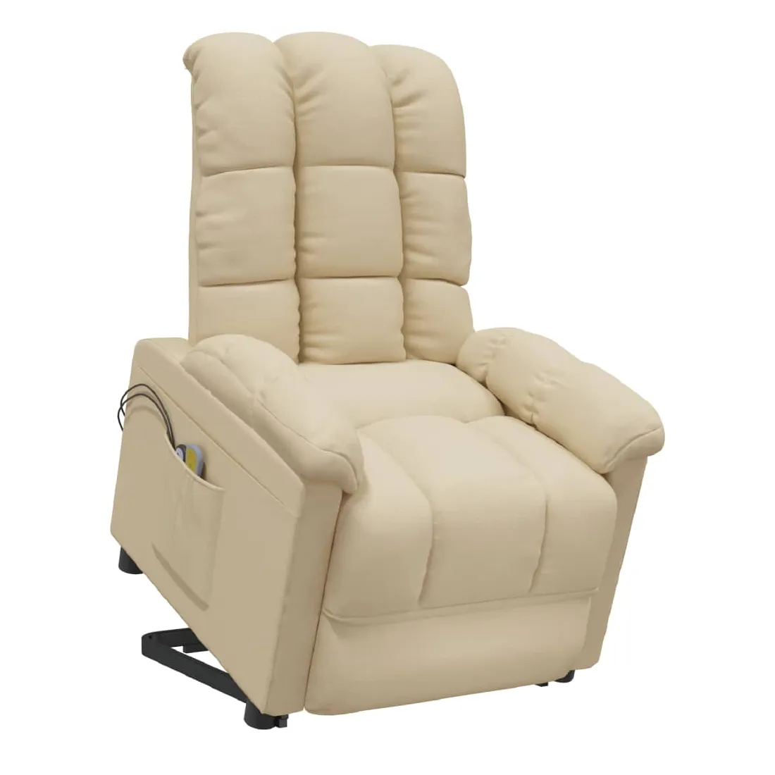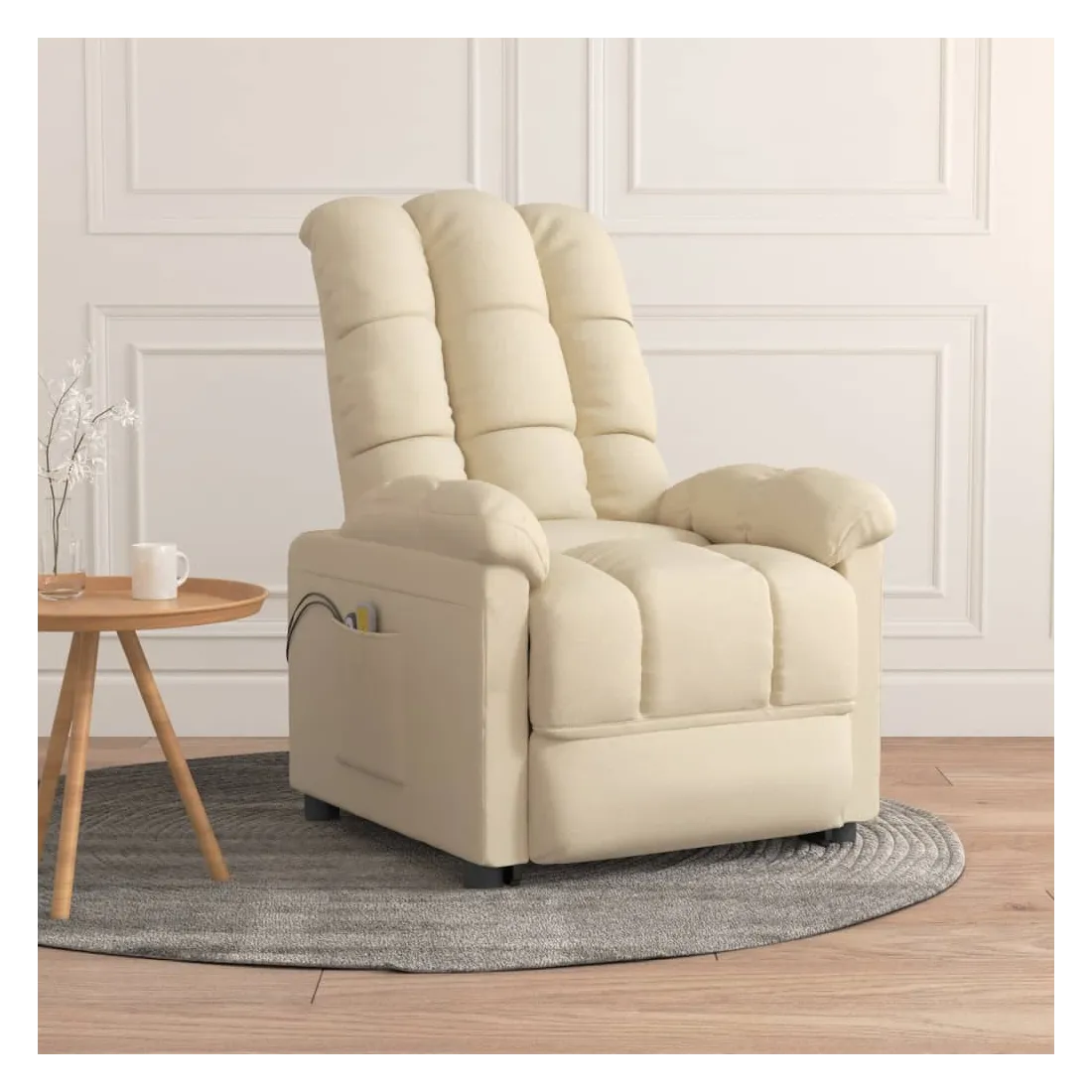 Asseyez-vous et détendez-vous dans ce fauteuil de massage très confortable ! Fonction d'inclinaison manuelle : le fauteuil inclinable est spécialement conçu avec 3 positions d'inclinaison afin que vous puissiez régler manuellement le dossier et le repose-pieds selon votre confort.Fonction de levage électrique : ce fauteuil inclinable pour personnes âgées est équipé d'un moteur électrique pour la fonction de levage. Grâce à la fonction qui pousse toute la chaise vers le haut, vous pouvez facilement vous tenir debout sans stresser votre dos et vos genoux grâce à la commande manuelle à 2 boutons.Fonction de vibration : les 6 points de massage vous permettent de faire l'expérience d'un massage mieux ciblé. De plus, la télécommande incluse vous permet de choisir différents programmes de massage. La fonction de massage est alimentée par le connecteur USB, mais la source d'alimentation USB 5V certifiée n'est pas incluse.Expérience d'assise confortable : le siège, le dossier et les larges accoudoirs rembourrés épais recouverts de tissu procurent une sensation confortable et chaleureuse, vous permettant de vous sentir enveloppé lorsque vous êtes assis. Le tissu présente un aspect simple et épuré, et est respirant et durable.Cadre solide et stable : le cadre en bois et en métal offre une structure solide et une grande stabilité. Ce fauteuil inclinable est confortable et durable.