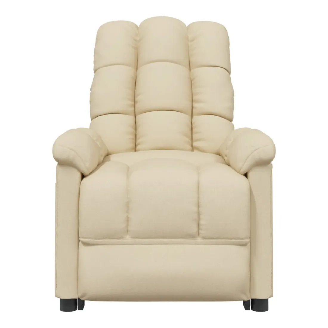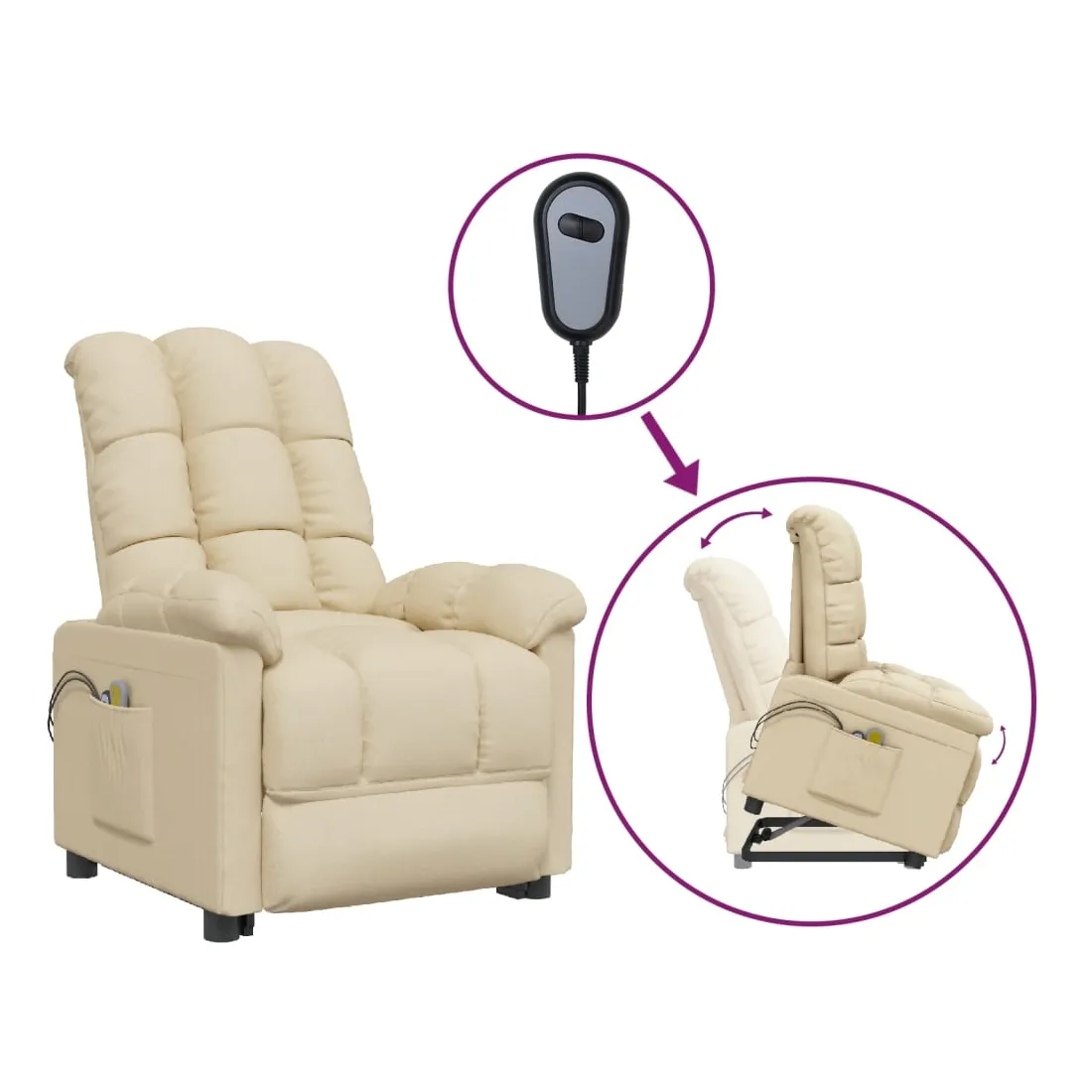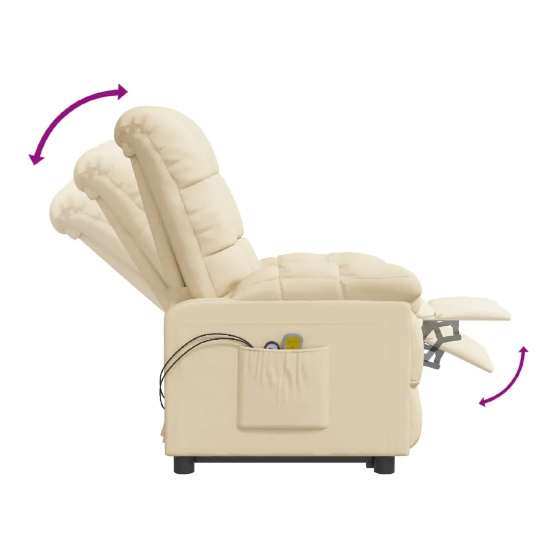 Asseyez-vous et détendez-vous dans ce fauteuil de massage très confortable ! Fonction d'inclinaison manuelle : le fauteuil inclinable est spécialement conçu avec 3 positions d'inclinaison afin que vous puissiez régler manuellement le dossier et le repose-pieds selon votre confort.Fonction de levage électrique : ce fauteuil inclinable pour personnes âgées est équipé d'un moteur électrique pour la fonction de levage. Grâce à la fonction qui pousse toute la chaise vers le haut, vous pouvez facilement vous tenir debout sans stresser votre dos et vos genoux grâce à la commande manuelle à 2 boutons.Fonction de vibration : les 6 points de massage vous permettent de faire l'expérience d'un massage mieux ciblé. De plus, la télécommande incluse vous permet de choisir différents programmes de massage. La fonction de massage est alimentée par le connecteur USB, mais la source d'alimentation USB 5V certifiée n'est pas incluse.Expérience d'assise confortable : le siège, le dossier et les larges accoudoirs rembourrés épais recouverts de tissu procurent une sensation confortable et chaleureuse, vous permettant de vous sentir enveloppé lorsque vous êtes assis. Le tissu présente un aspect simple et épuré, et est respirant et durable.Cadre solide et stable : le cadre en bois et en métal offre une structure solide et une grande stabilité. Ce fauteuil inclinable est confortable et durable.