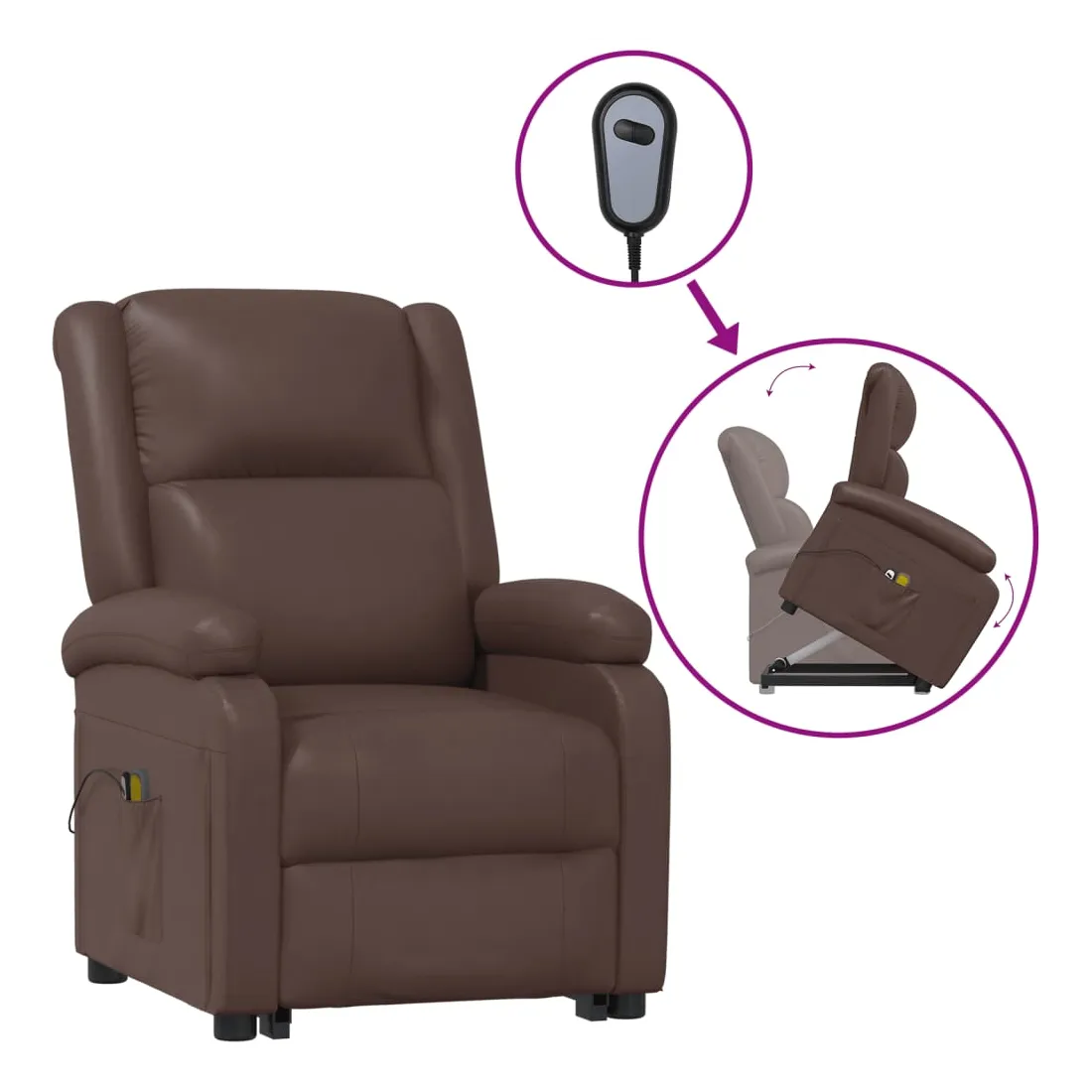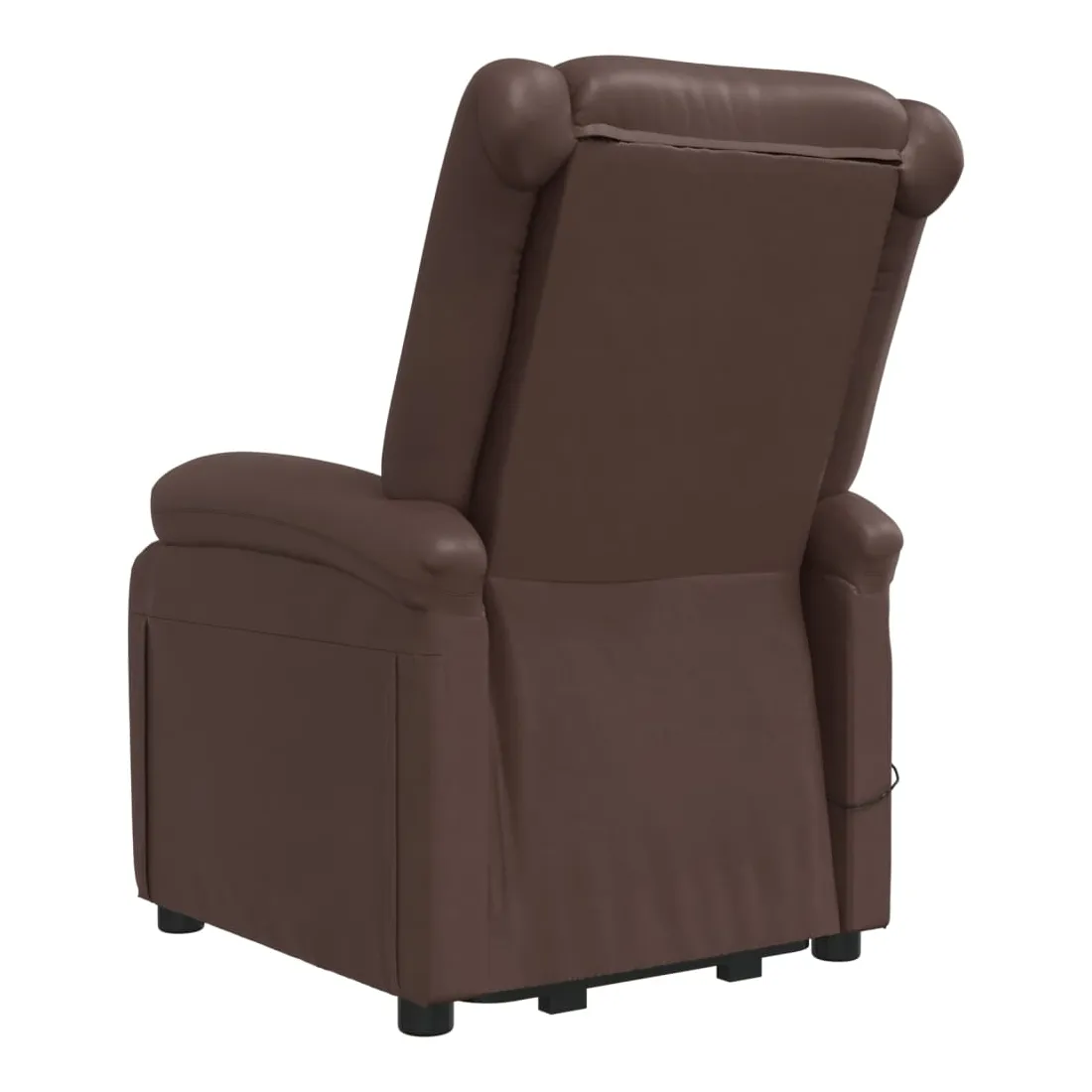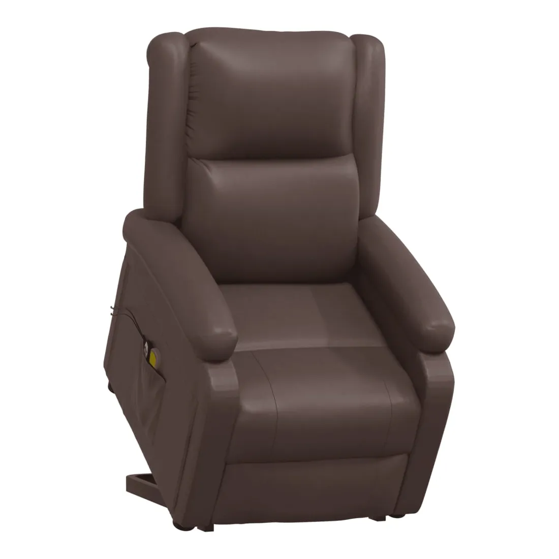 Asseyez-vous et détendez-vous dans ce fauteuil de massage très confortable ! Fonction d'inclinaison manuelle : le fauteuil inclinable est spécialement conçu avec 3 positions d'inclinaison afin que vous puissiez régler manuellement le dossier et le repose-pieds selon votre confort.Fonction de levage électrique : ce fauteuil inclinable pour personnes âgées est équipé d'un moteur électrique pour la fonction de levage. Grâce à la fonction qui pousse toute la chaise vers le haut, vous pouvez facilement vous tenir debout sans stresser votre dos et vos genoux grâce à la commande manuelle à 2 boutons.Fonction de vibration : les 6 points de massage vous permettent de faire l'expérience d'un massage mieux ciblé. De plus, la télécommande incluse vous permet de choisir différents programmes de massage. La fonction de massage est alimentée par le connecteur USB, mais la source d'alimentation USB 5V certifiée n'est pas incluse.Expérience de siège confortable : le siège, le dossier et les larges accoudoirs rembourrés épais recouverts de similicuir procurent une sensation confortable et chaleureuse, vous faisant vous sentir enlacé lorsque vous êtes assis. Le simili cuir est un matériau très résistant. Il est résistant aux taches, ce qui le rend facile à nettoyer avec un chiffon humide. La surface lisse donne également un aspect luxueux et la beauté du cuir véritable.Cadre solide et stable : le cadre en bois et en métal offre une structure solide et une grande stabilité. Ce fauteuil inclinable est confortable et durable.