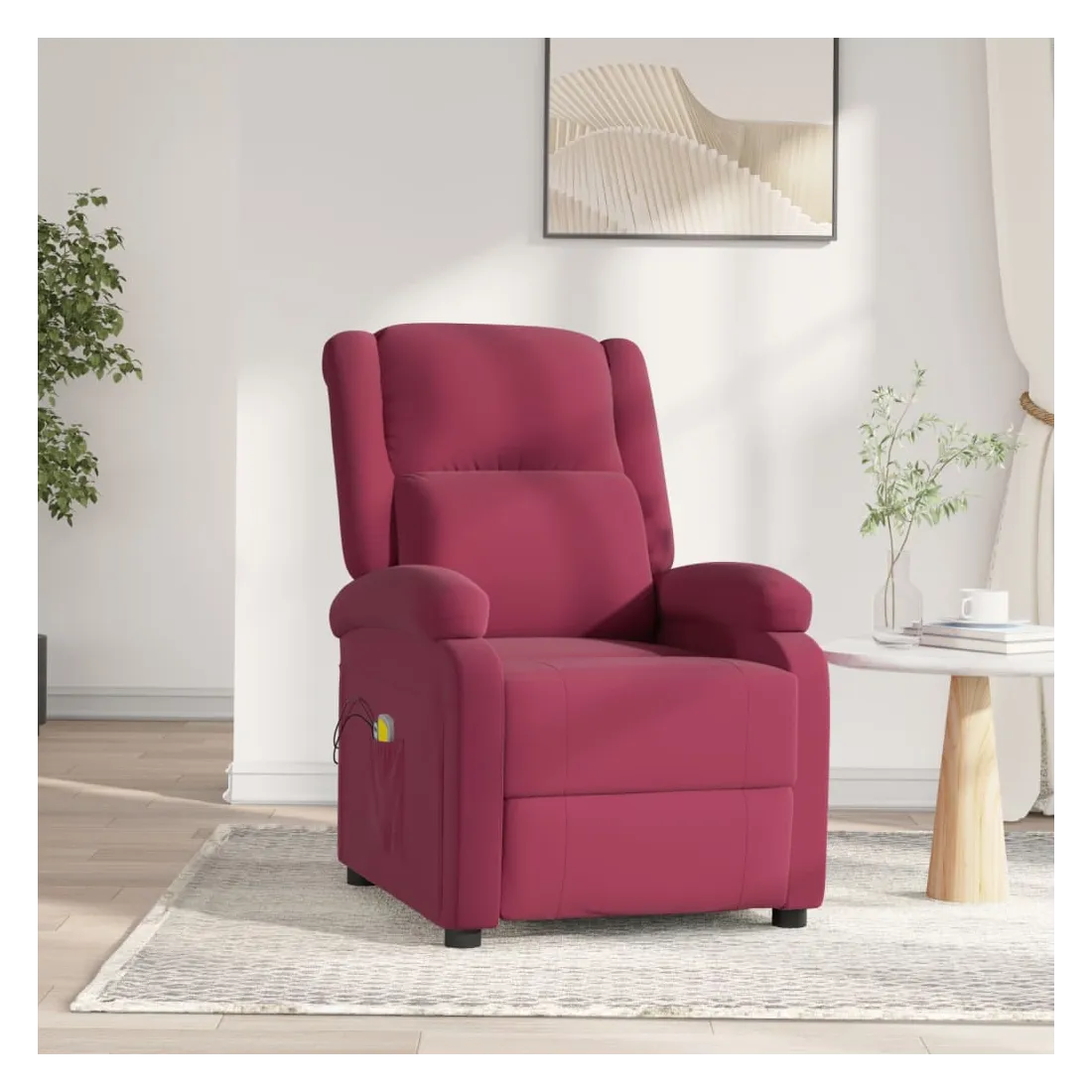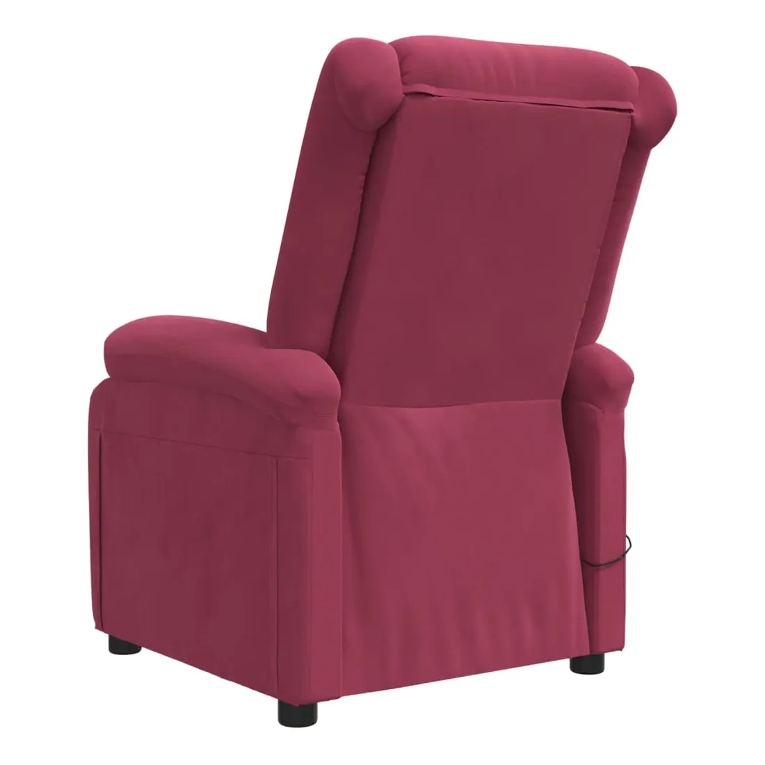 Asseyez-vous et détendez-vous dans ce fauteuil de massage électrique très confortable ! Fonction d'inclinaison électrique : le fauteuil inclinable est équipé d'un moteur électrique pour la fonction d'inclinaison. Il offre 3 positions d'inclinaison et vous pouvez facilement régler le dossier et le repose-pied à l'aide de la commande manuelle à 2 boutons incluse, en fonction de votre confort.Fonction de vibration : les 6 points de massage vous permettent de faire l'expérience d'un massage mieux ciblé. De plus, la télécommande incluse vous permet de choisir différents programmes de massage. La fonction de massage est alimentée par le connecteur USB, mais la source d'alimentation USB 5V certifiée n'est pas incluse.Expérience d'assise confortable : le siège, le dossier et les larges accoudoirs rembourrés épais recouverts de velours procurent une sensation confortable et chaleureuse, vous faisant vous sentir enlacé lorsque vous êtes assis. Le velours est un tissu doux et confortable qui est agréable sur la peau.Cadre solide et stable : le cadre en bois et en métal offre une structure solide et une grande stabilité. Ce fauteuil inclinable est confortable et durable.