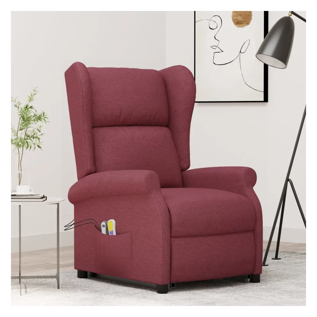 Asseyez-vous et laissez-vous aller dans ce fauteuil de massage debout très confortable ! Fonction d'inclinaison manuelle : Ce fauteuil inclinable est spécialement conçu avec 3 positions d'inclinaison pour que vous puissiez régler manuellement le dossier et le repose-pieds selon votre confort.Fonction de levage électrique : Ce fauteuil inclinable pour personnes âgées est équipé d'un moteur électrique pour la fonction de levage. Grâce à la fonction qui pousse l'ensemble du fauteuil vers le haut, vous pouvez facilement vous lever sans stresser votre dos et vos genoux grâce à la commande manuelle à 2 boutons.Fonction de vibration : Les 6 points de massage vous permettent de bénéficier d'un massage mieux ciblé. De plus, la commande manuelle incluse vous permet de choisir différents programmes de massage. La fonction de massage est alimentée par le connecteur USB, mais la source d'alimentation USB 5 V certifiée n'est pas incluse.Expérience d'assise confortable : L'assise, le dossier et les larges accoudoirs recouverts de tissu au rembourrage épais offrent une sensation de confort et de chaleur, vous donnant l'impression d'être bien assis. Le tissu, à l'aspect simple et épuré, est respirant et résistant.Cadre solide et stable : Le cadre en bois et en métal assure une structure solide et stable. Ce fauteuil inclinable est confortable et résistant.