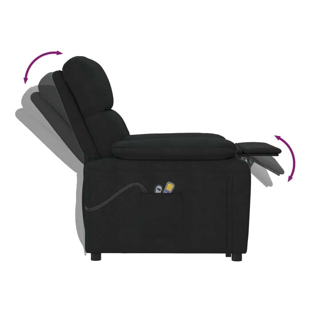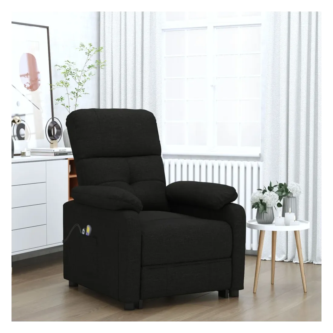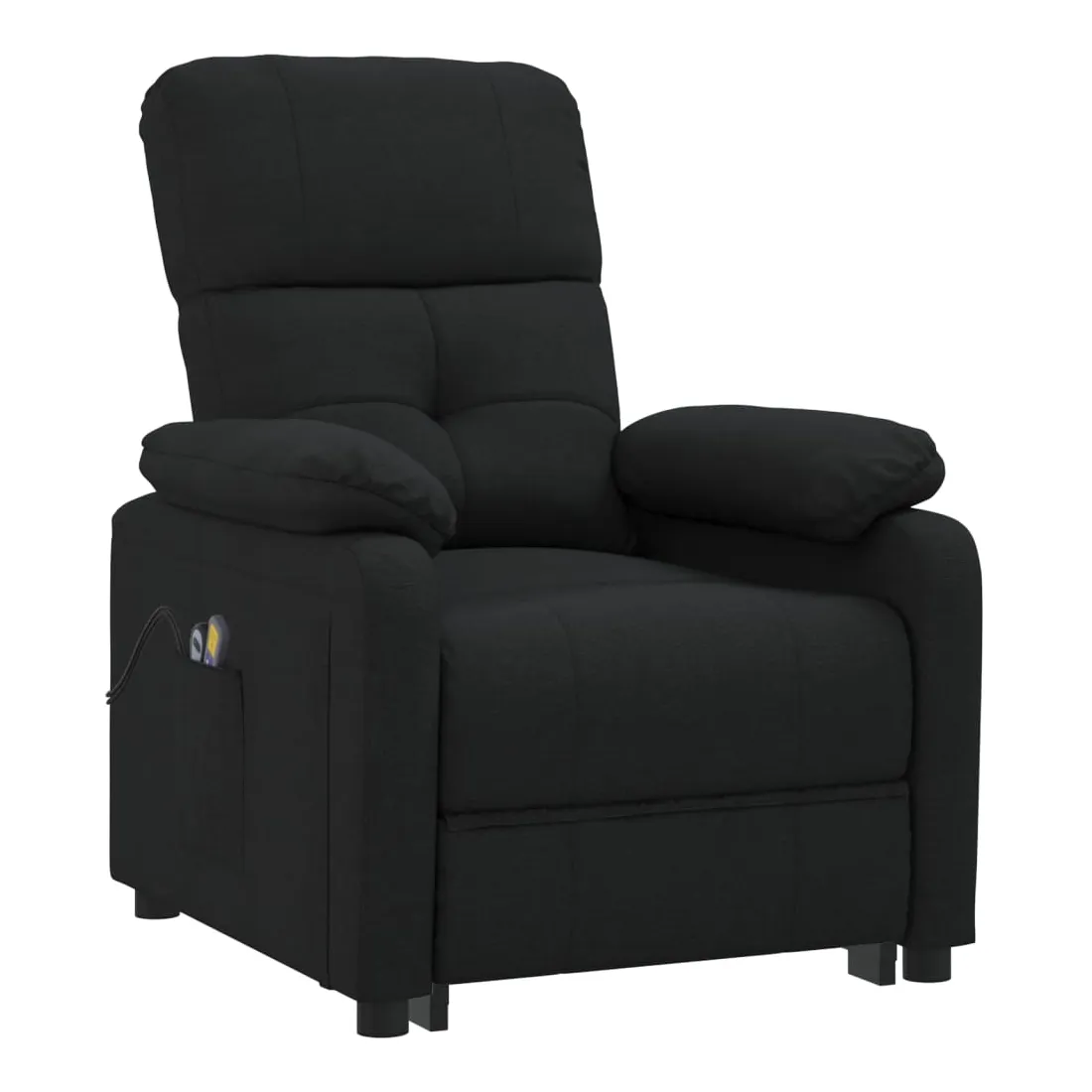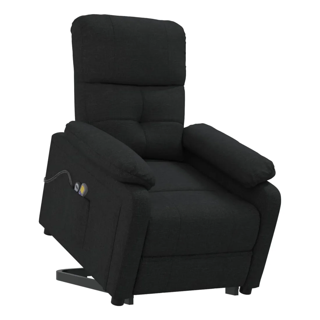 Asseyez-vous et détendez-vous dans ce fauteuil de massage très confortable ! Fonction d'inclinaison manuelle : le fauteuil inclinable est spécialement conçu avec 3 positions d'inclinaison afin que vous puissiez régler manuellement le dossier et le repose-pieds selon votre confort.Fonction de levage électrique : ce fauteuil inclinable pour personnes âgées est équipé d'un moteur électrique pour la fonction de levage. Grâce à la fonction qui pousse toute la chaise vers le haut, vous pouvez facilement vous tenir debout sans stresser votre dos et vos genoux grâce à la commande manuelle à 2 boutons.Fonction de vibration : les 6 points de massage vous permettent de faire l'expérience d'un massage mieux ciblé. De plus, la télécommande incluse vous permet de choisir différents programmes de massage. La fonction de massage est alimentée par le connecteur USB, mais la source d'alimentation USB 5V certifiée n'est pas incluse.Expérience d'assise confortable : le siège, le dossier et les larges accoudoirs rembourrés épais recouverts de tissu procurent une sensation confortable et chaleureuse, vous permettant de vous sentir enveloppé lorsque vous êtes assis. Le tissu présente un aspect simple et épuré, et est respirant et durable.Cadre solide et stable : le cadre en bois et en métal offre une structure solide et une grande stabilité. Ce fauteuil inclinable est confortable et durable.