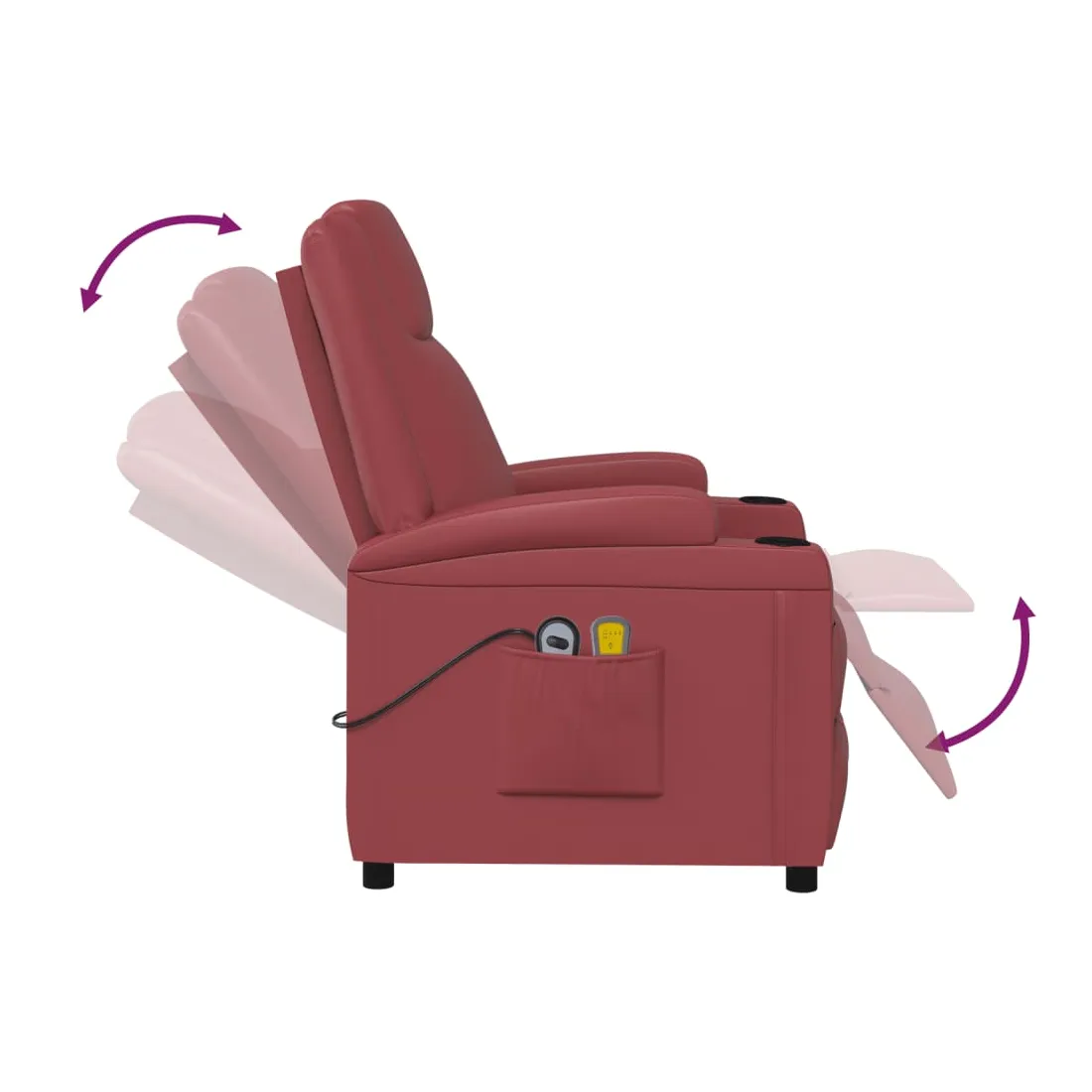 Asseyez-vous et détendez-vous dans ce fauteuil de massage très confortable ! Fonction d'inclinaison manuelle : le fauteuil inclinable est spécialement conçu avec 3 positions d'inclinaison afin que vous puissiez régler manuellement le dossier et le repose-pieds selon votre confort.Fonction de levage électrique : ce fauteuil inclinable pour personnes âgées est équipé d'un moteur électrique pour la fonction de levage. Grâce à la fonction qui pousse toute la chaise vers le haut, vous pouvez facilement vous tenir debout sans stresser votre dos et vos genoux grâce à la commande manuelle à 2 boutons.Fonction de vibration : les 6 points de massage vous permettent de faire l'expérience d'un massage mieux ciblé. De plus, la télécommande incluse vous permet de choisir différents programmes de massage. La fonction de massage est alimentée par le connecteur USB, mais la source d'alimentation USB 5V certifiée n'est pas incluse.Expérience de siège confortable : le siège, le dossier et les larges accoudoirs rembourrés épais recouverts de similicuir procurent une sensation confortable et chaleureuse, vous faisant vous sentir enlacé lorsque vous êtes assis. Le simili cuir est un matériau très résistant. Il est résistant aux taches, ce qui le rend facile à nettoyer avec un chiffon humide. La surface lisse donne également un aspect luxueux et la beauté du cuir véritable.Cadre solide et stable : le cadre en bois et en métal offre une structure solide et une grande stabilité. Ce fauteuil inclinable est confortable et durable.