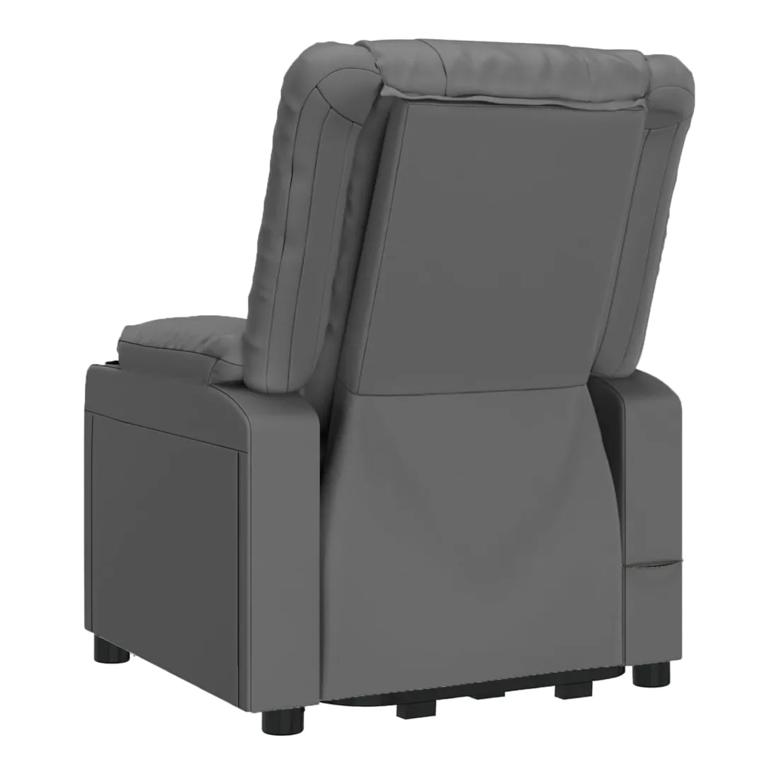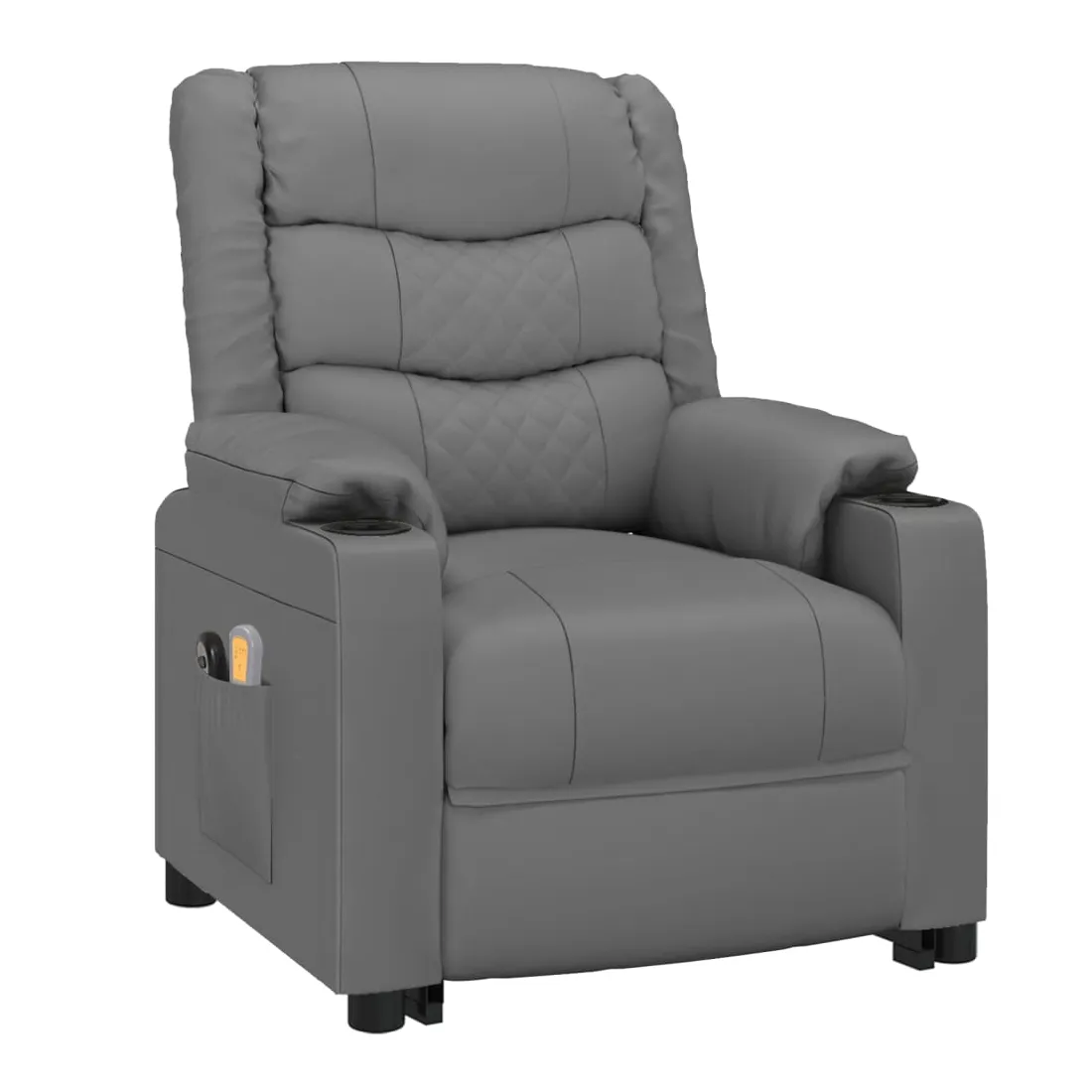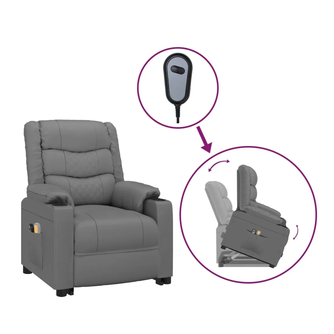 Asseyez-vous et détendez-vous dans ce fauteuil de massage très confortable ! Fonction d'inclinaison manuelle : le fauteuil inclinable est spécialement conçu avec 3 positions d'inclinaison afin que vous puissiez régler manuellement le dossier et le repose-pieds selon votre confort.Fonction de levage électrique : ce fauteuil inclinable pour personnes âgées est équipé d'un moteur électrique pour la fonction de levage. Grâce à la fonction qui pousse toute la chaise vers le haut, vous pouvez facilement vous tenir debout sans stresser votre dos et vos genoux grâce à la commande manuelle à 2 boutons.Fonction de vibration : les 6 points de massage vous permettent de faire l'expérience d'un massage mieux ciblé. De plus, la télécommande incluse vous permet de choisir différents programmes de massage. La fonction de massage est alimentée par le connecteur USB, mais la source d'alimentation USB 5V certifiée n'est pas incluse.Expérience de siège confortable : le siège, le dossier et les larges accoudoirs rembourrés épais recouverts de similicuir procurent une sensation confortable et chaleureuse, vous faisant vous sentir enlacé lorsque vous êtes assis. Le simili cuir est un matériau très résistant. Il est résistant aux taches, ce qui le rend facile à nettoyer avec un chiffon humide. La surface lisse donne également un aspect luxueux et la beauté du cuir véritable.Cadre solide et stable : le cadre en bois et en métal offre une structure solide et une grande stabilité. Ce fauteuil inclinable est confortable et durable.
