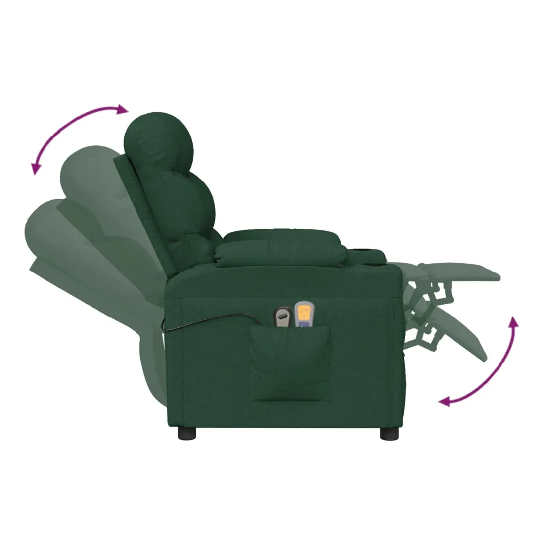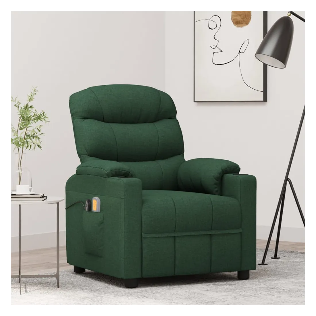 Asseyez-vous et détendez-vous dans ce fauteuil de massage électrique très confortable ! Fonction d'inclinaison électrique : le fauteuil inclinable est équipé d'un moteur électrique pour la fonction d'inclinaison. Il offre 3 positions d'inclinaison et vous pouvez facilement régler le dossier et le repose-pied à l'aide de la commande manuelle à 2 boutons incluse, en fonction de votre confort.Fonction de vibration : les 6 points de massage vous permettent de faire l'expérience d'un massage mieux ciblé. De plus, la télécommande incluse vous permet de choisir différents programmes de massage. La fonction de massage est alimentée par le connecteur USB, mais la source d'alimentation USB 5V certifiée n'est pas incluse.Expérience d'assise confortable : le siège, le dossier et les larges accoudoirs rembourrés épais recouverts de tissu procurent une sensation confortable et chaleureuse, vous permettant de vous sentir enveloppé lorsque vous êtes assis. Le tissu présente un aspect simple et épuré, et est respirant et durable.Cadre solide et stable : le cadre en bois et en métal offre une structure solide et une grande stabilité. Ce fauteuil inclinable est confortable et durable.