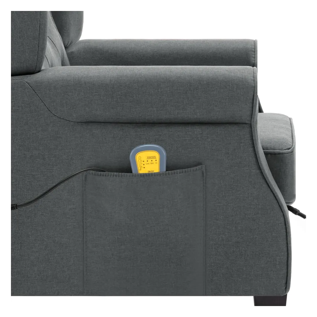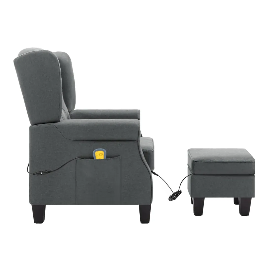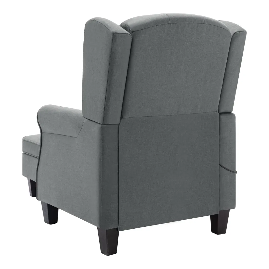 Le fauteuil de massage avec un repose-pied ajoute un aspect moderne à votre décoration intérieure et est parfait pour votre espace de vie. Le fauteuil de massage électrique est fait de tissu et rempli de mousse, ce qui le rend résistant et doux pour vous y asseoir. Les pieds en bois offrent une stabilité supplémentaire à ce fauteuil. Ce fauteuil de massage dispose d'un haut dossier à ailettes et d’un rembourrage profond, offrant un grand confort. Le fauteuil de massage dispose de 4 points de massage pour le dossier et le siège, et le repose-pied dispose de 2 points de massage pour les jambes. La télécommande incluse vous permet de choisir différents programmes de massage. Le fauteuil de massage TV est également équipé de poche latérale pour la télécommande. Le repose-pied est rempli de coton PP, et son dessus est amovible. Remarque : ce produit est doté d'un connecteur USB, mais la source d'alimentation certifiée de USB 5V n'est pas incluse.