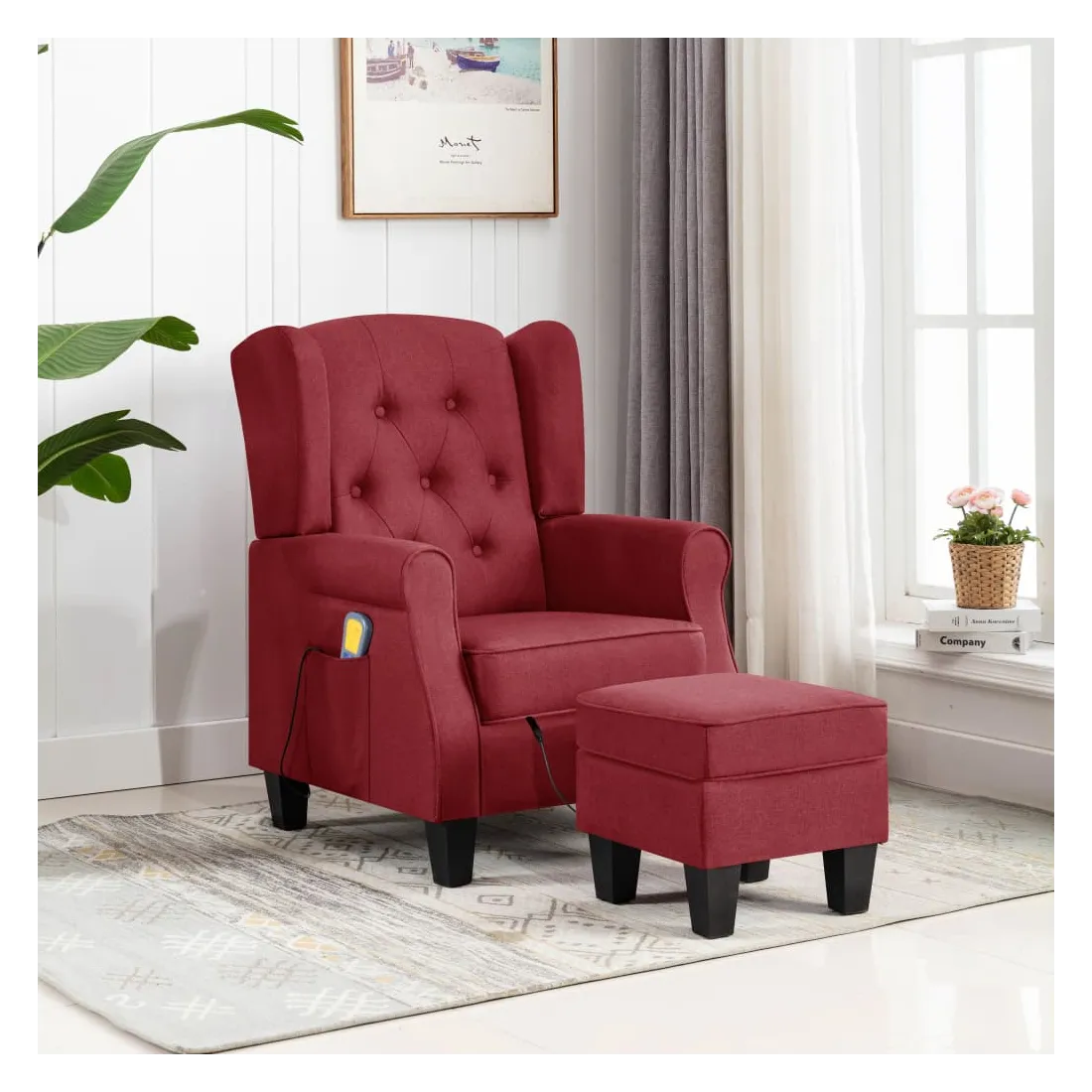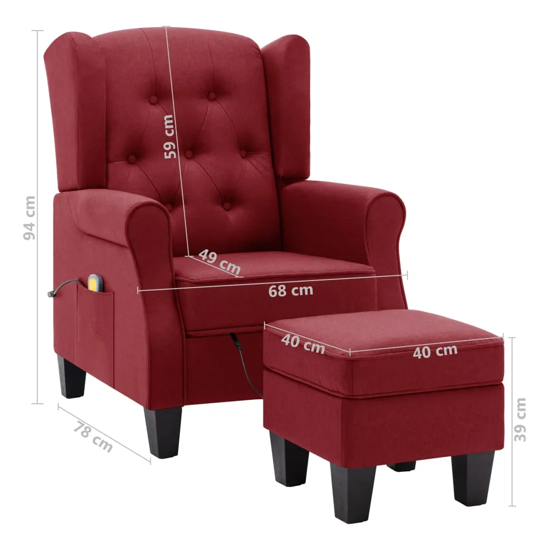 Fauteuil de massage avec repose-pied Rouge bordeaux Tissu