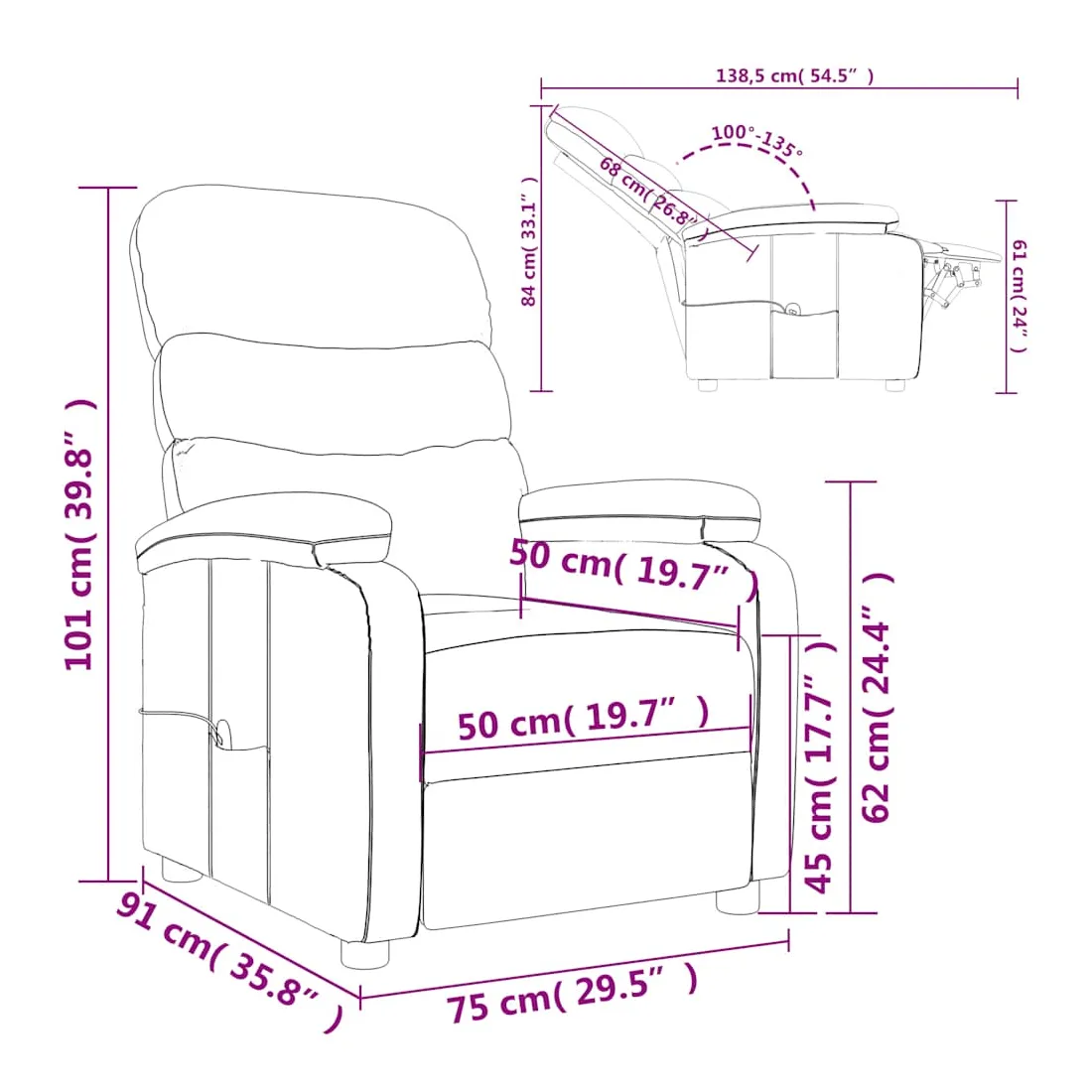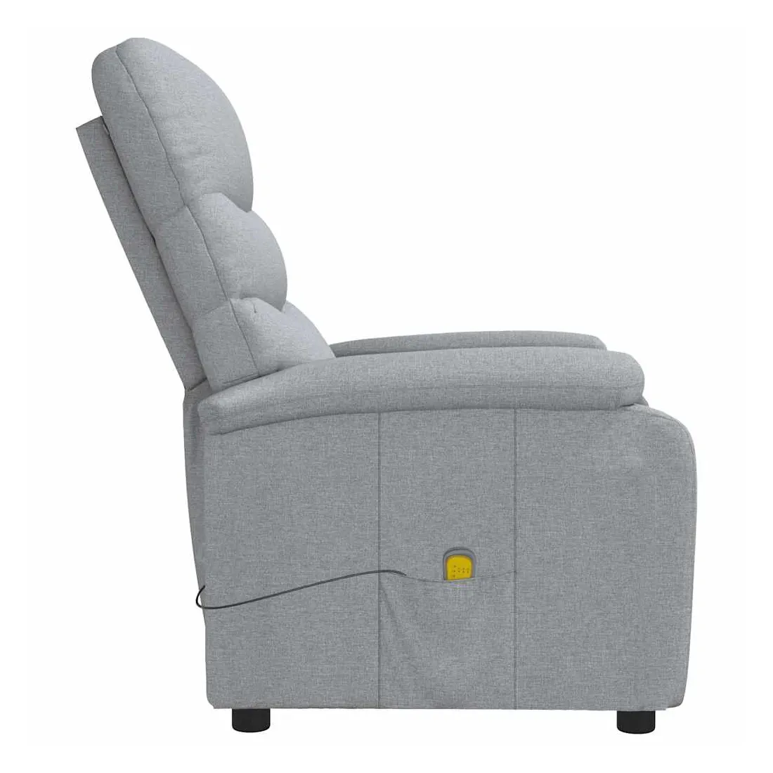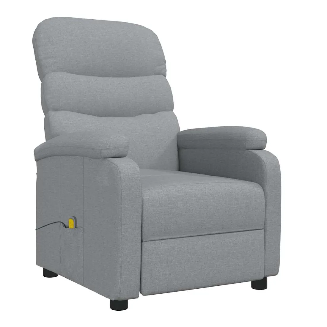 Asseyez-vous et détendez-vous dans ce fauteuil de massage très confortable ! Fonction d'inclinaison manuelle : le fauteuil inclinable est spécialement conçu avec 3 positions d'inclinaison afin que vous puissiez régler manuellement le dossier et le repose-pieds selon votre confort.Fonction de vibration : les 6 points de massage vous permettent de faire l'expérience d'un massage mieux ciblé. De plus, la télécommande incluse vous permet de choisir différents programmes de massage. La fonction de massage est alimentée par le connecteur USB, mais la source d'alimentation USB 5V certifiée n'est pas incluse.Expérience d'assise confortable : le siège, le dossier et les larges accoudoirs rembourrés épais recouverts de tissu procurent une sensation confortable et chaleureuse, vous permettant de vous sentir enveloppé lorsque vous êtes assis. Le tissu présente un aspect simple et épuré, et est respirant et durable.Cadre solide et stable : le cadre en bois et en métal offre une structure solide et une grande stabilité. Ce fauteuil inclinable est confortable et durable.