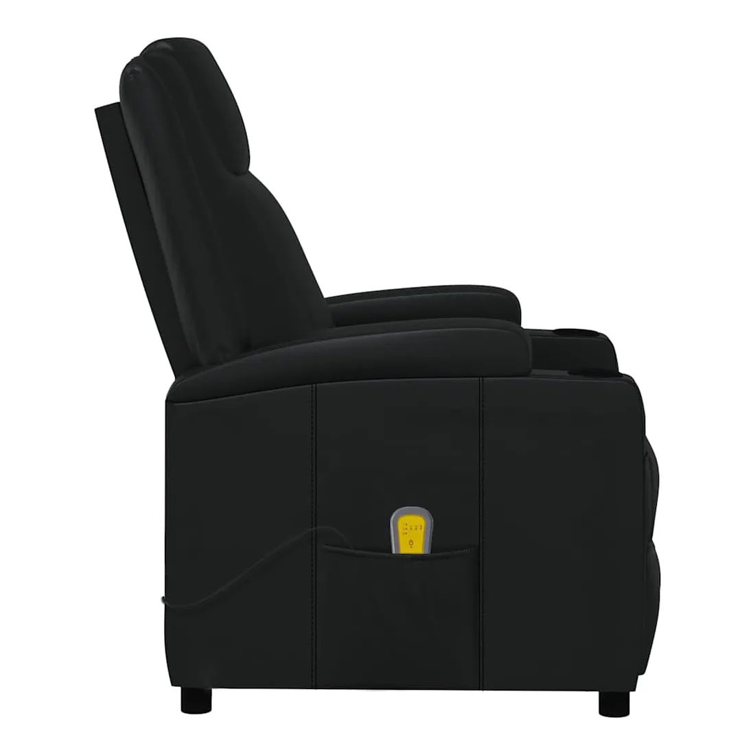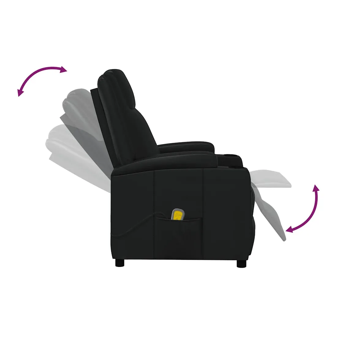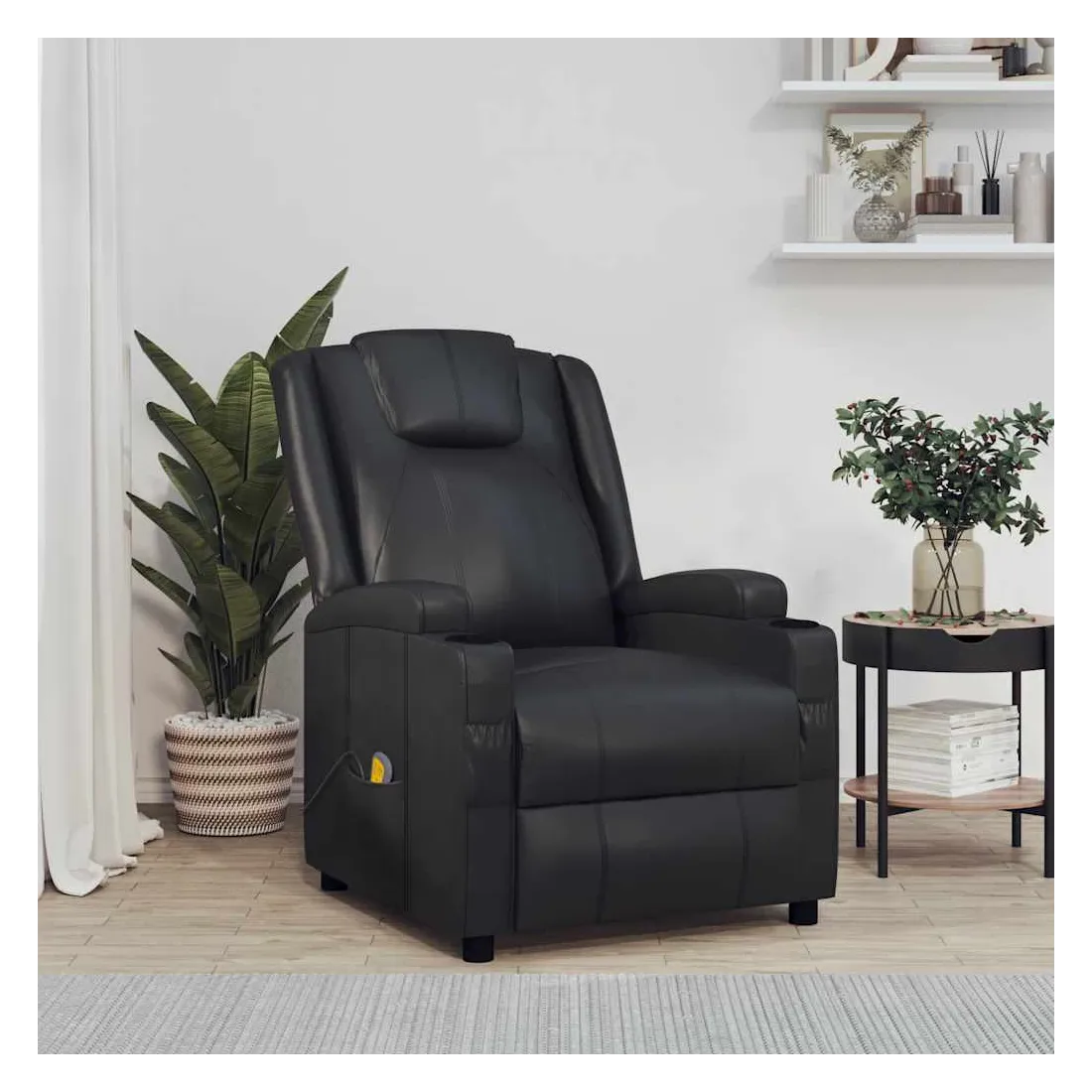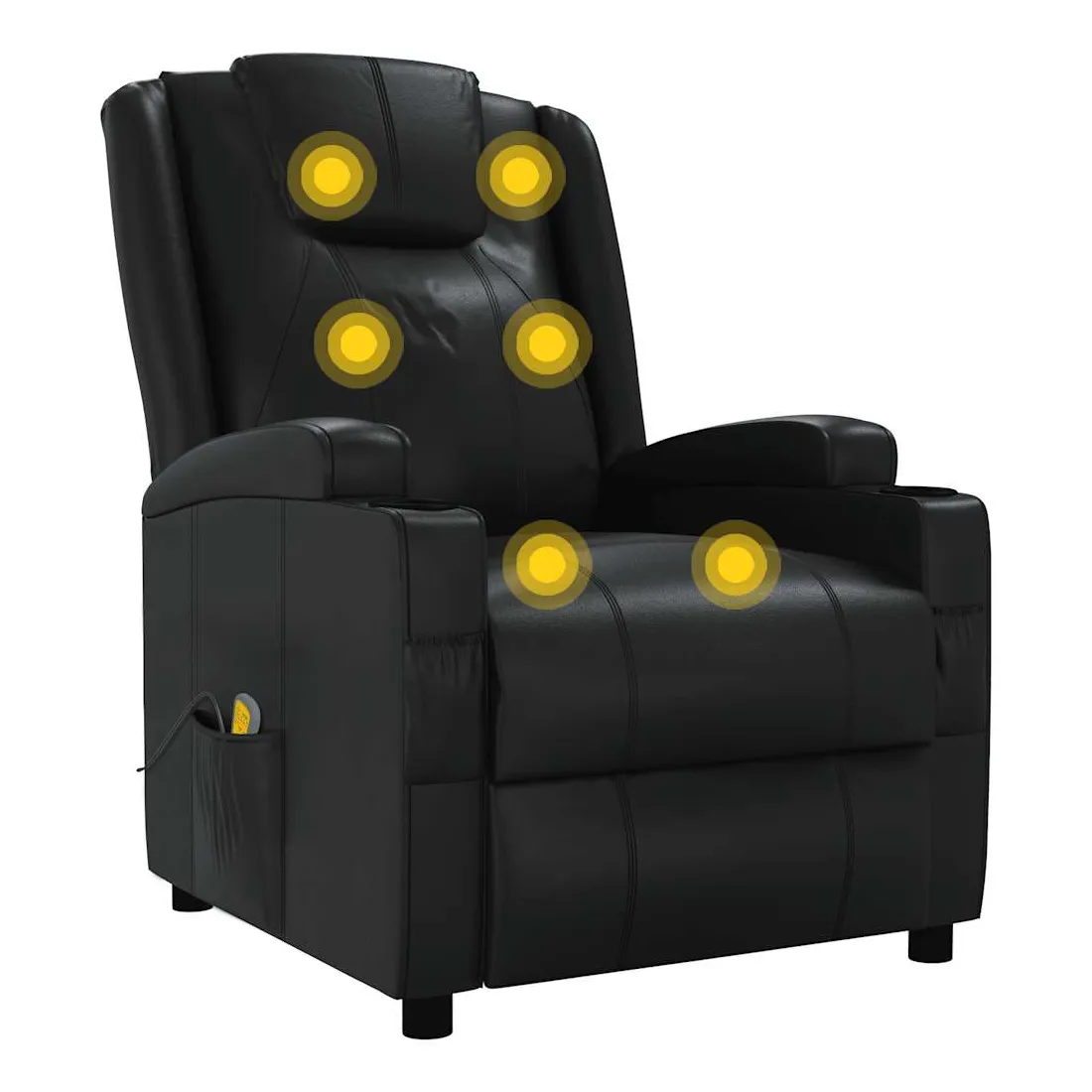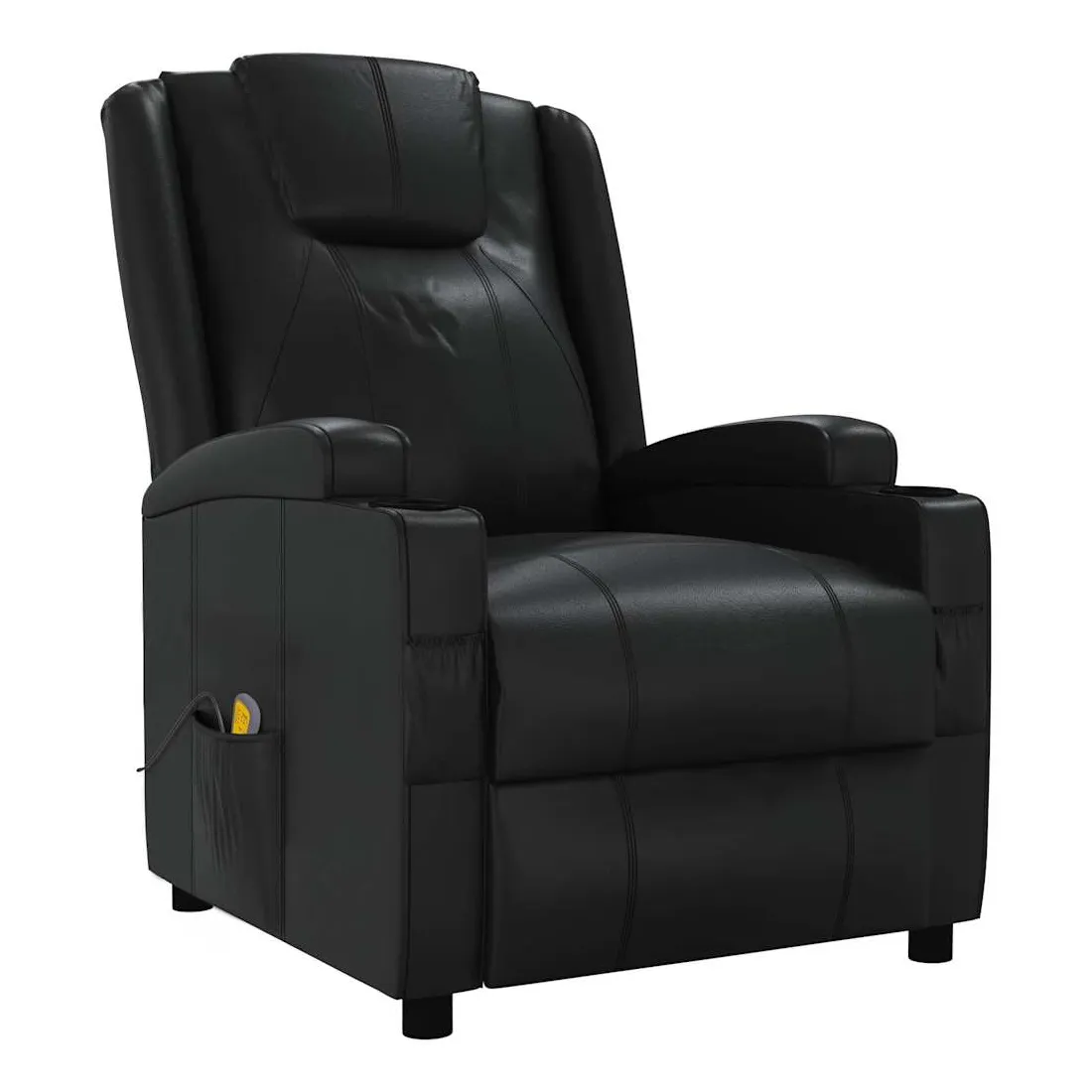 Asseyez-vous et détendez-vous dans ce fauteuil de massage très confortable ! Fonction d'inclinaison manuelle : le fauteuil inclinable est spécialement conçu avec 3 positions d'inclinaison afin que vous puissiez régler manuellement le dossier et le repose-pieds selon votre confort.Fonction de vibration : les 6 points de massage vous permettent de faire l'expérience d'un massage mieux ciblé. De plus, la télécommande incluse vous permet de choisir différents programmes de massage. La fonction de massage est alimentée par le connecteur USB, mais la source d'alimentation USB 5V certifiée n'est pas incluse.Expérience de siège confortable : le siège, le dossier et les larges accoudoirs rembourrés épais recouverts de similicuir procurent une sensation confortable et chaleureuse, vous faisant vous sentir enlacé lorsque vous êtes assis. Le simili cuir est un matériau très résistant. Il est résistant aux taches, ce qui le rend facile à nettoyer avec un chiffon humide. La surface lisse donne également un aspect luxueux et la beauté du cuir véritable.Cadre solide et stable : le cadre en bois et en métal offre une structure solide et une grande stabilité. Ce fauteuil inclinable est confortable et durable.