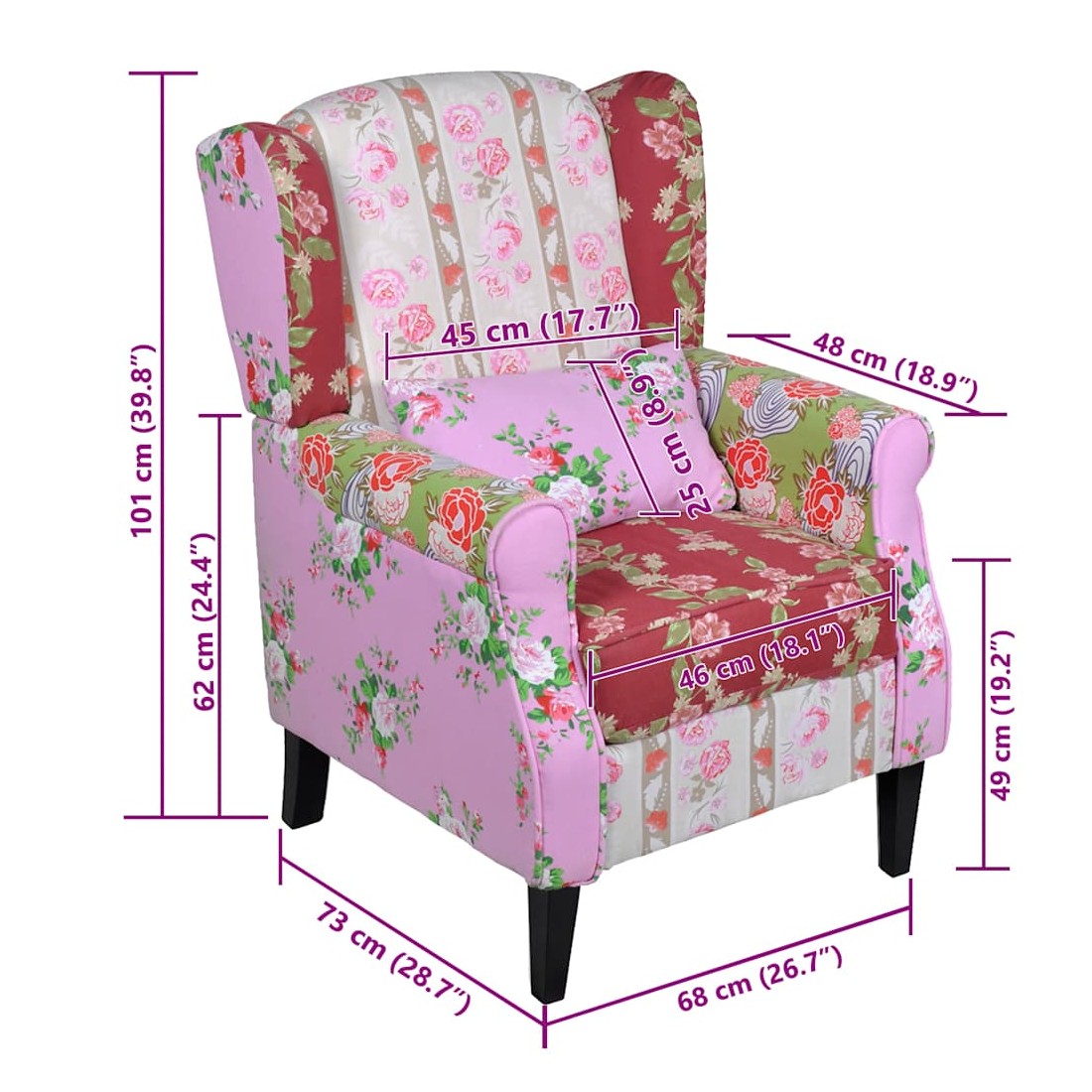 Ce fauteuil avec design de patchwork de haute qualité est un meuble élégant grâce à son design floral exclusif. Le dossier du siège est ergonomique, ce qui le rend confortable pour vous asseoir pendant des heures sans avoir mal au dos. Le fauteuil est très durable et ajoutera une touche d'élégance à votre décor.