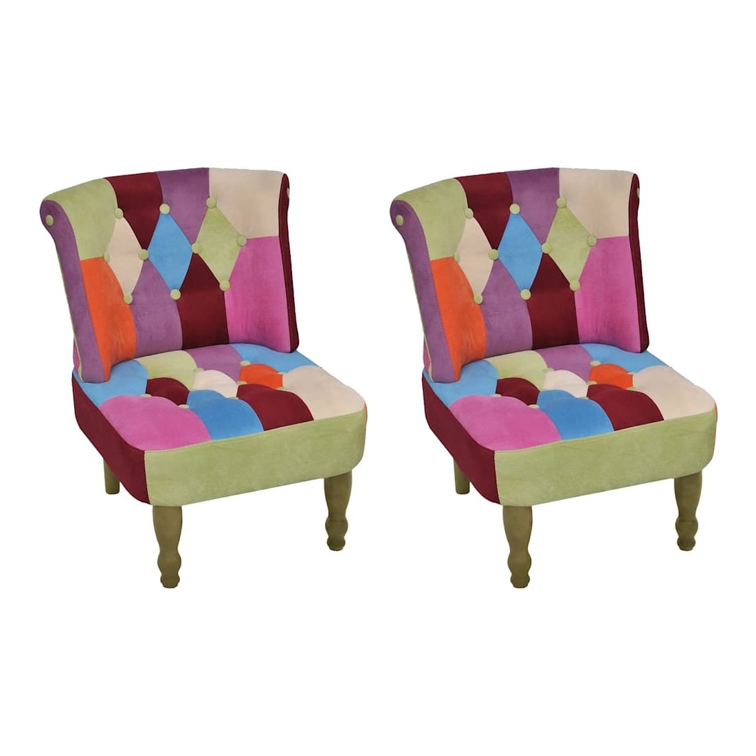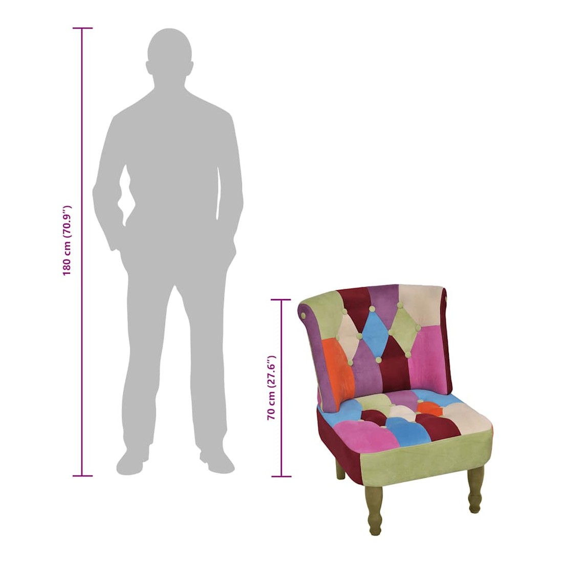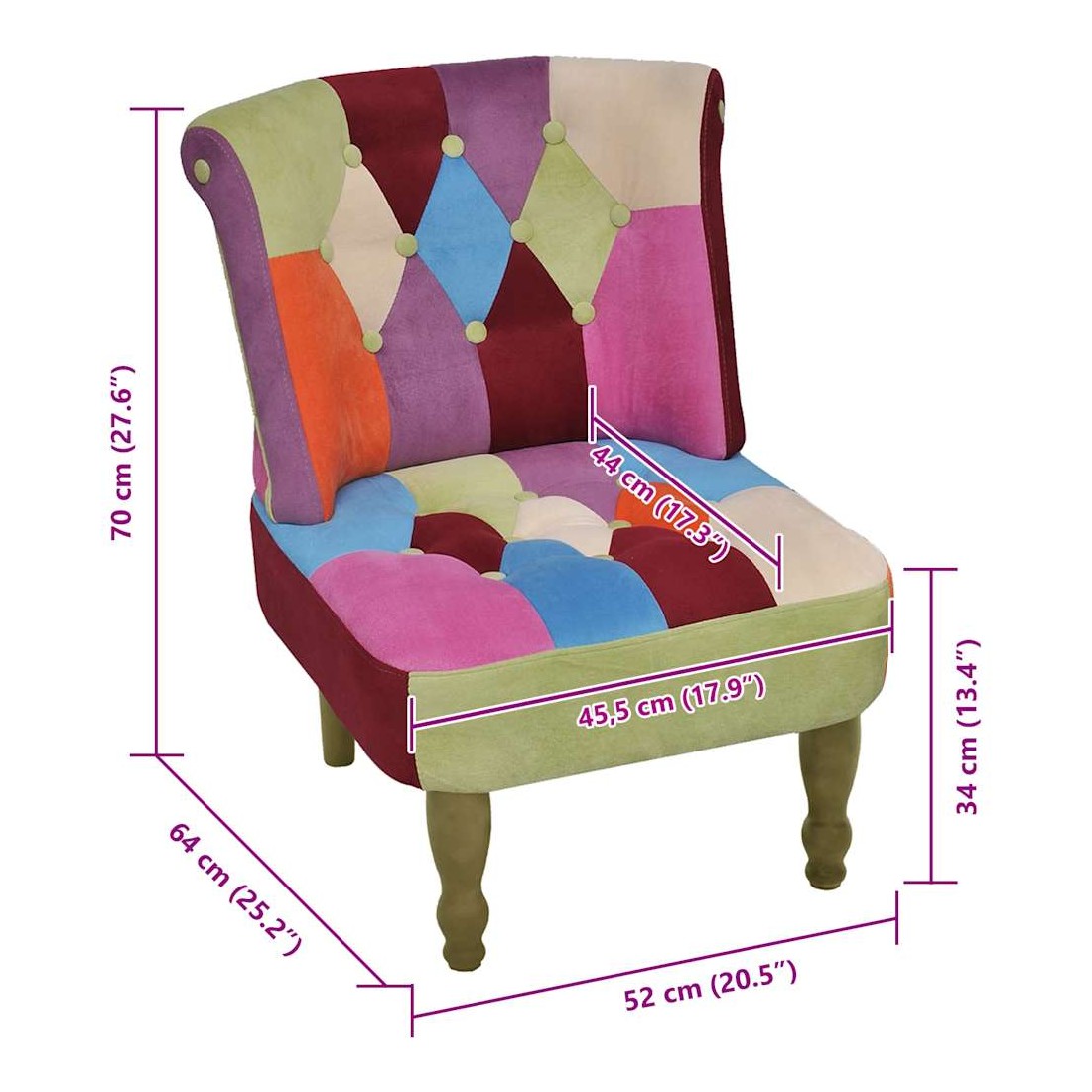 Le fauteuil en style français avec patchwork dans différentes couleurs gaies est un excellent article de décor et un mobilier pour tout décor intérieur comme la chambre à coucher, le salon et le couloir. La combinaison de différentes couleurs convient à de nombreux styles de décoration et donnera à votre espace une atmosphère lumineuse.Fait de cadre en bois et recouvert de tissu qui est rembourré de mousse confortable, le fauteuil est conçu pour des années d'utilisation. Il y a deux pièces de fauteuils en style français en un seul ensemble. Avant d'acheter ce fauteuil, veuillez vérifier ses dimensions.
