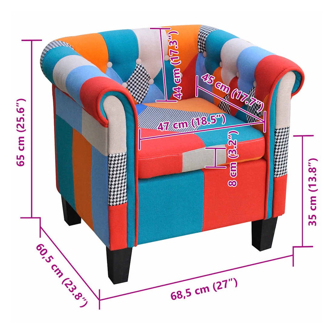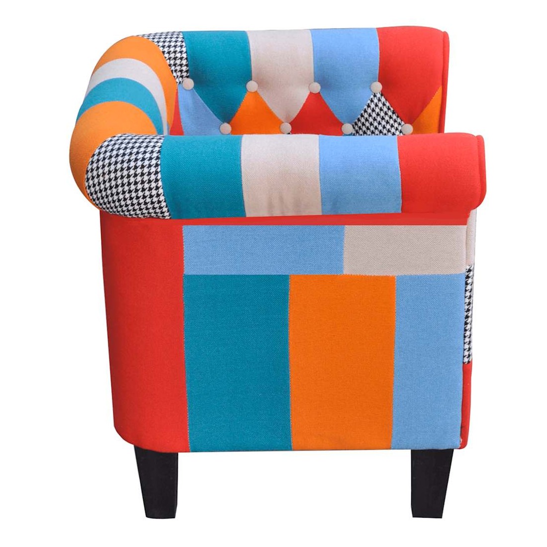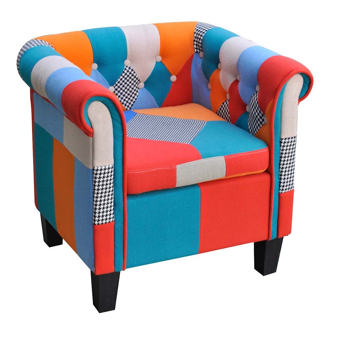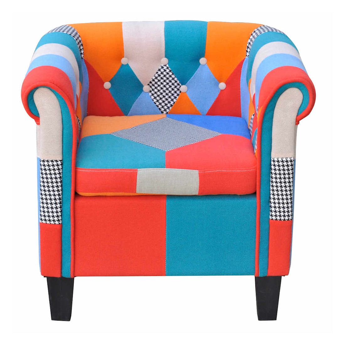 Ce fauteuil est joli et confortable pour vous reposer et vous détendre. Avec le design de patchwork, il est également une bonne décoration pour l’espace intérieur comme la chambre à coucher, le salon, le couloir et la salle de séjour, qui permettra de créer une atmosphère légère. L'armature en contre-plaqué et bourrée de mousse confortable, ce fauteuil cumule à la fois l’excellente durabilité et le confort. La conception ergonomique rend ce fauteuil confortable pendant des heures sans ressentir des douleurs de dos.